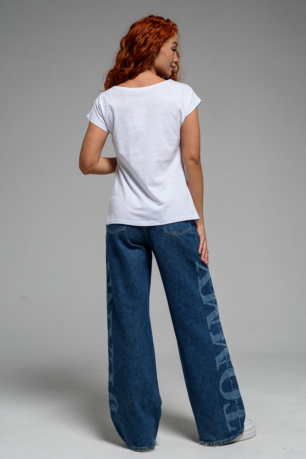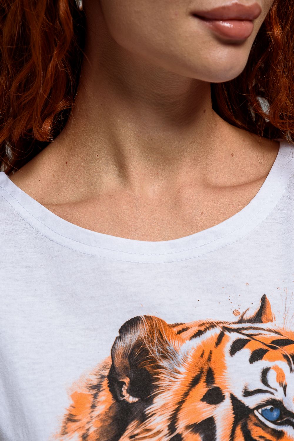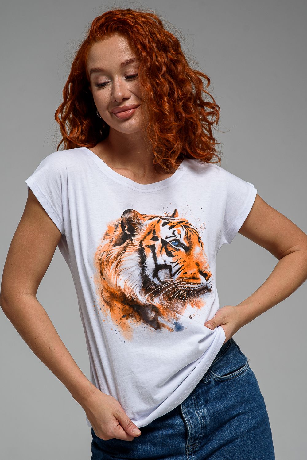 Футболка полуприлегающего силуэта, средней длины, с округлой горловиной. Рукав цельнокроеный, короткий.