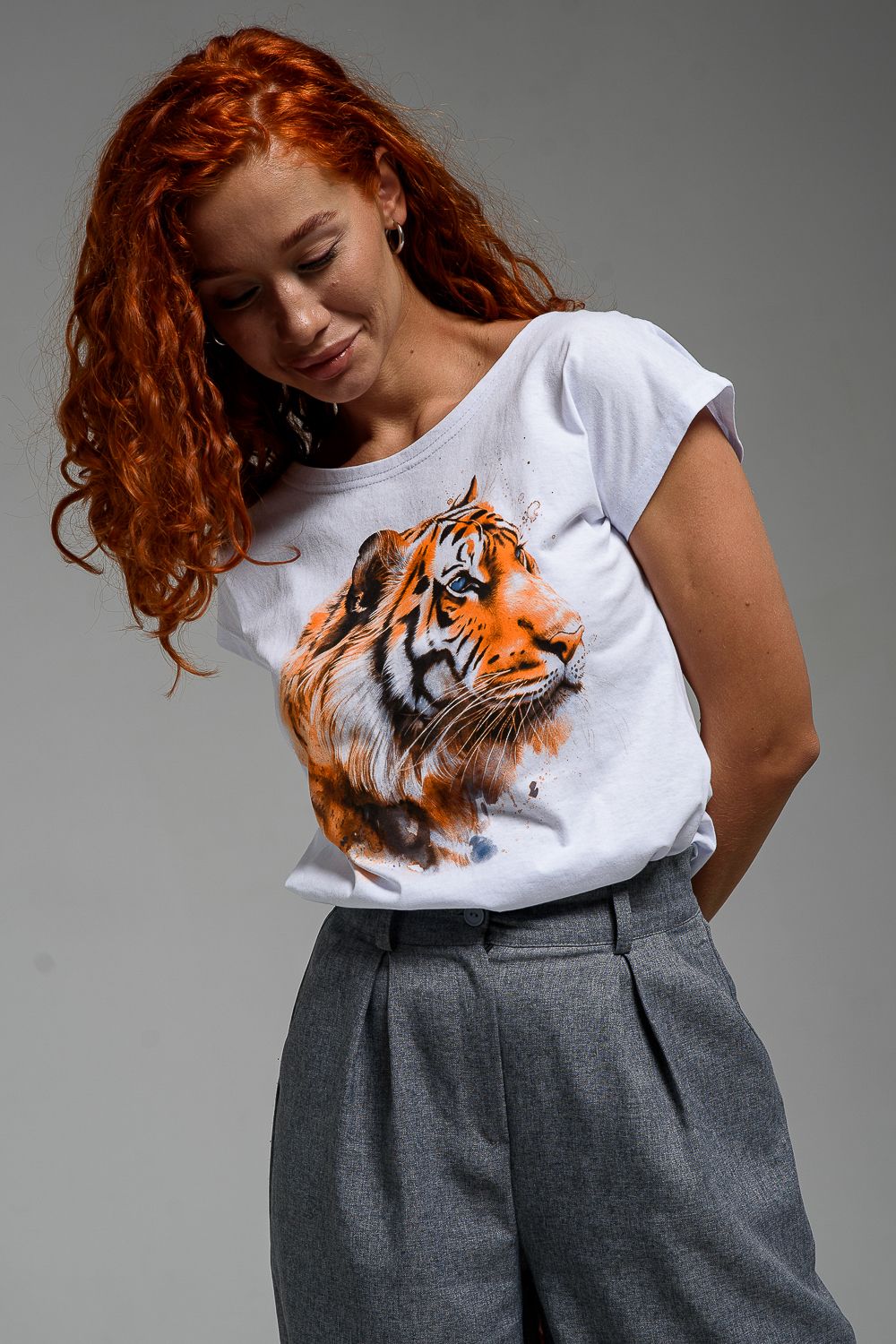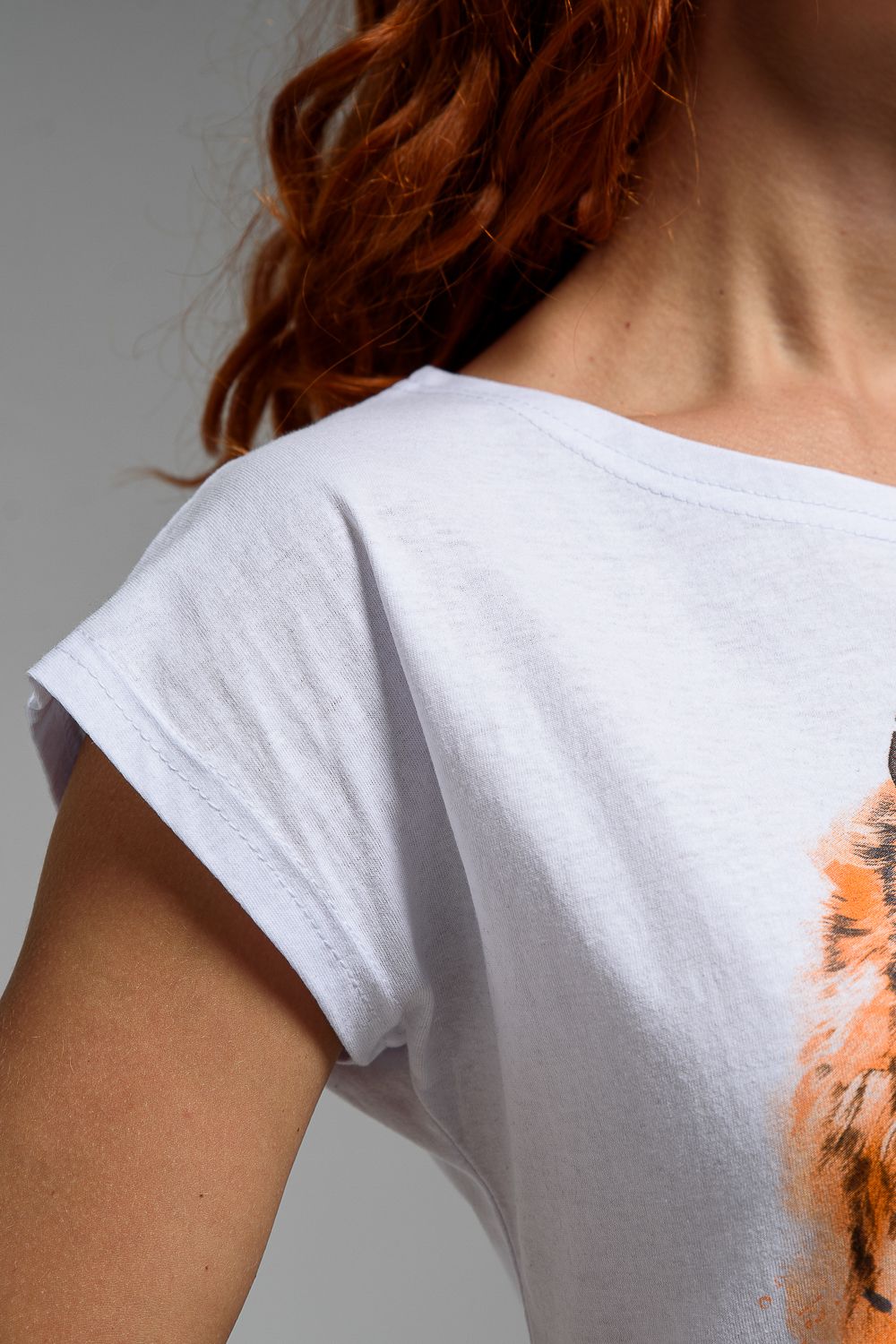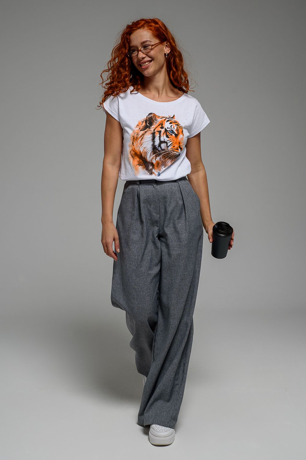 Футболка полуприлегающего силуэта, средней длины, с округлой горловиной. Рукав цельнокроеный, короткий.