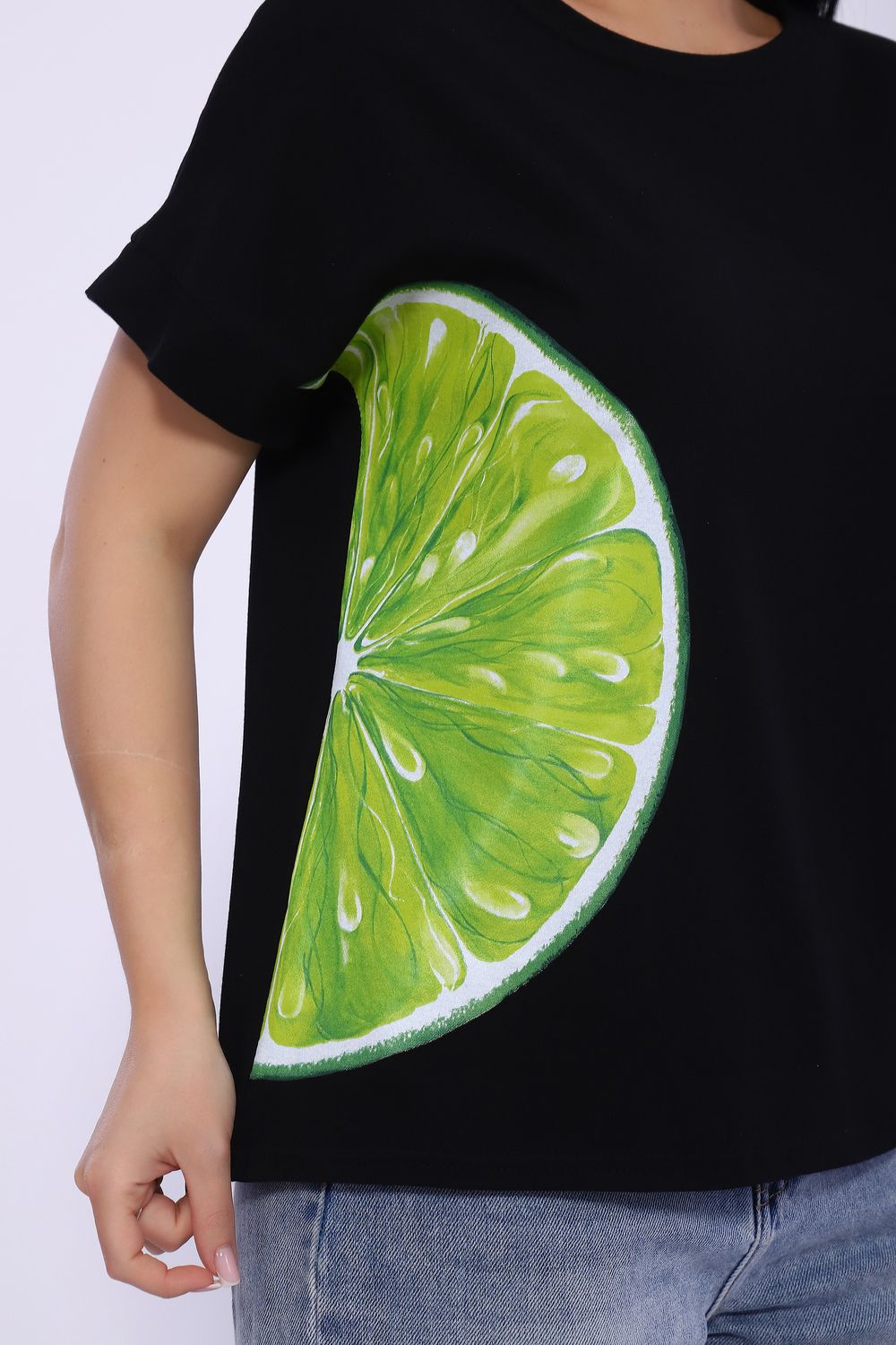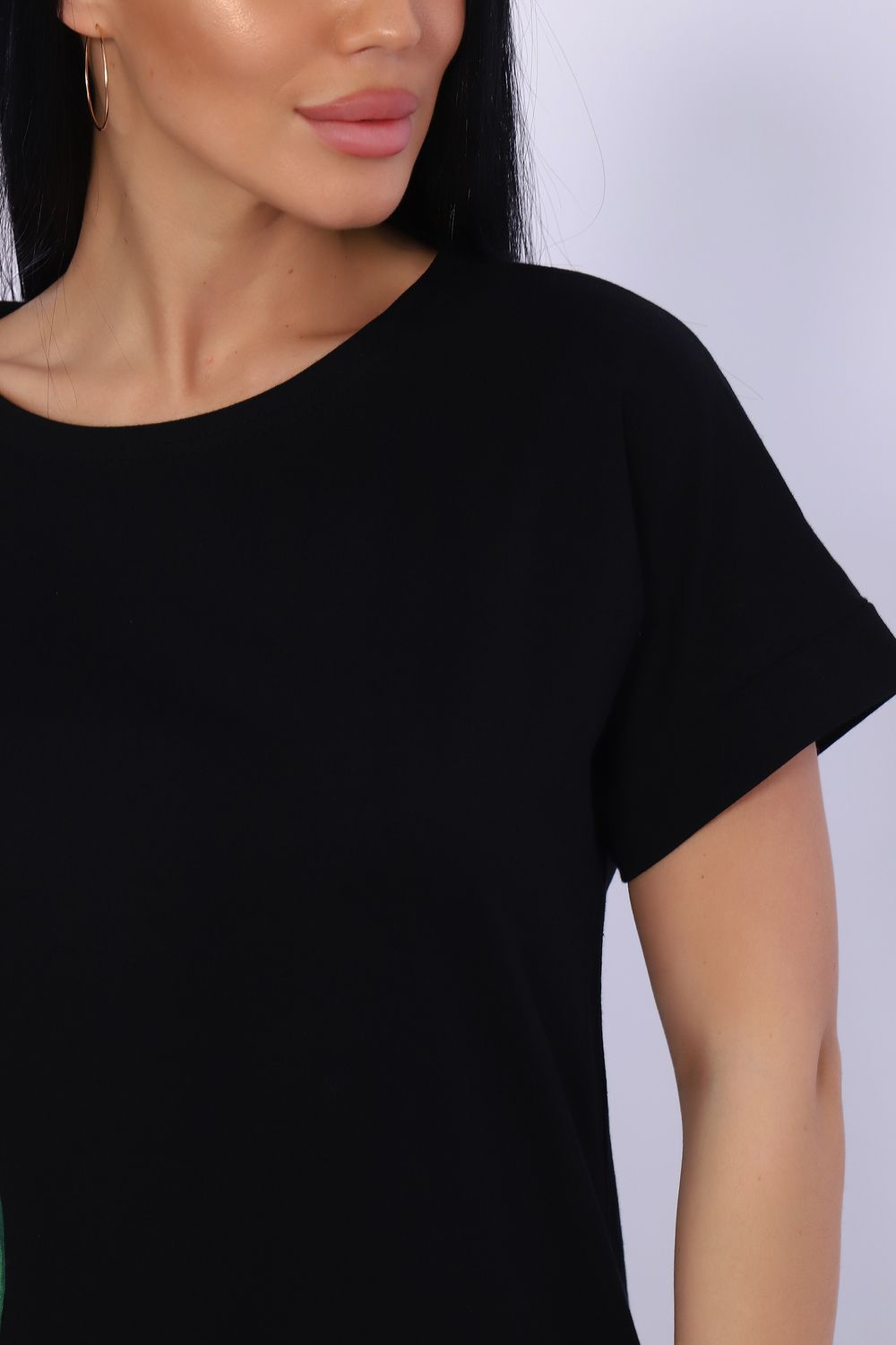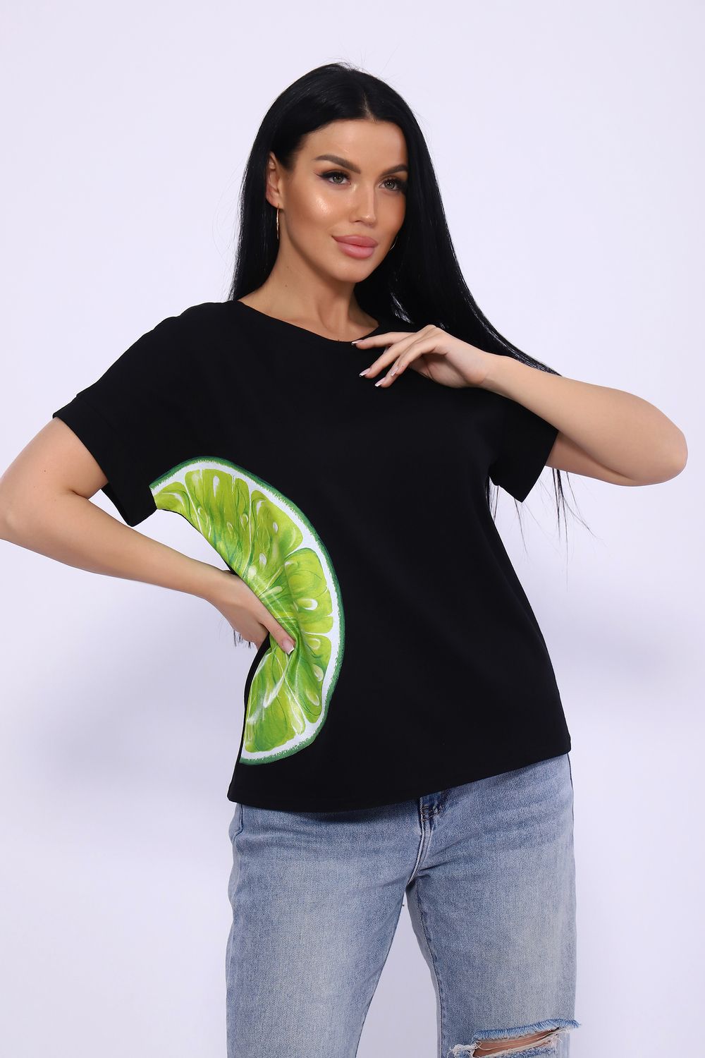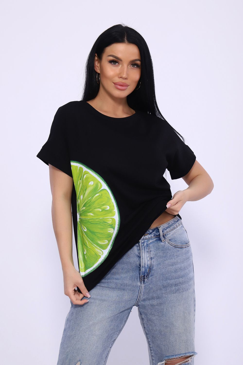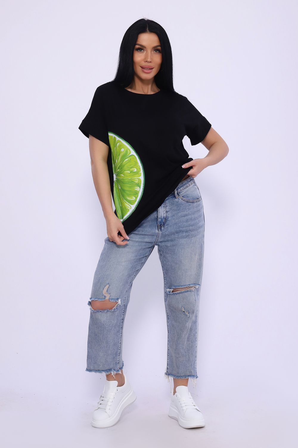 Футболка женская с ярким 3-Д принтом, из кулирки высокого качества пенье компакт. Модель свободного кроя, горловина в виде "лодочки", спущенная пройма на манжете. Стильная, приятная к телу из 100% хлопка футболка необходимая вещь в гардеробе современной девушки.