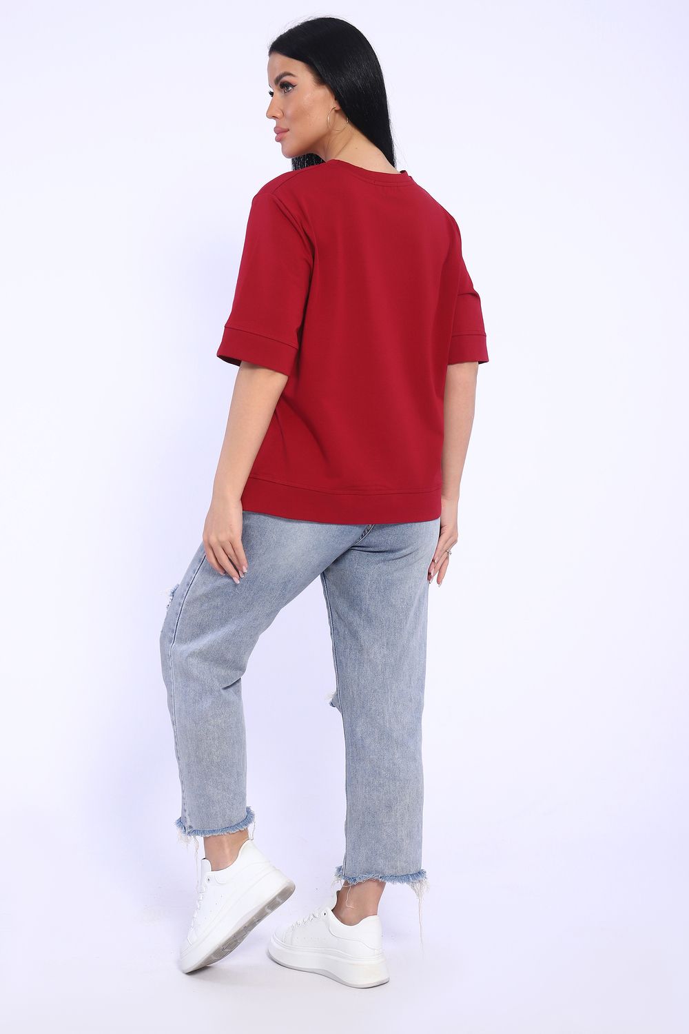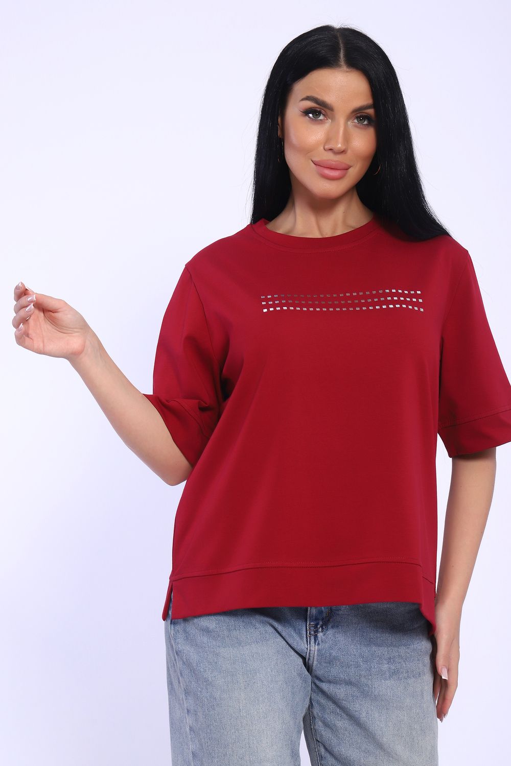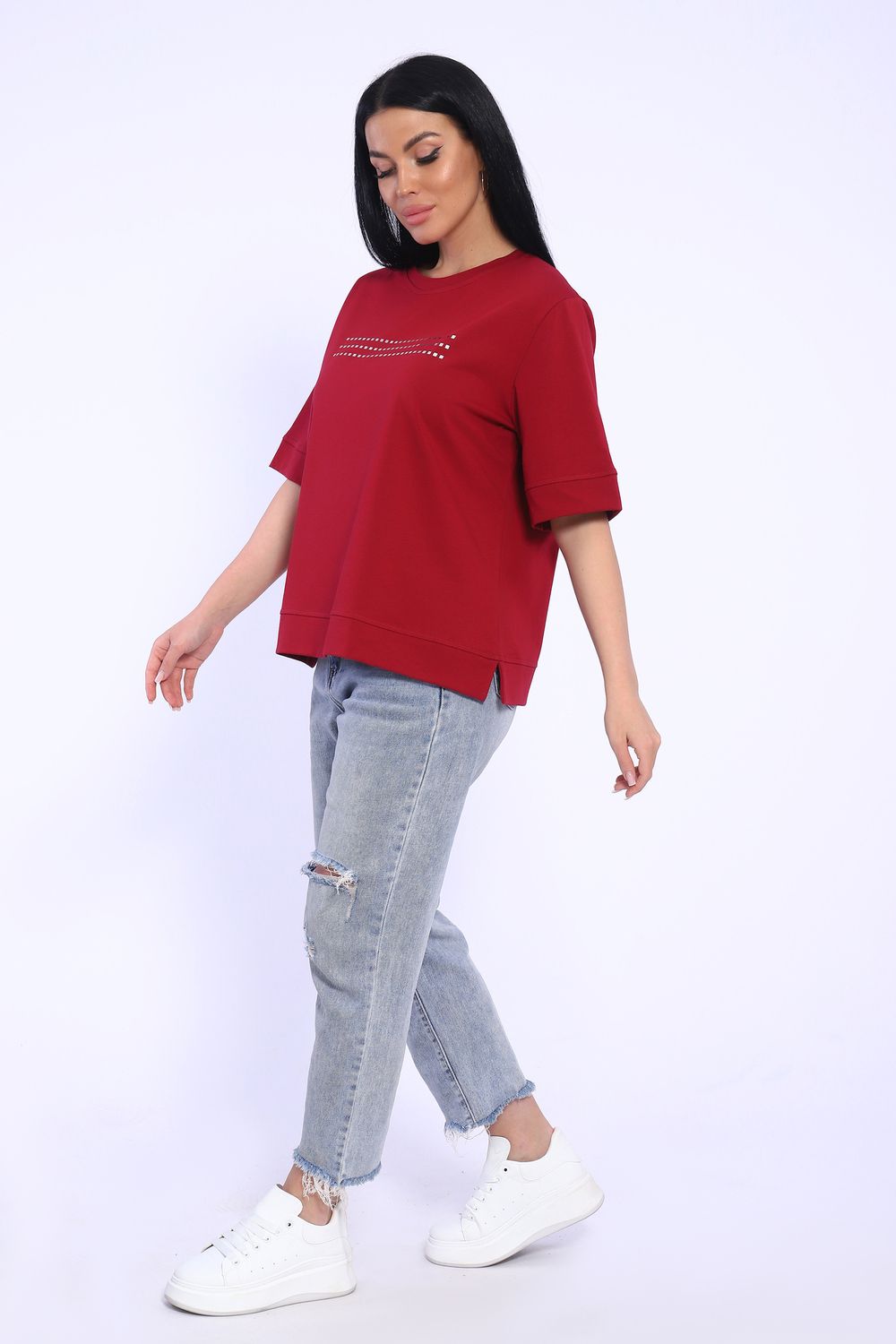 Футболка женская с мерцающим принтом из плотной, высокого качества кулирки с лайкрой пенье. Модель свободного силуэта, короткий рукав с широким манжетом, низ футболки обработан широкой планкой , по бокам небольшие разрезы. Стильная, удобная футболка для девушек разного возраста и фигуры, скроет недостатки и подчеркнёт достоинства.