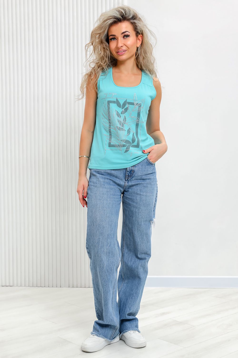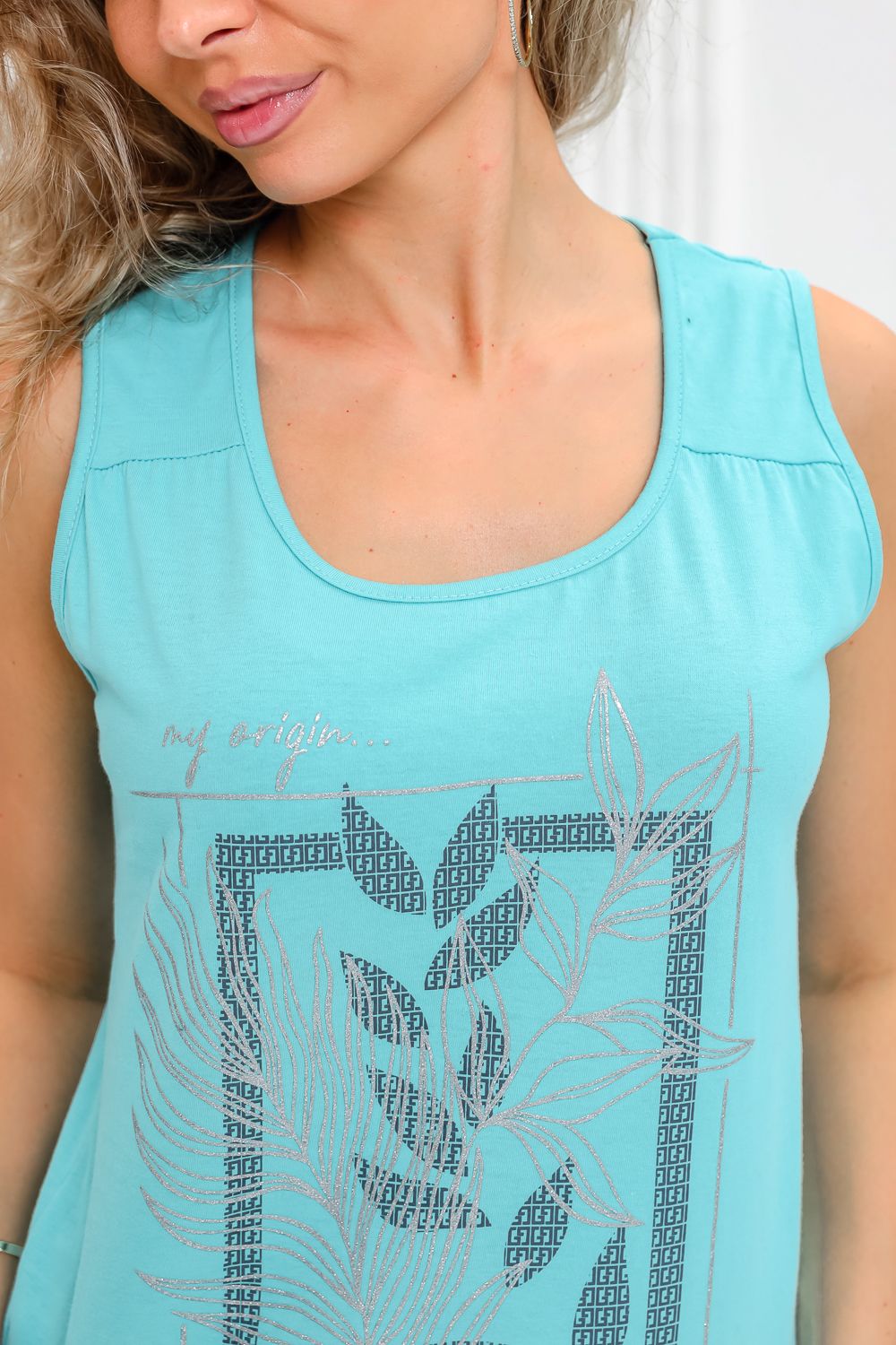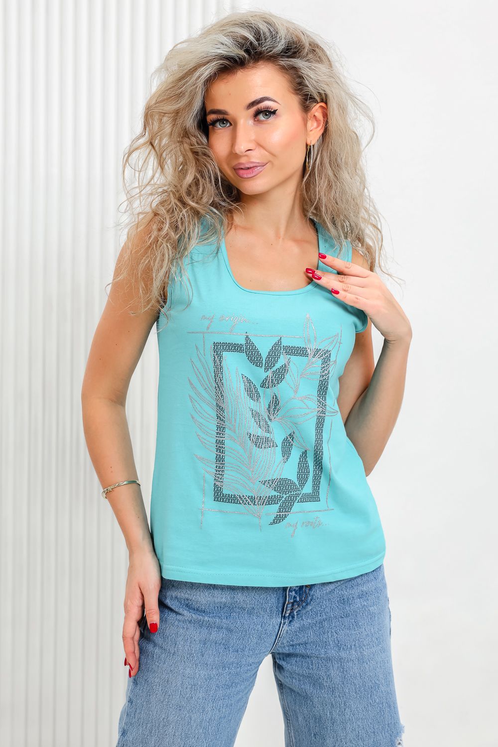 Майка прилегающего силуэта, с округлой горловиной. Полочка с кокетками. Горловина, проймы обработаны бейкой из основного полотна.