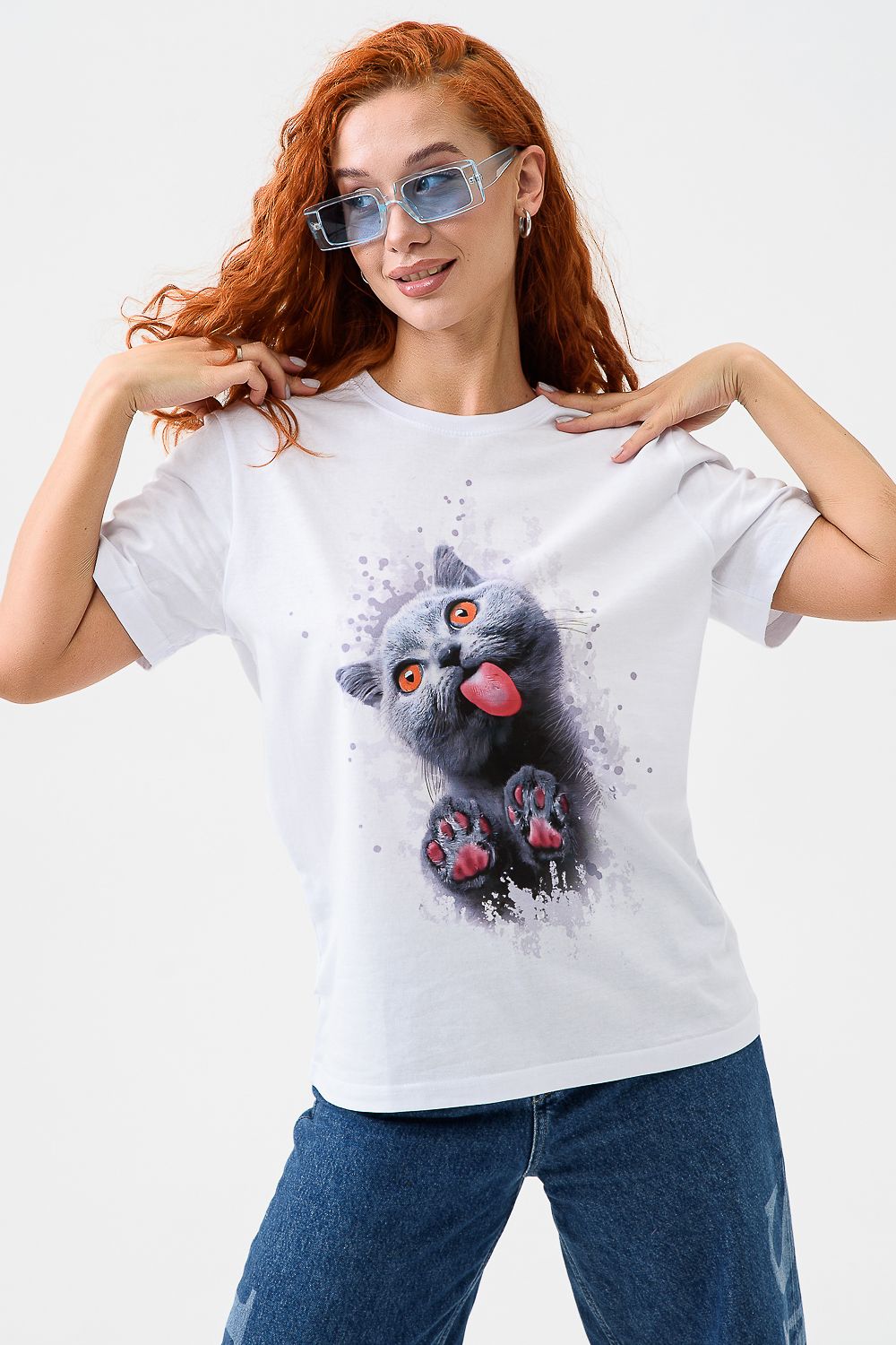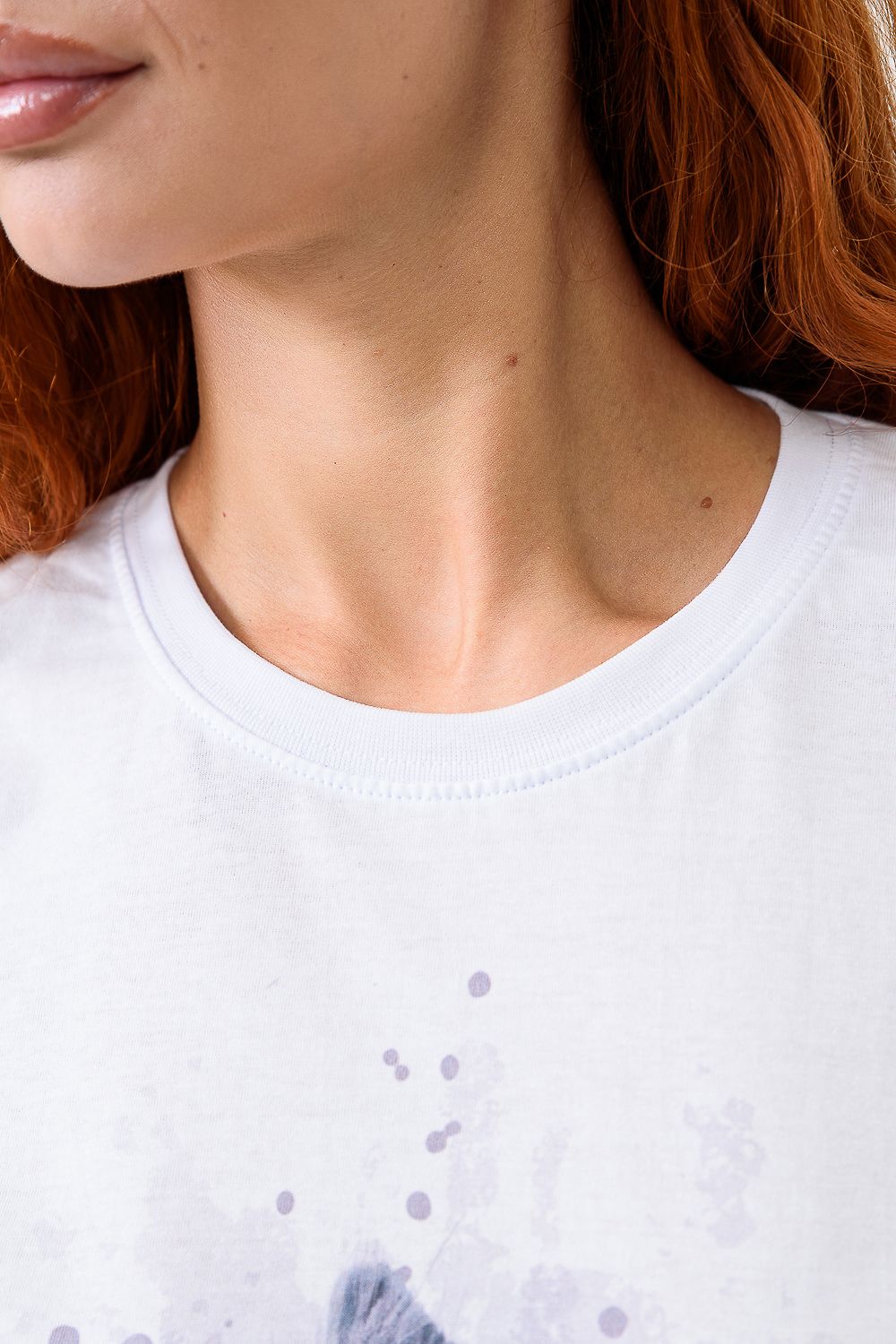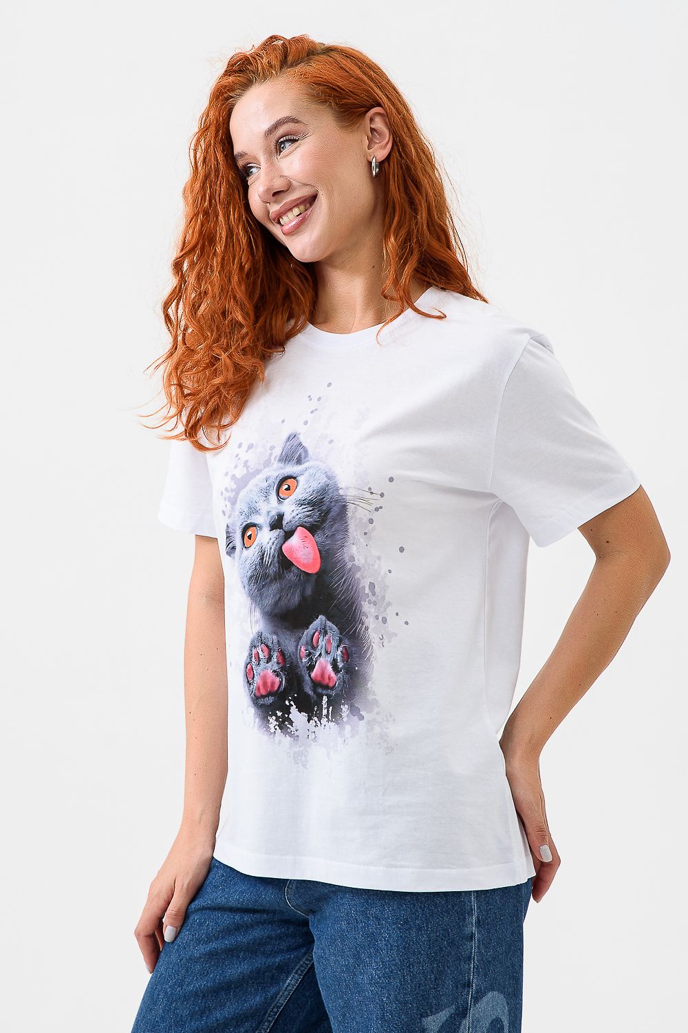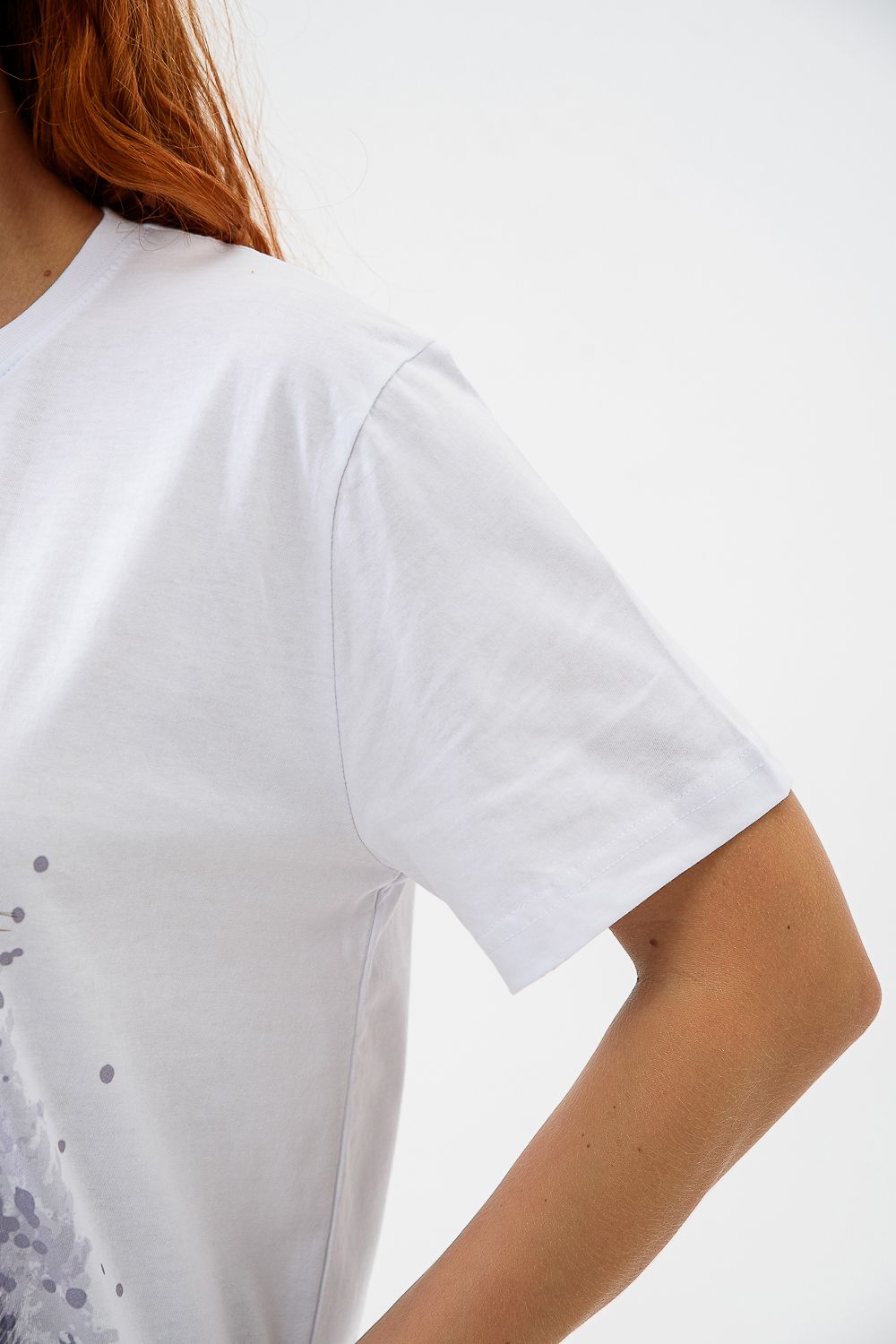 Футболка прямая, свободная, средней длины, с округлой горловиной. Рукав короткий. Горловина обработана эластичной обтачкой.