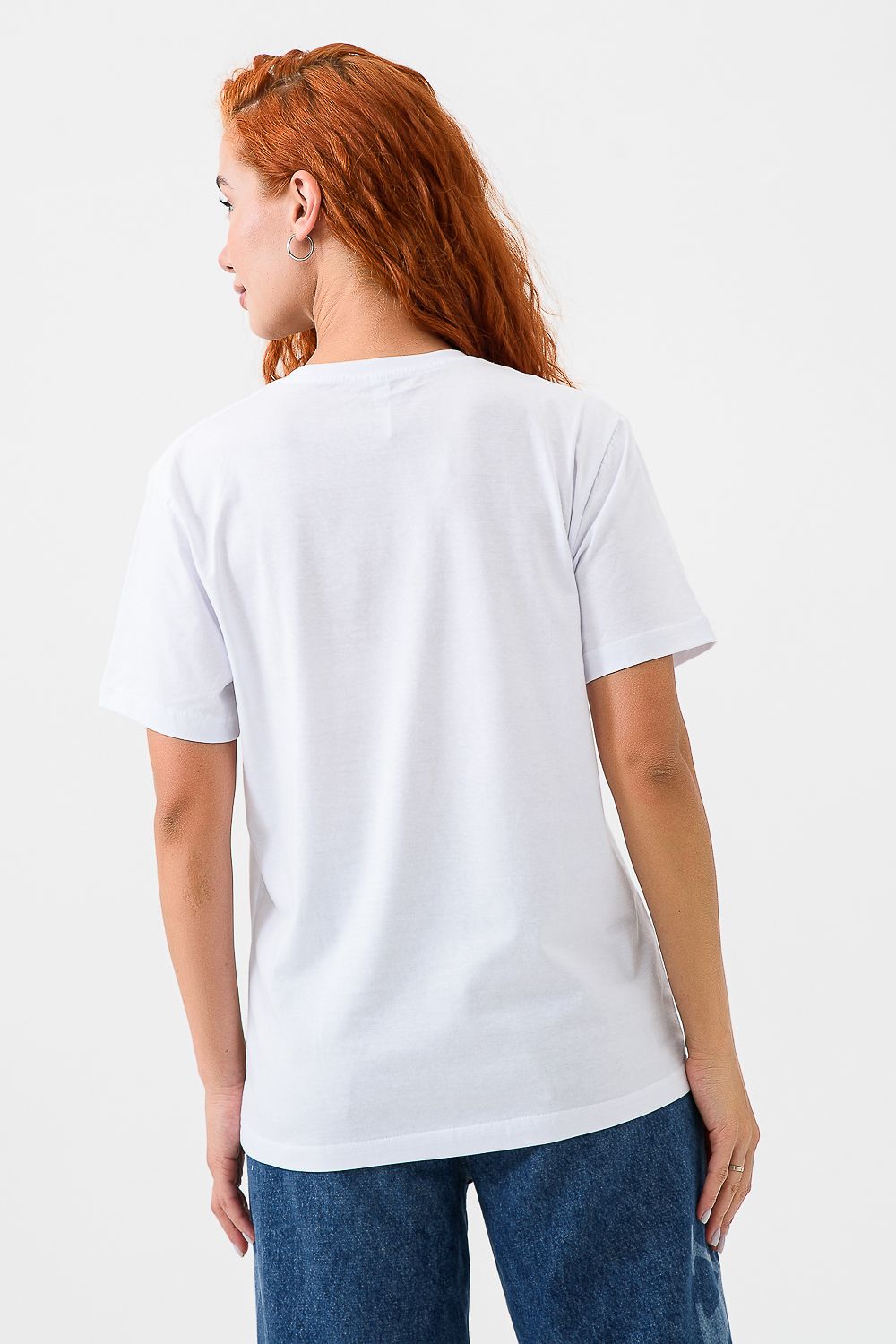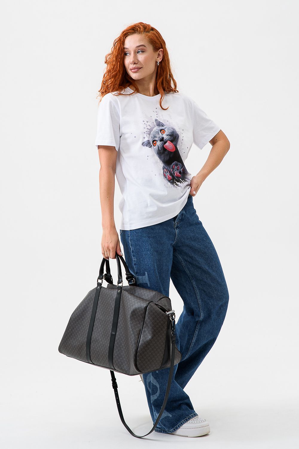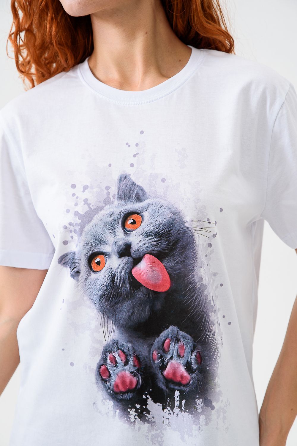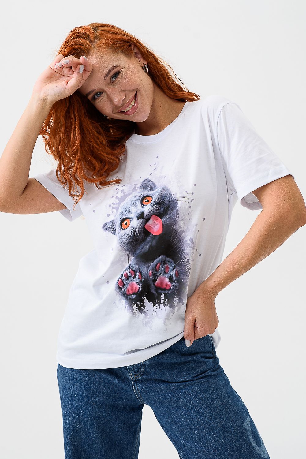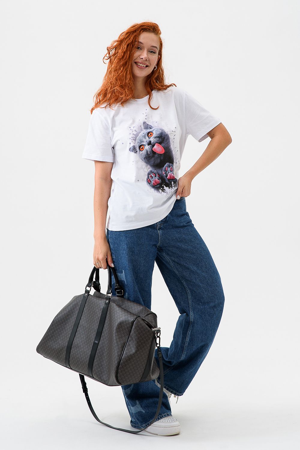 Футболка прямая, свободная, средней длины, с округлой горловиной. Рукав короткий. Горловина обработана эластичной обтачкой.