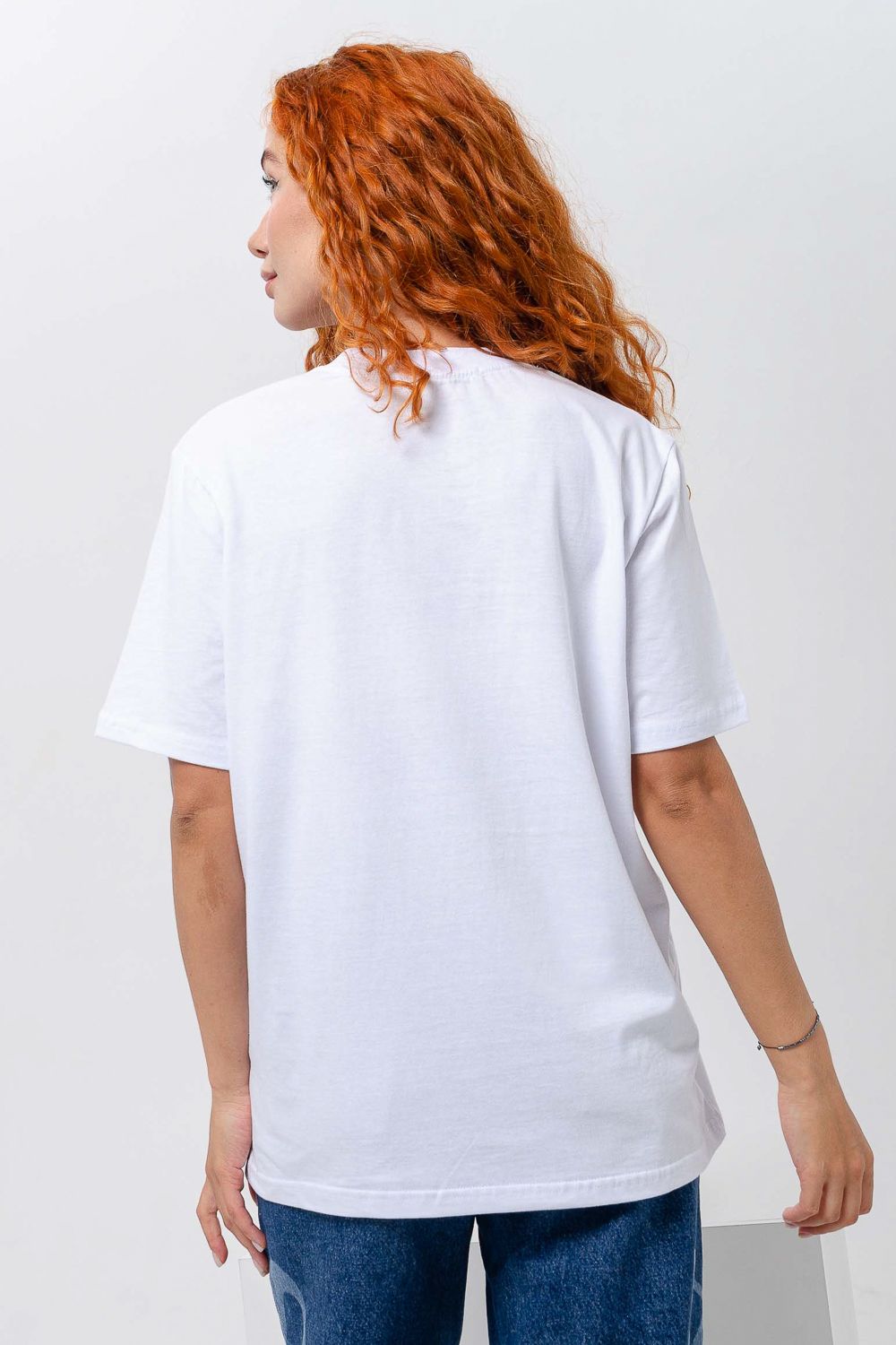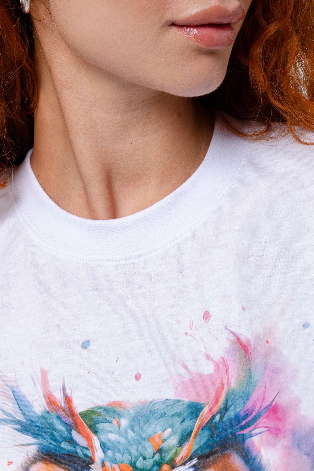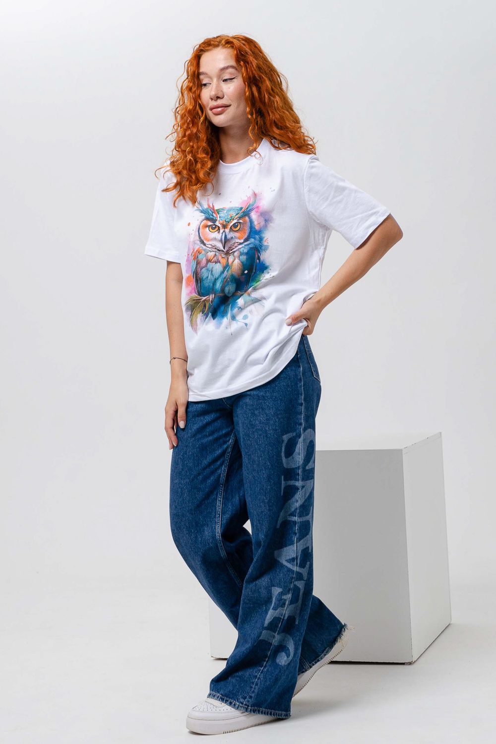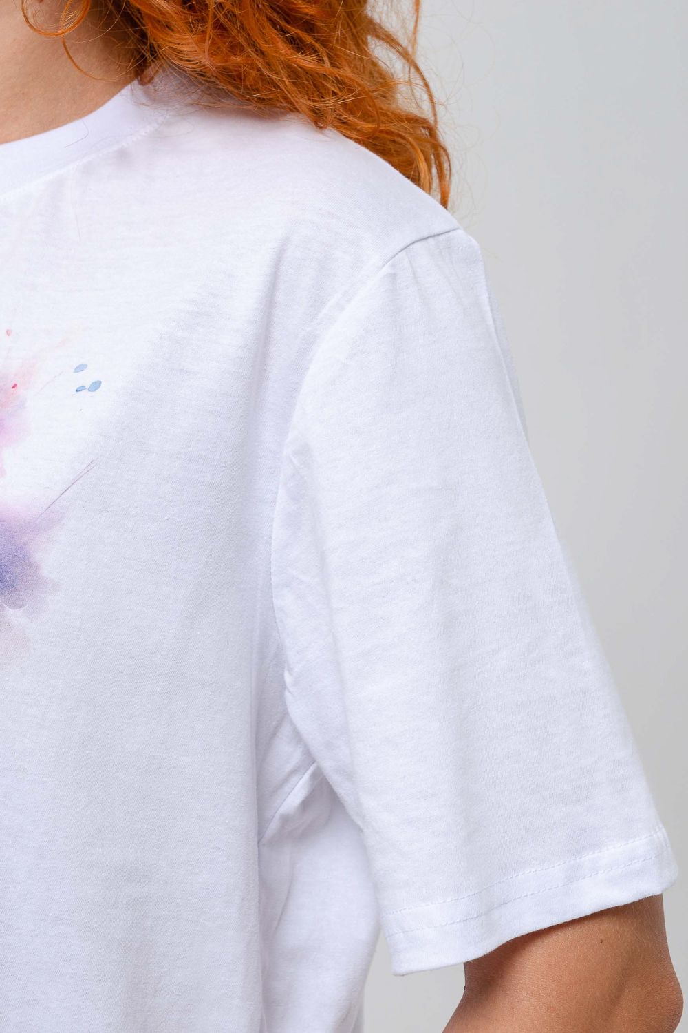Футболка прямая, свободная, средней длины, с округлой горловиной. Рукав короткий. Горловина обработана эластичной обтачкой.
