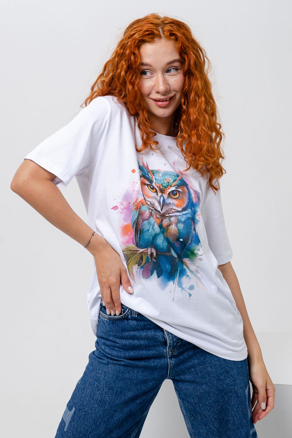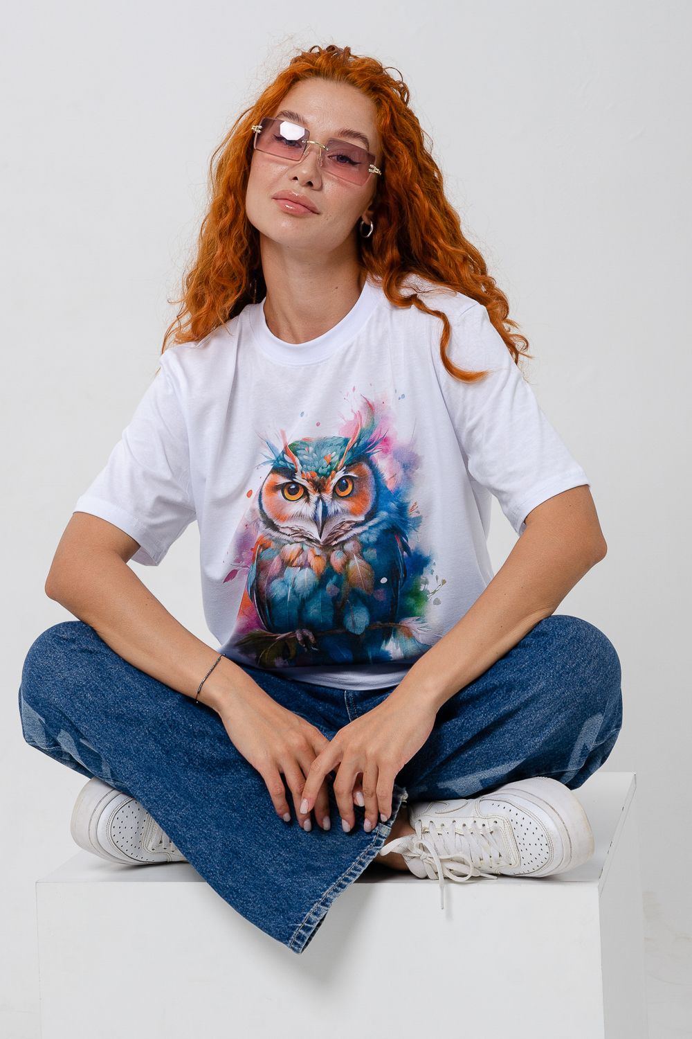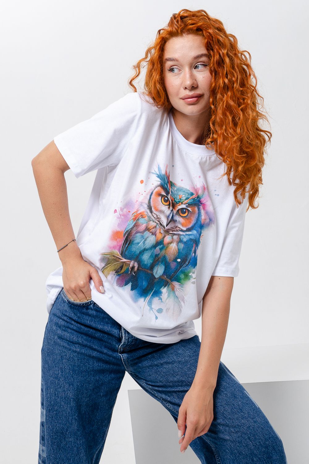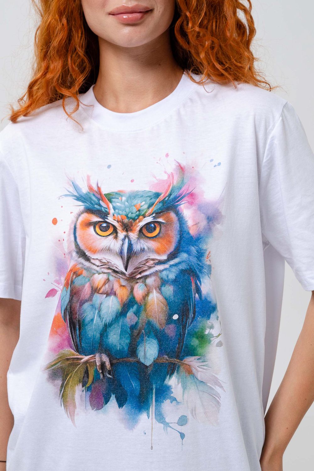 Футболка прямая, свободная, средней длины, с округлой горловиной. Рукав короткий. Горловина обработана эластичной обтачкой.