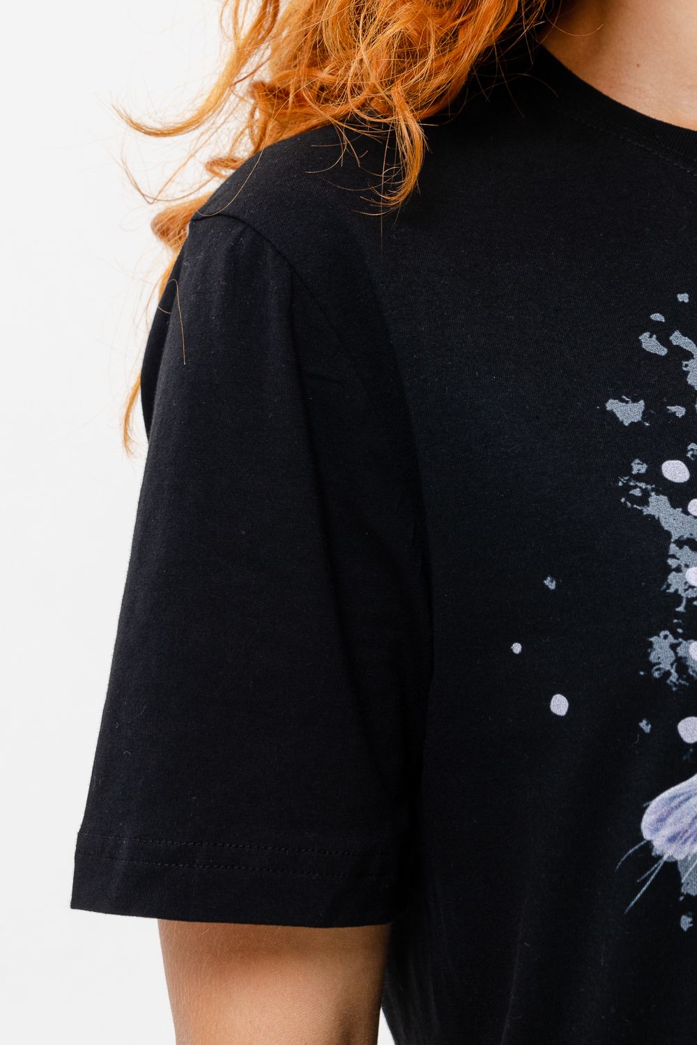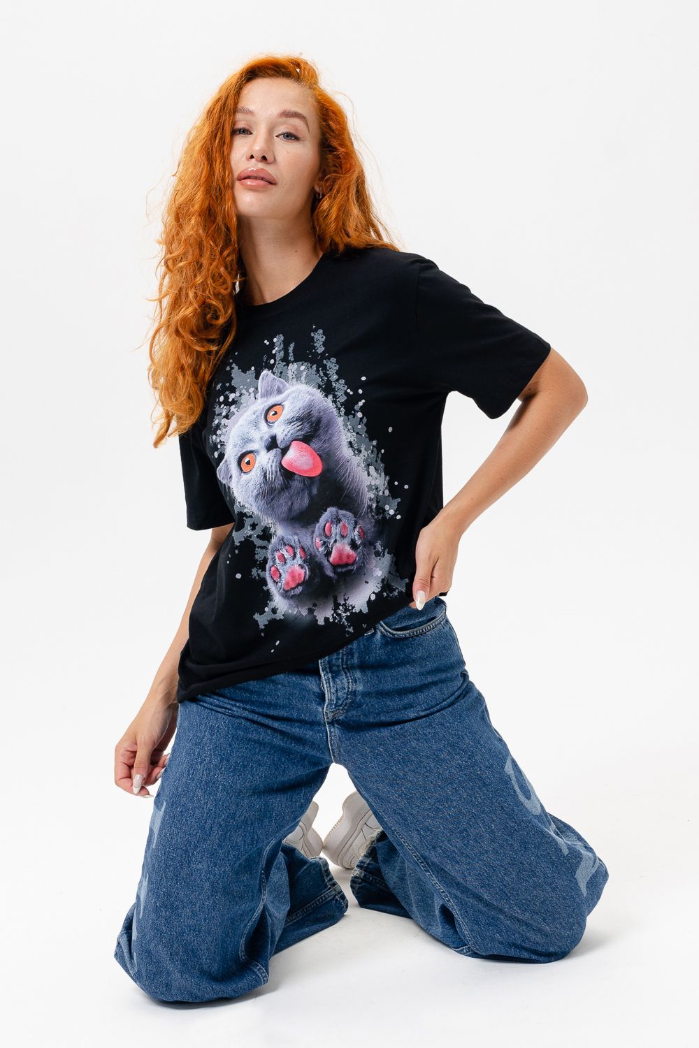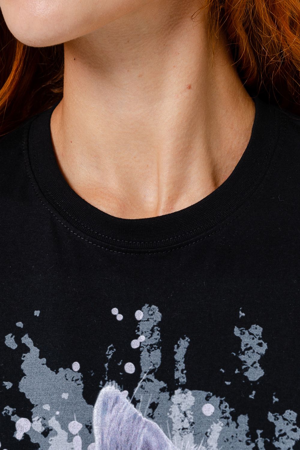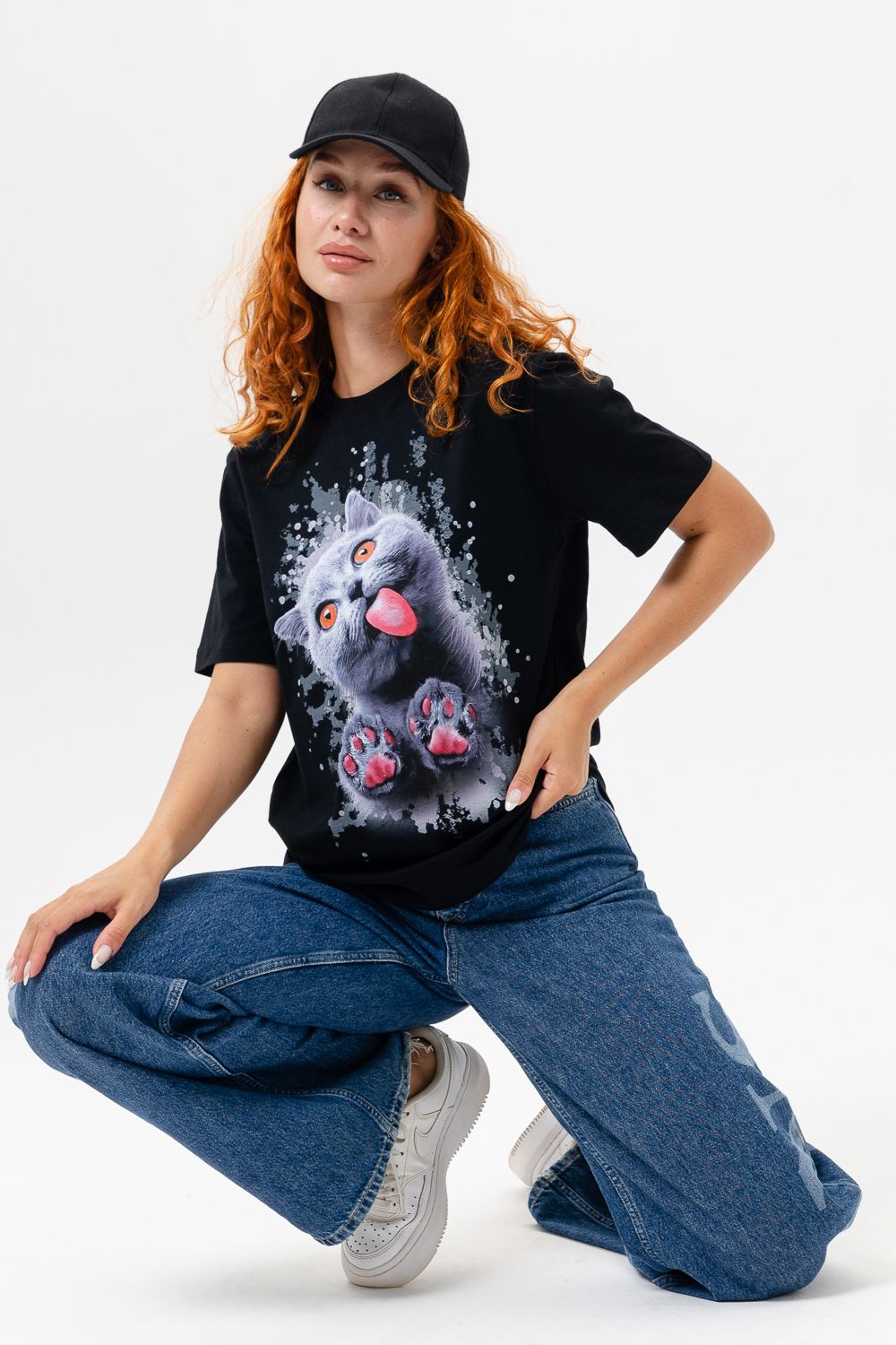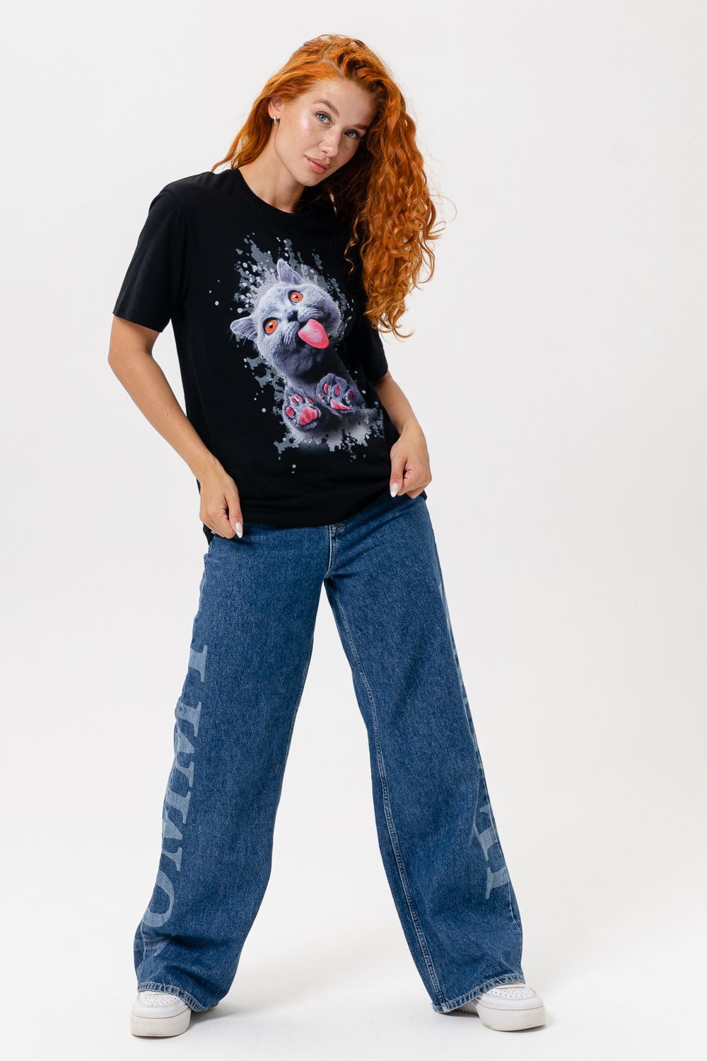 Футболка женская 8488 - черный+кошка