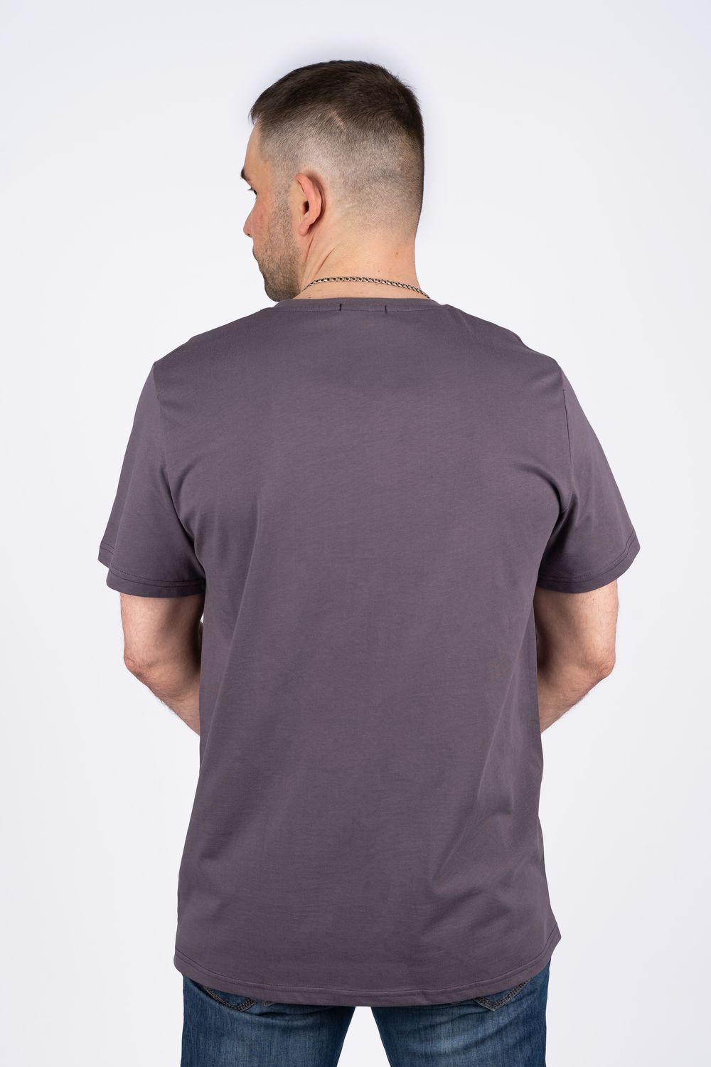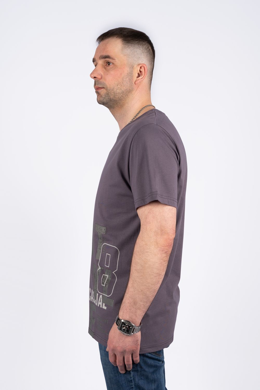 Футболка классического прямого кроя идёт всем и легко сочетается со свободными джинсами, спортивными брюками и шортами. Мягкий дышащий материал ― не слишком плотный и не слишком тонкий. Прямой силуэт футболки, втачной рукав, горловина V-образная, обработана воротником из рибаны. Горловина спинки внутри укреплена настрочной планкой из кулирки. Низ изделия и рукавов обработан швом в подгибку. На полочке принт шелкография.