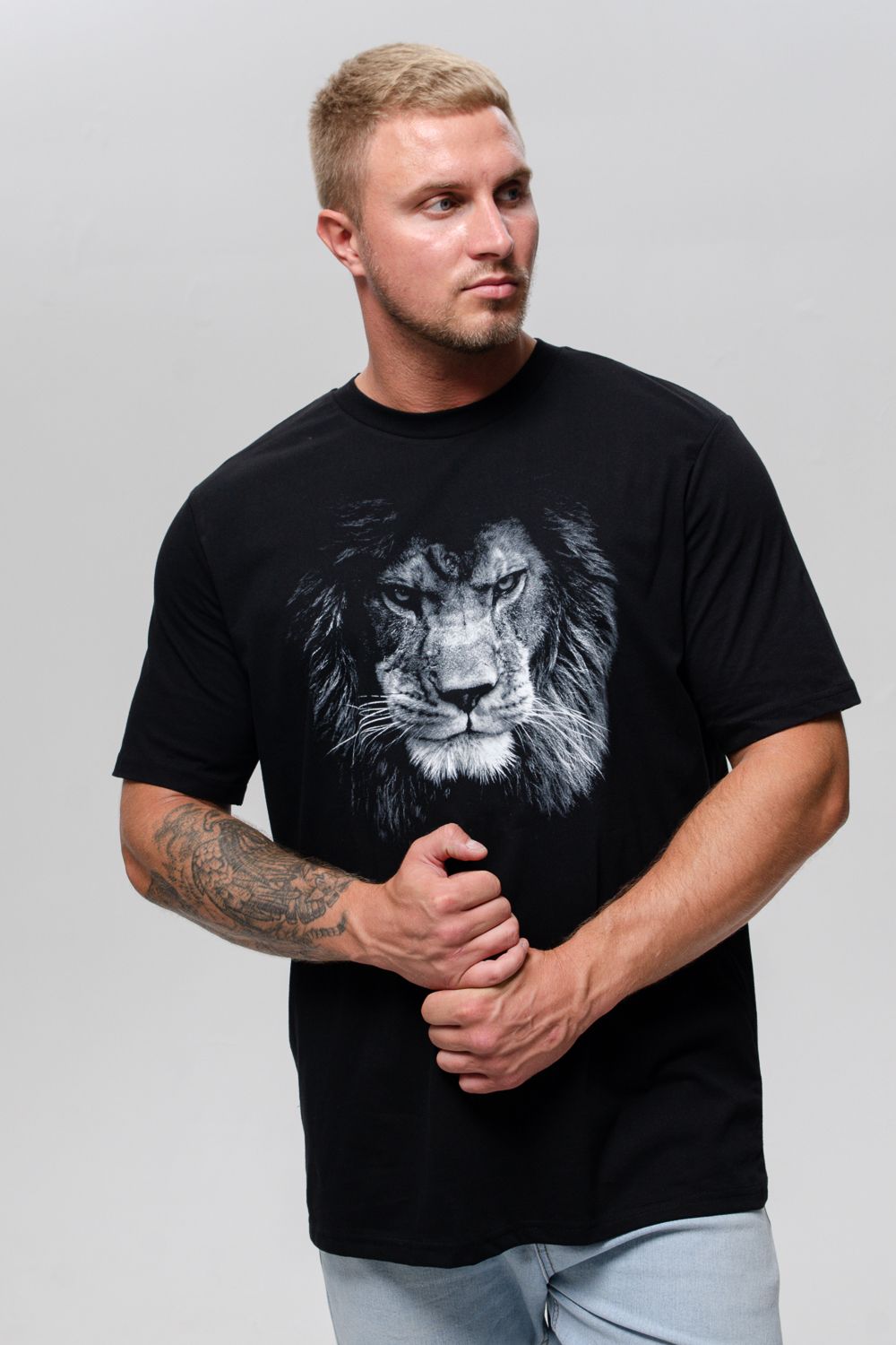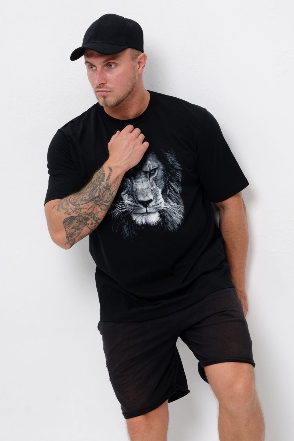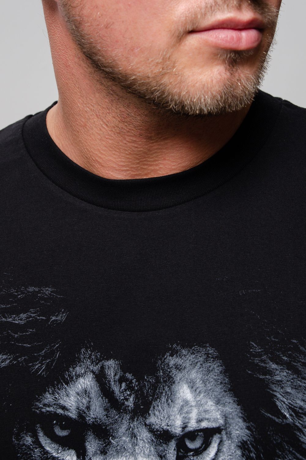 Футболка прямая, свободная, средней длины, с округлой горловиной. Рукав короткий. Горловина обработана эластичной обтачкой. Изображение волка возможно другое.