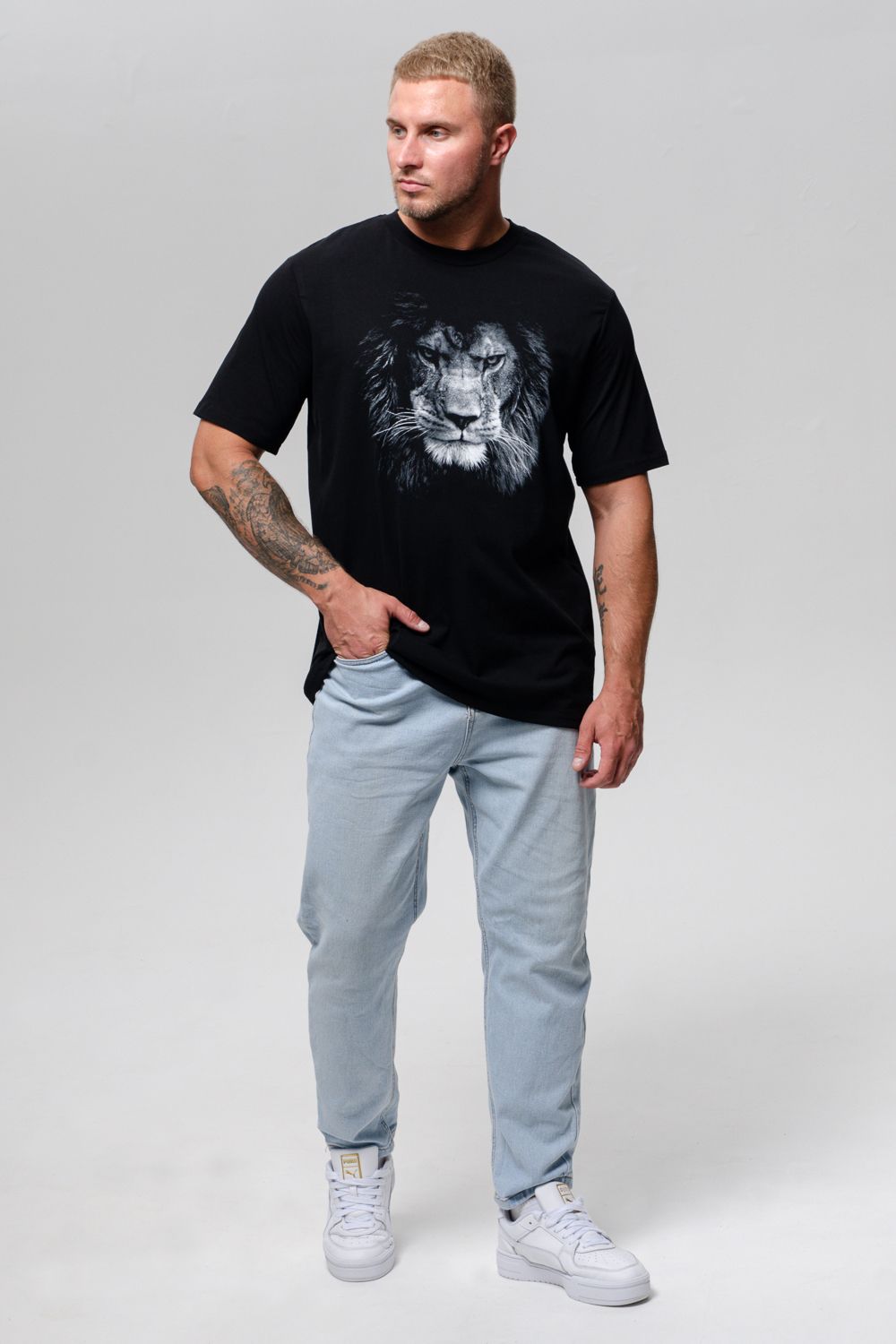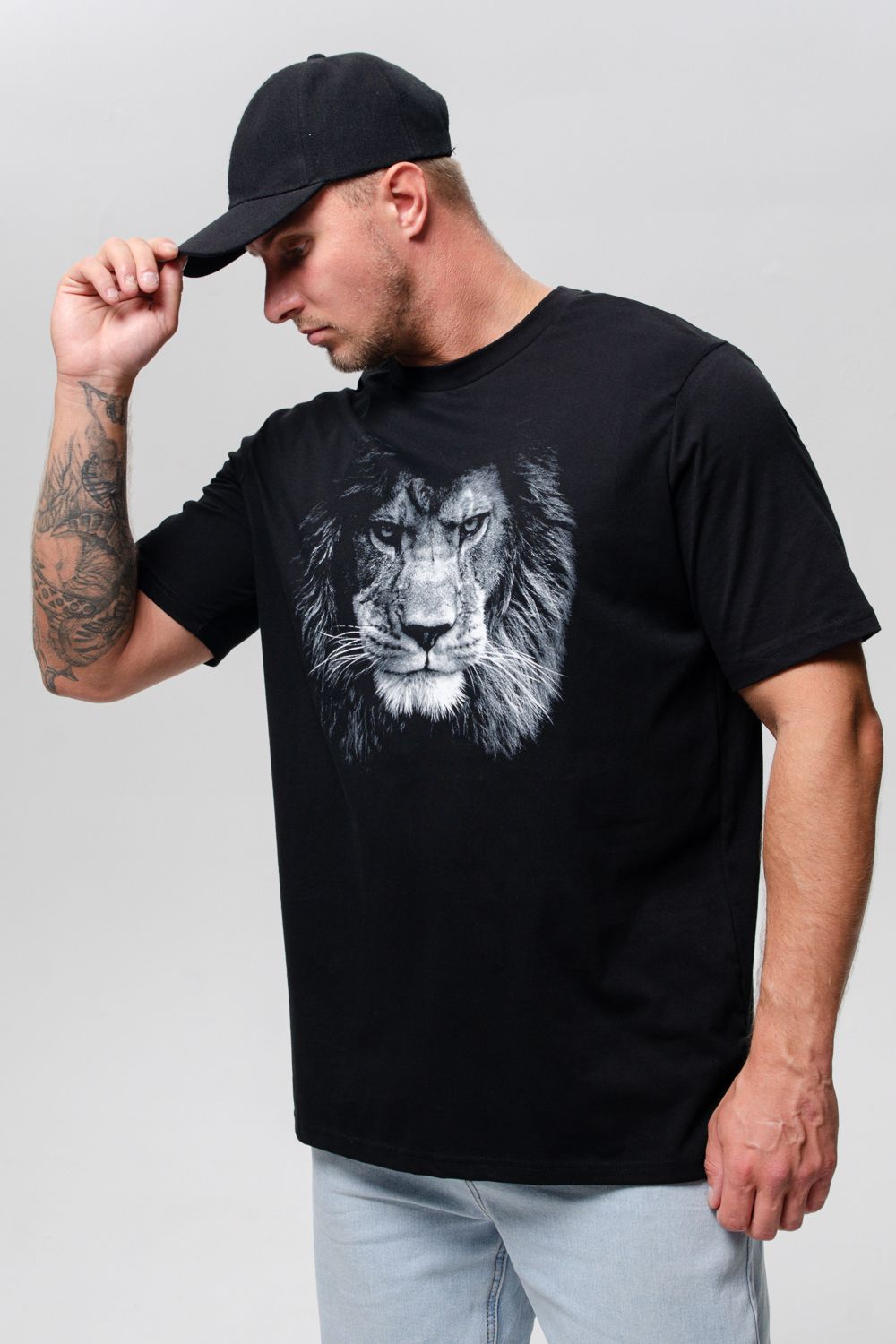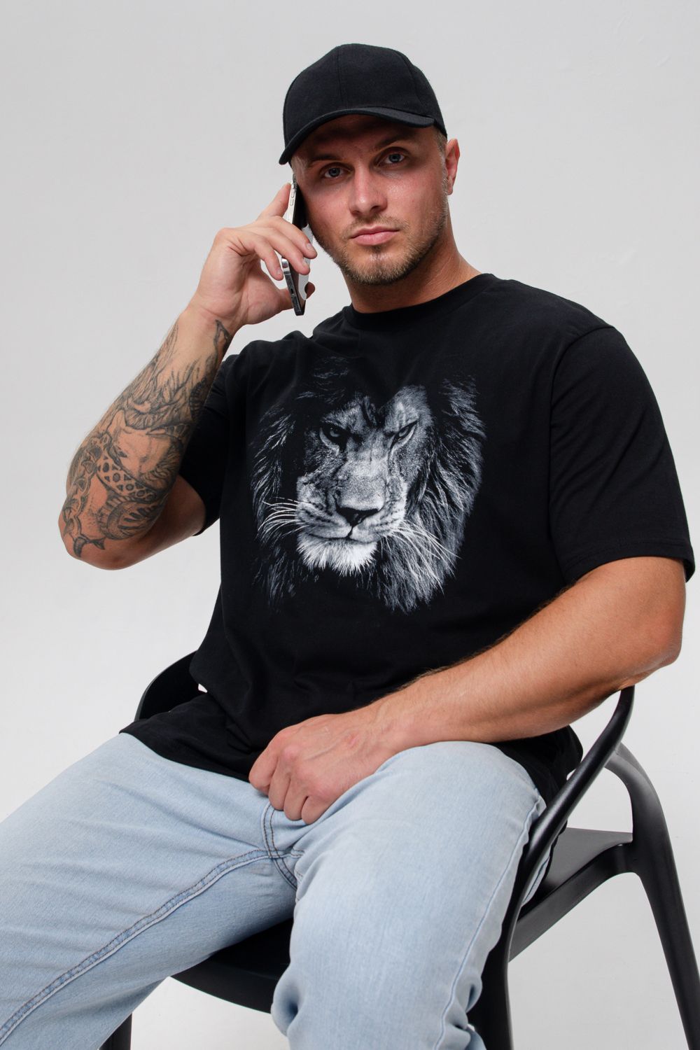 Футболка прямая, свободная, средней длины, с округлой горловиной. Рукав короткий. Горловина обработана эластичной обтачкой. Изображение волка возможно другое.
