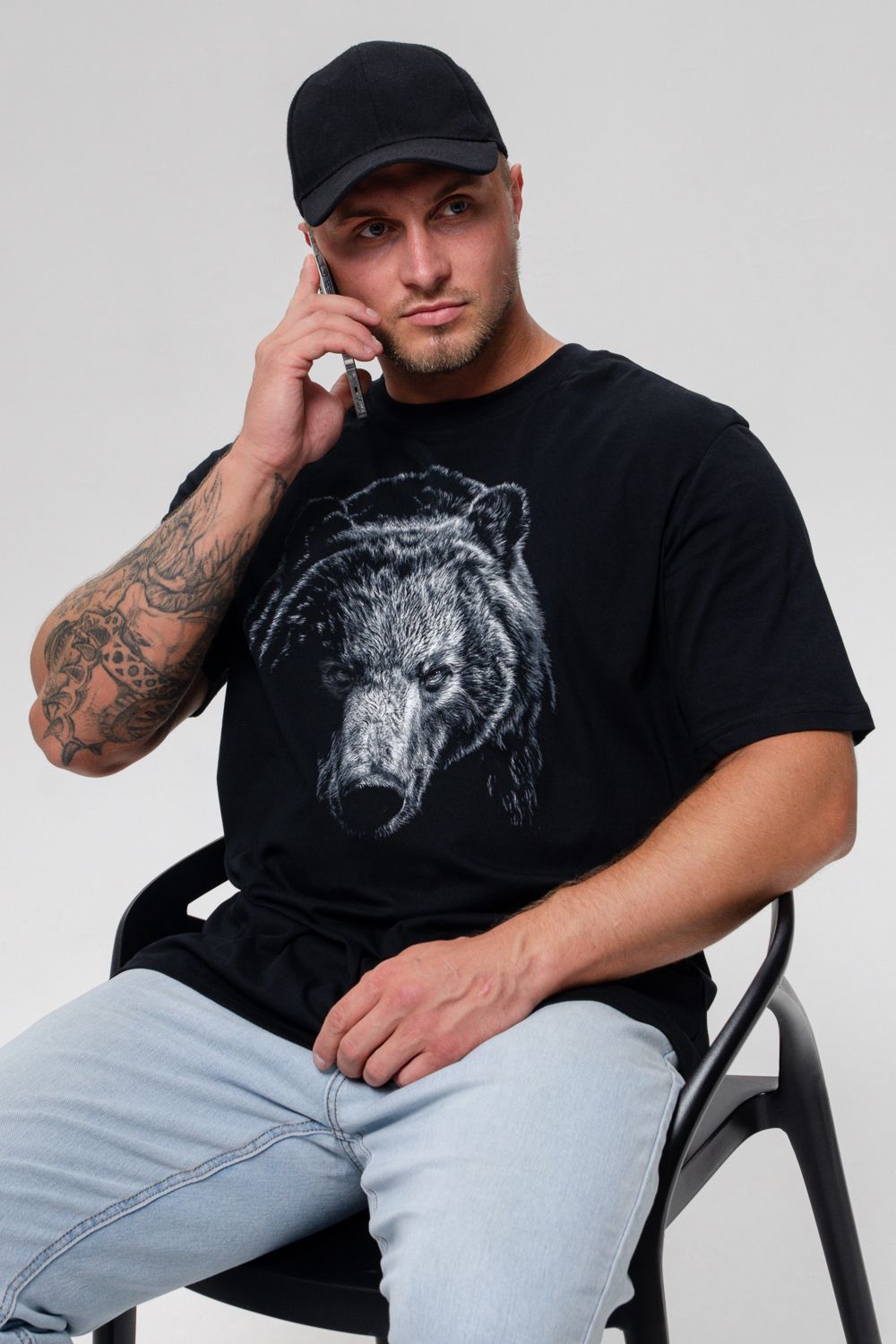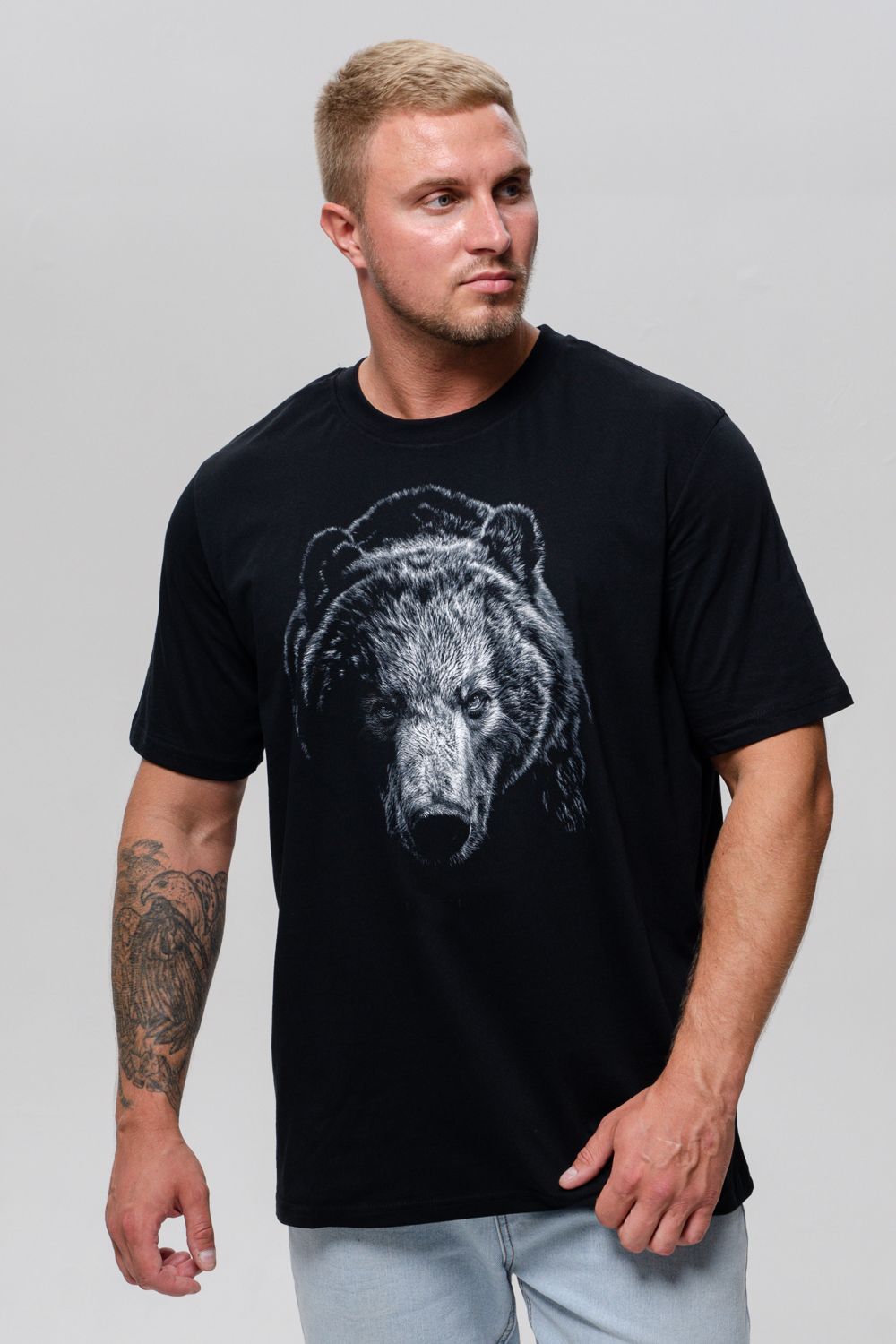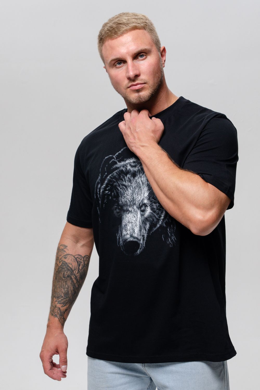 Футболка мужская 8500/1 - черный+медведь