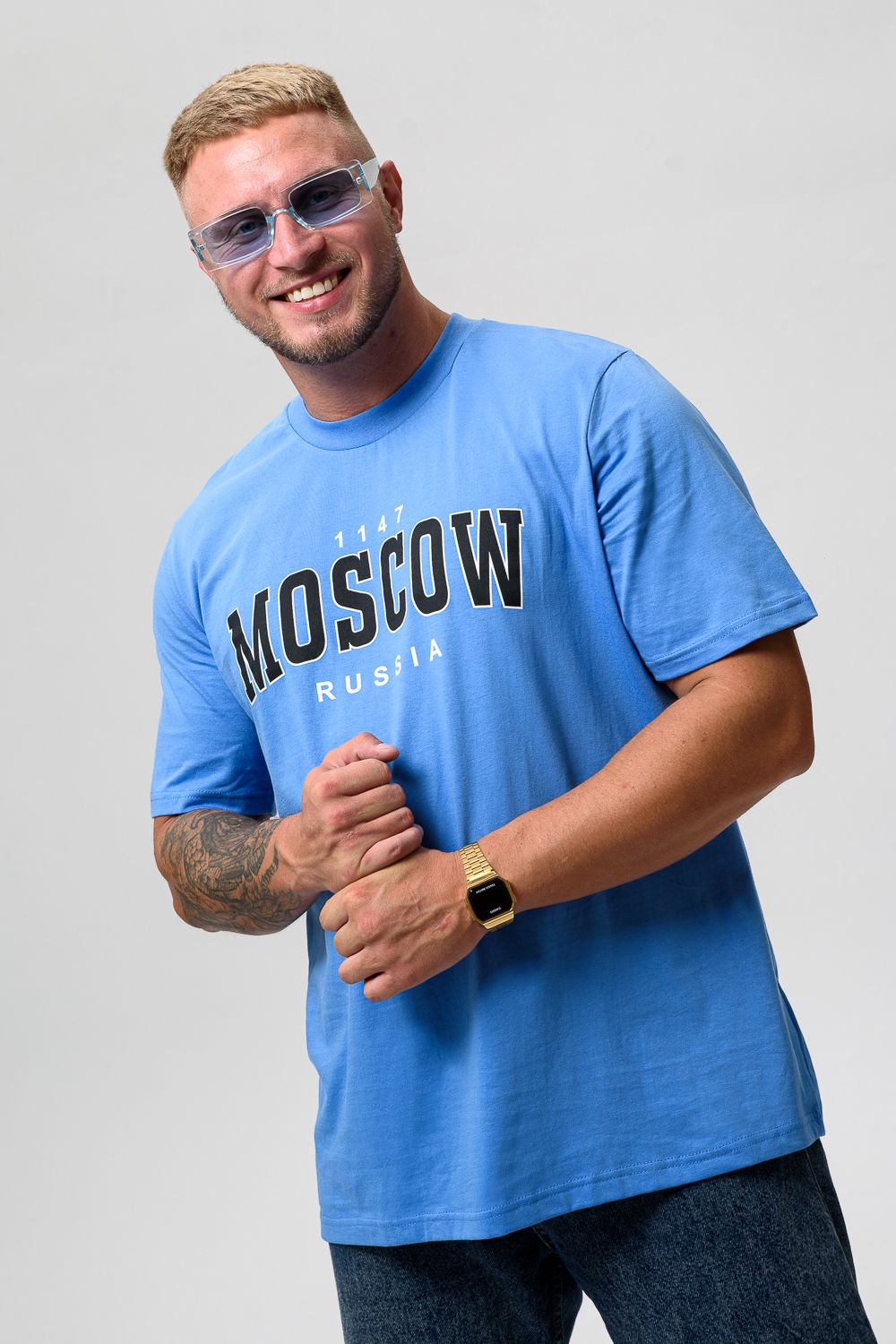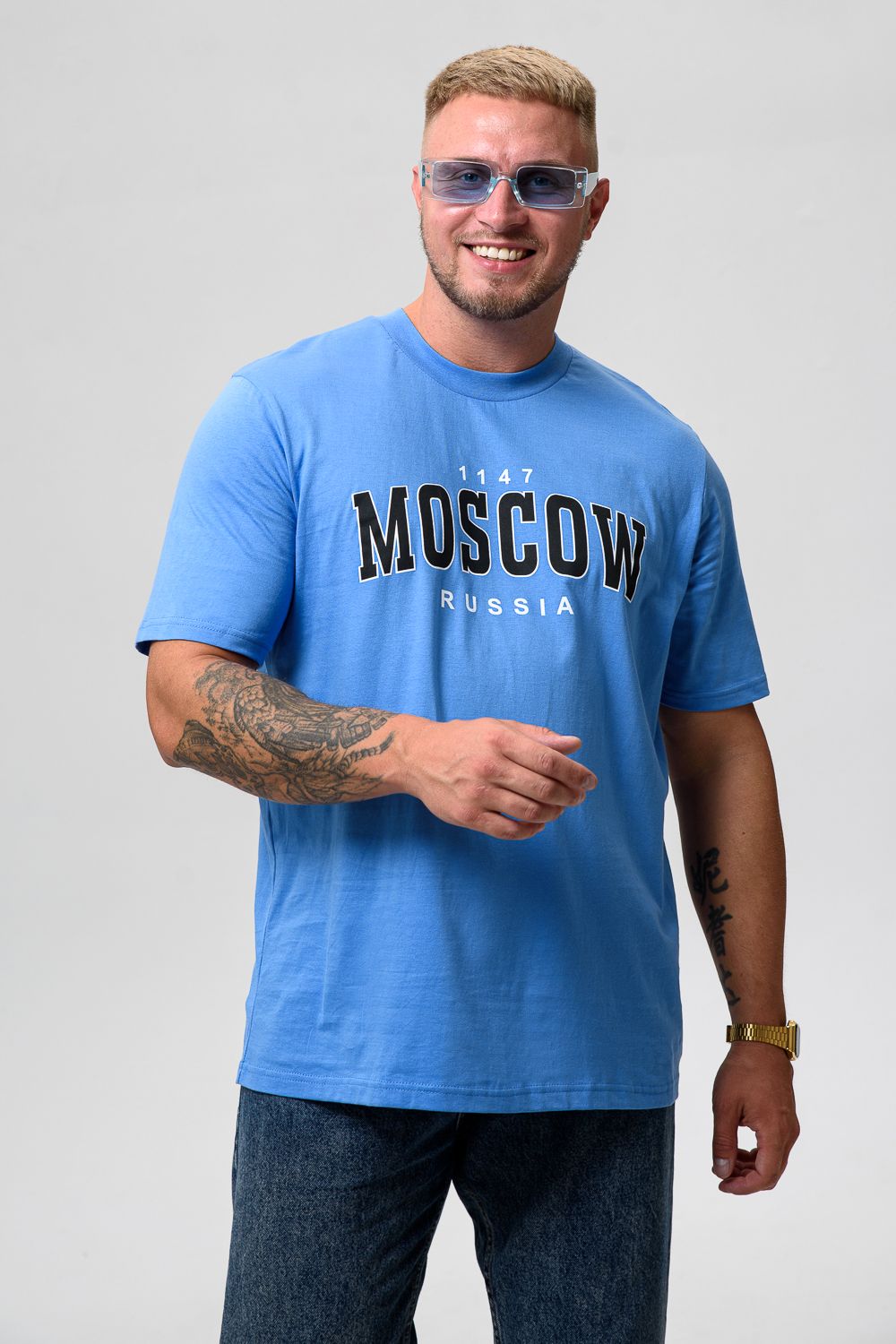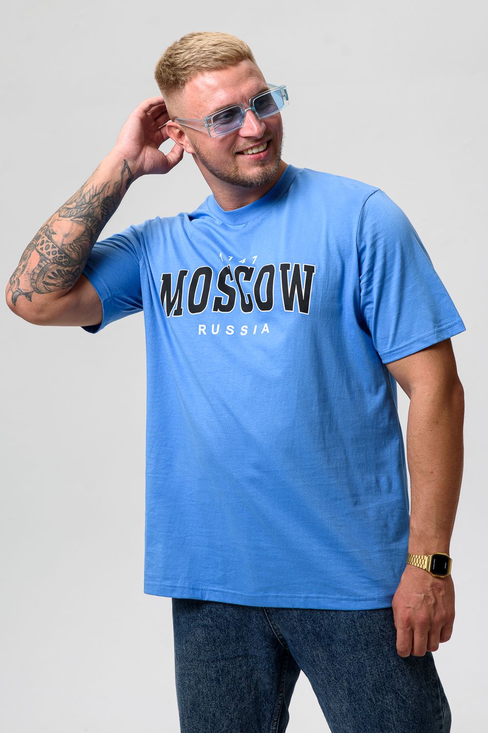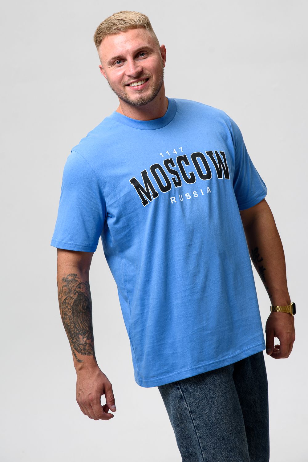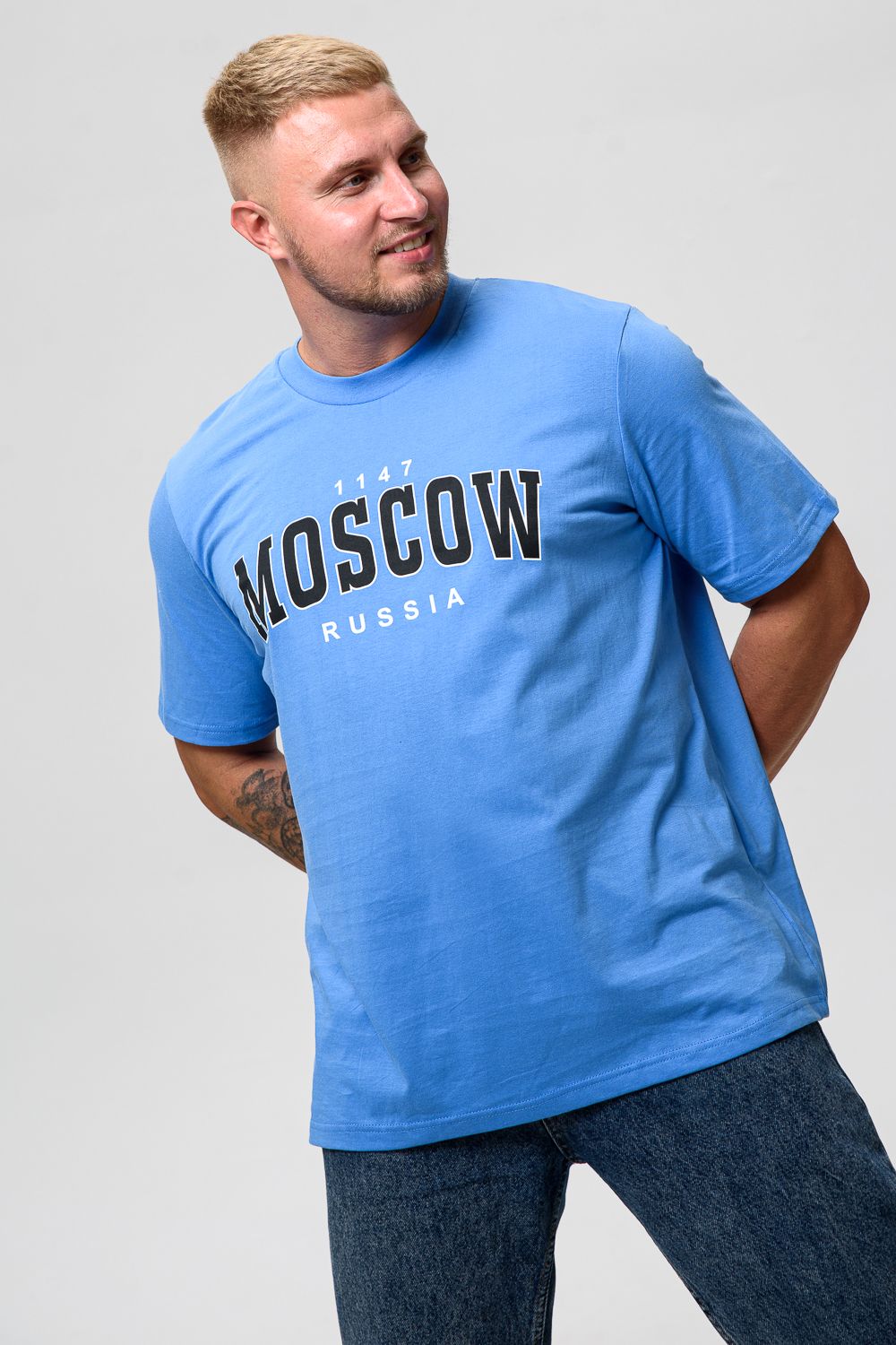 Футболка мужская 8503/1 - голубой+Москва