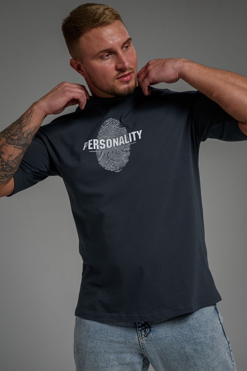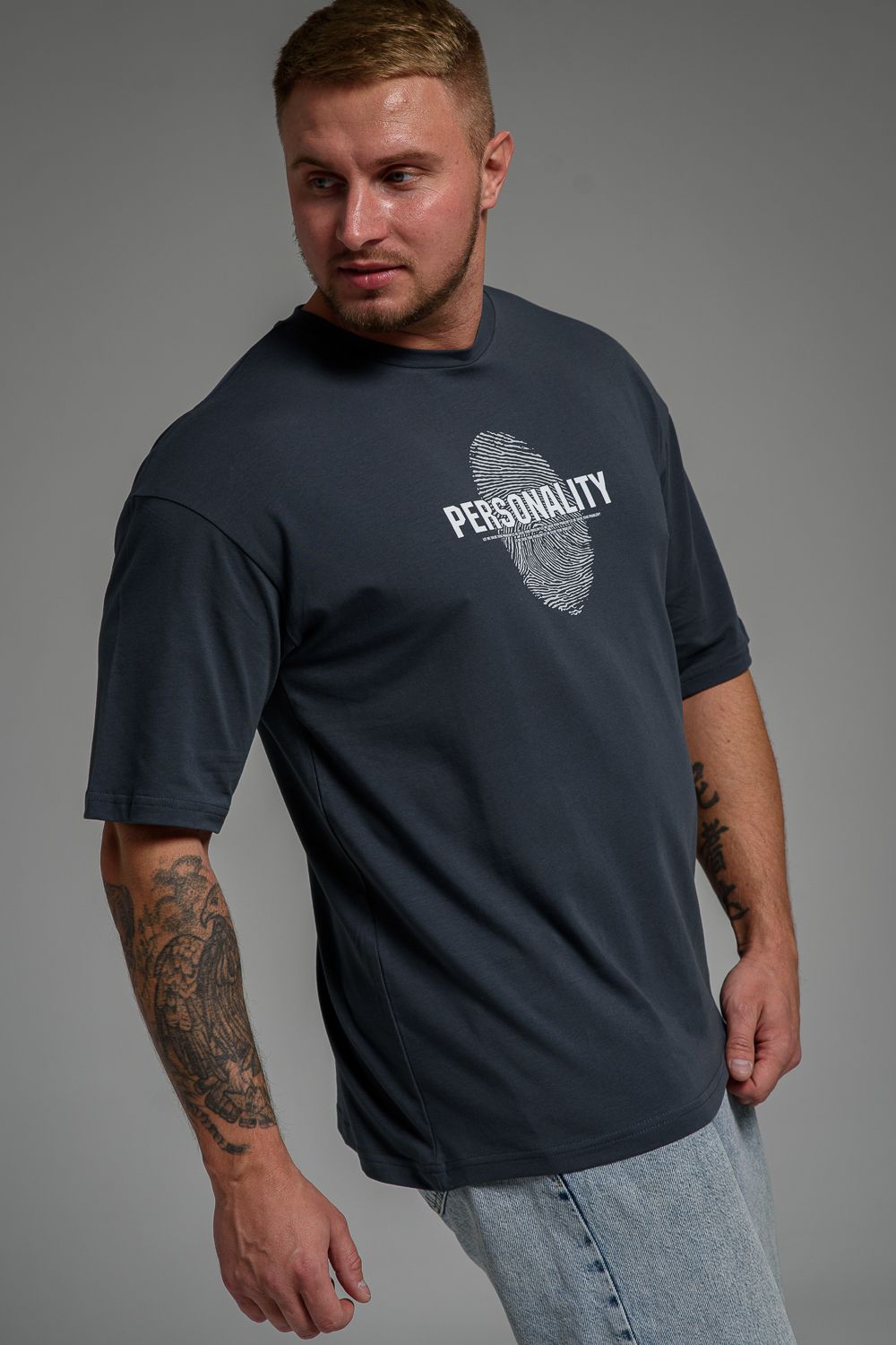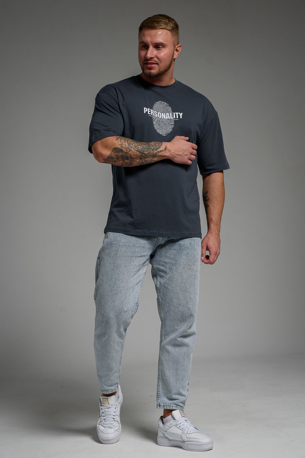 Футболка мужская 8507/1 оверсайз - графит+Отпечаток