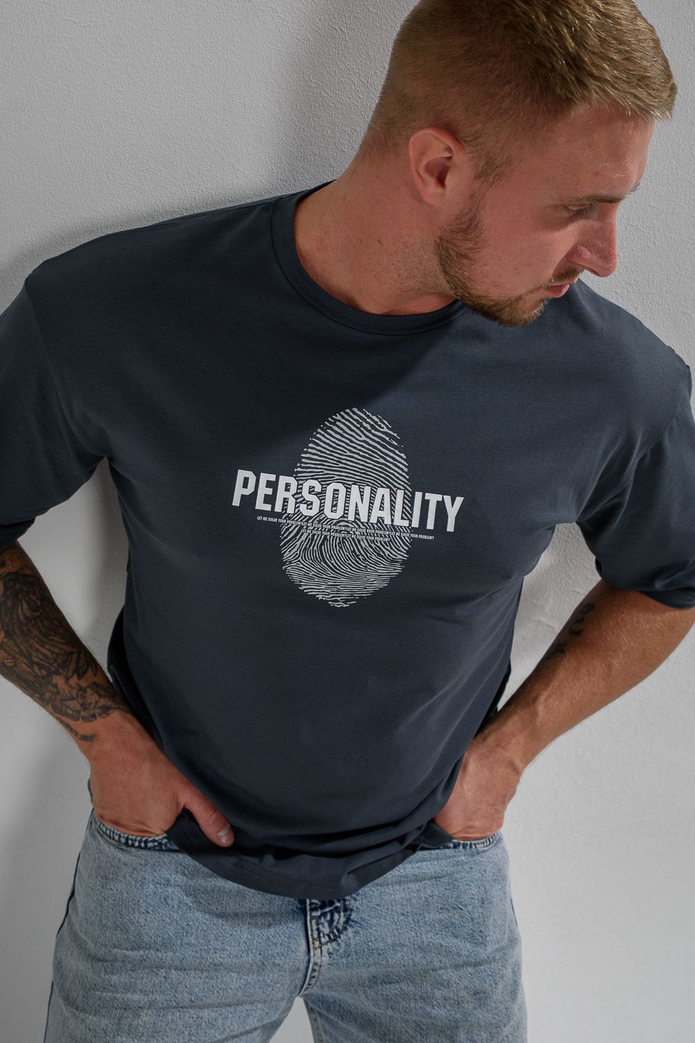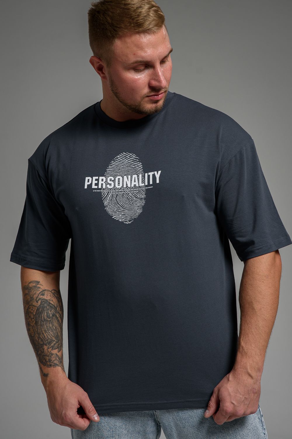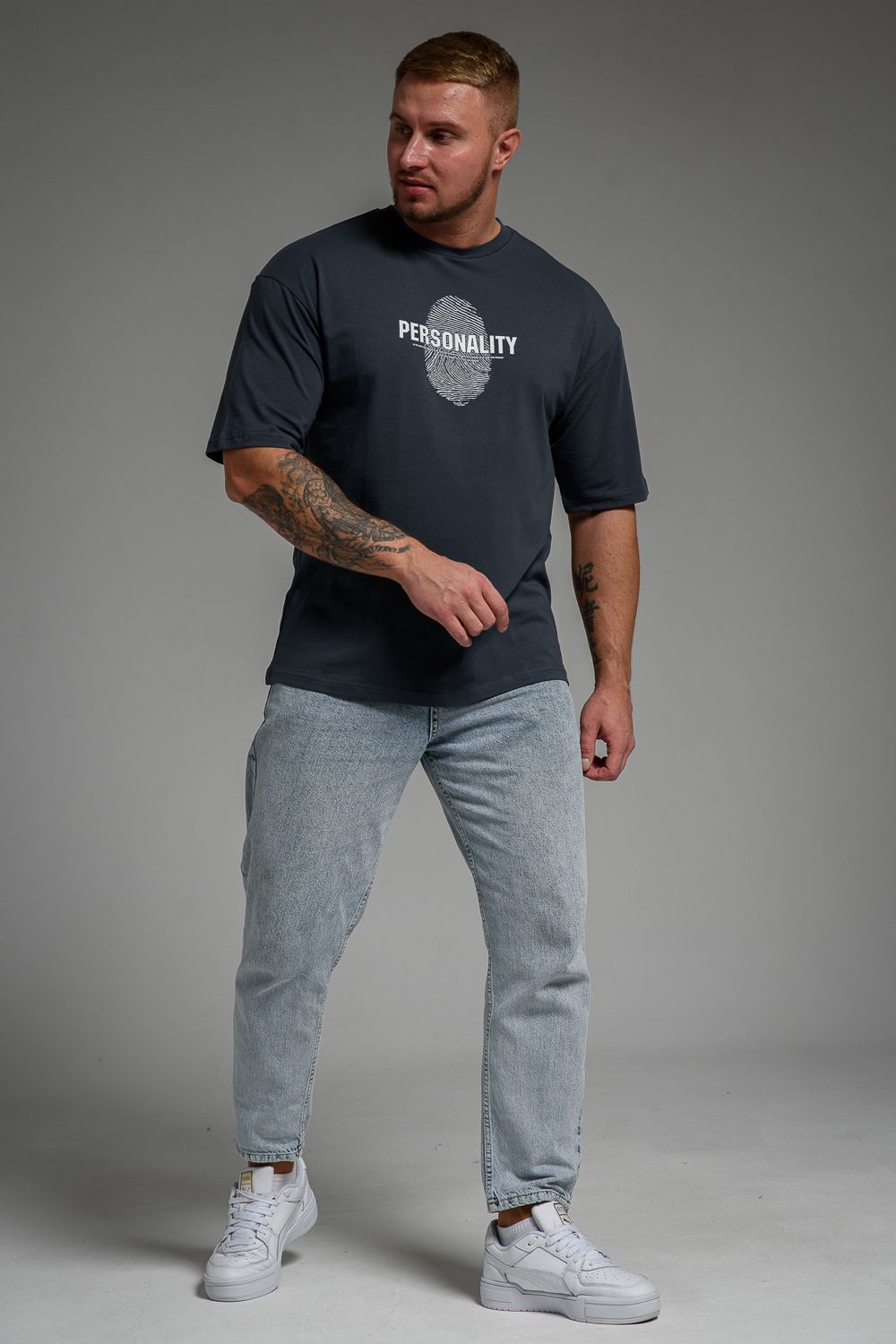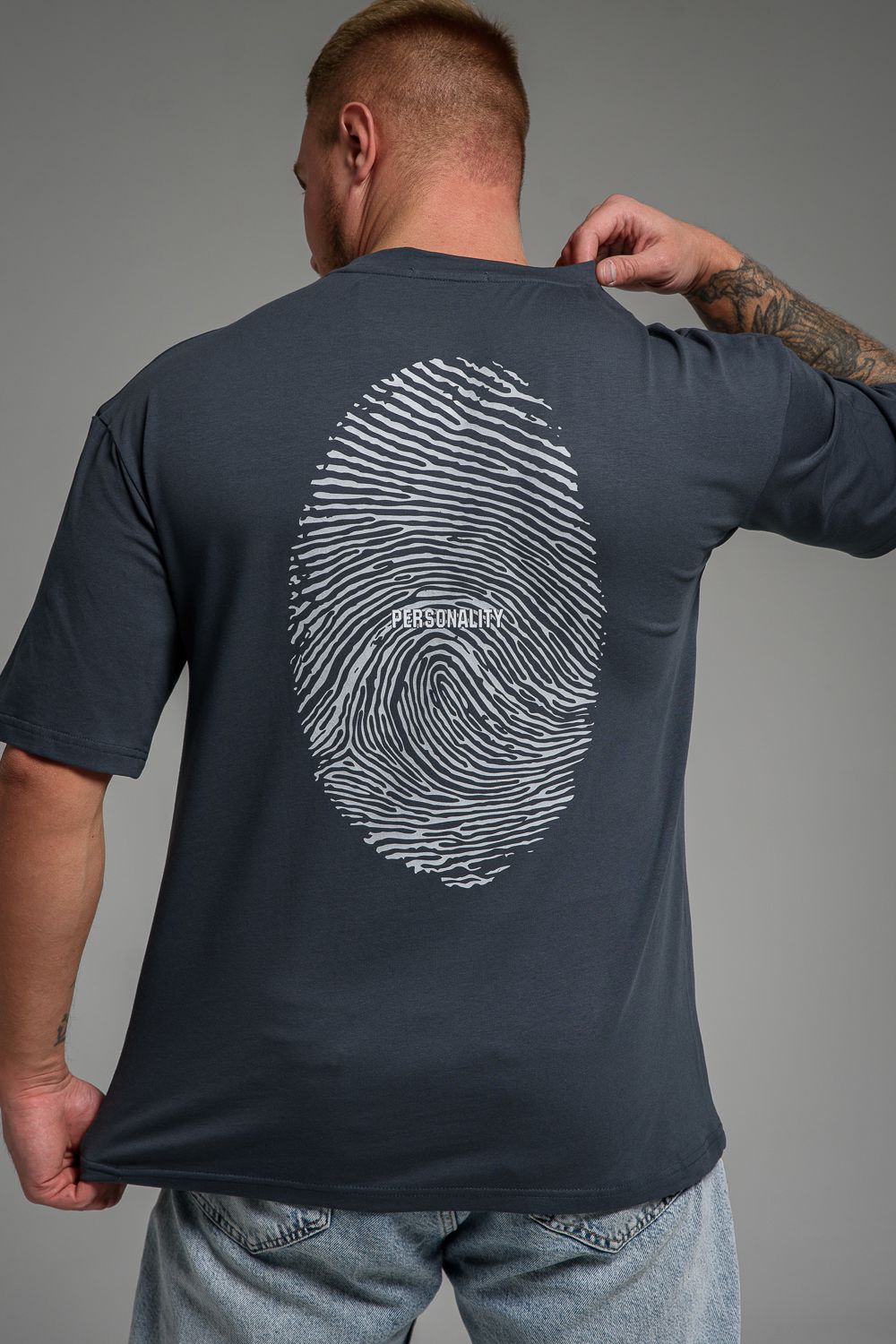 Футболка мужская 8507/1 оверсайз - графит+Отпечаток