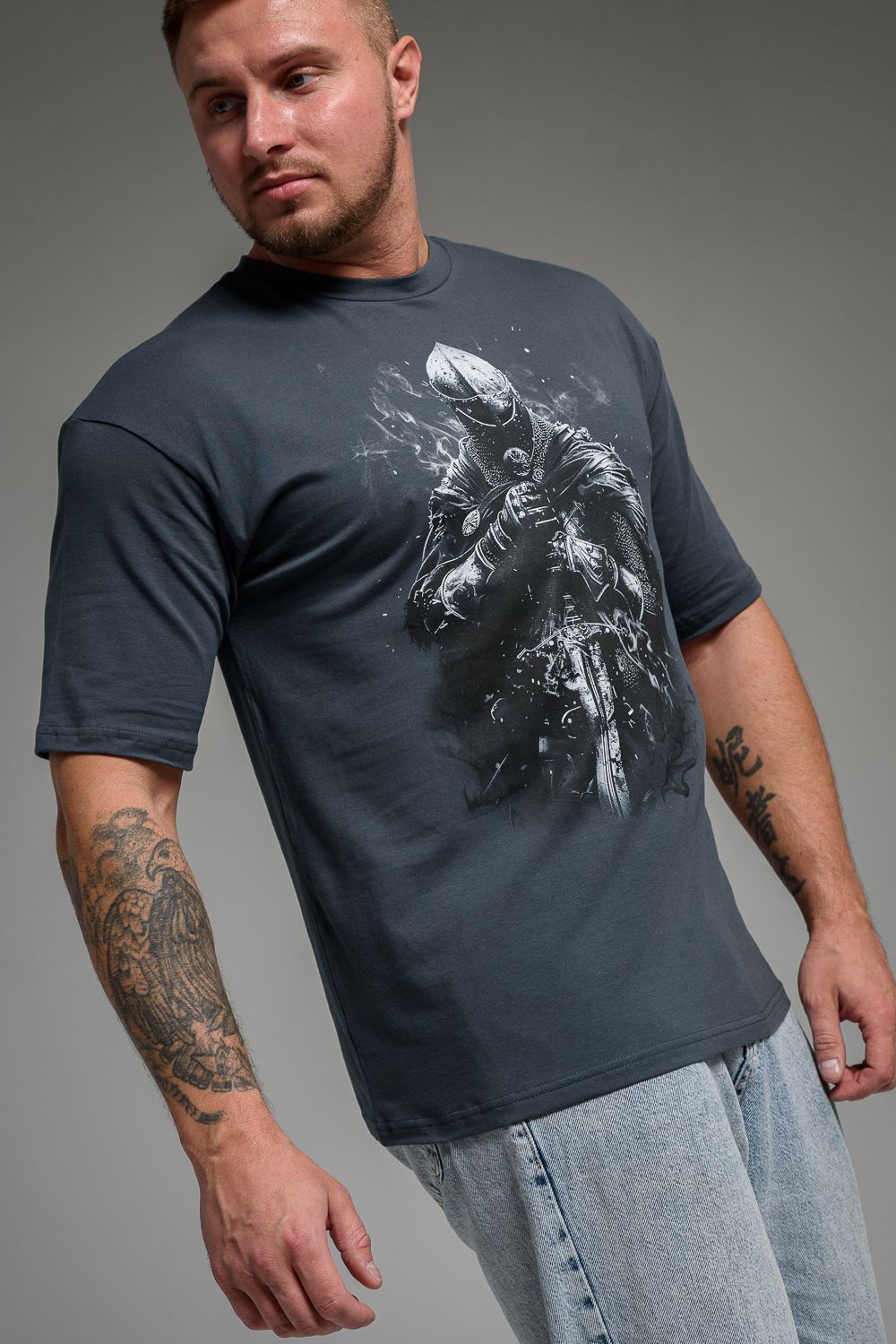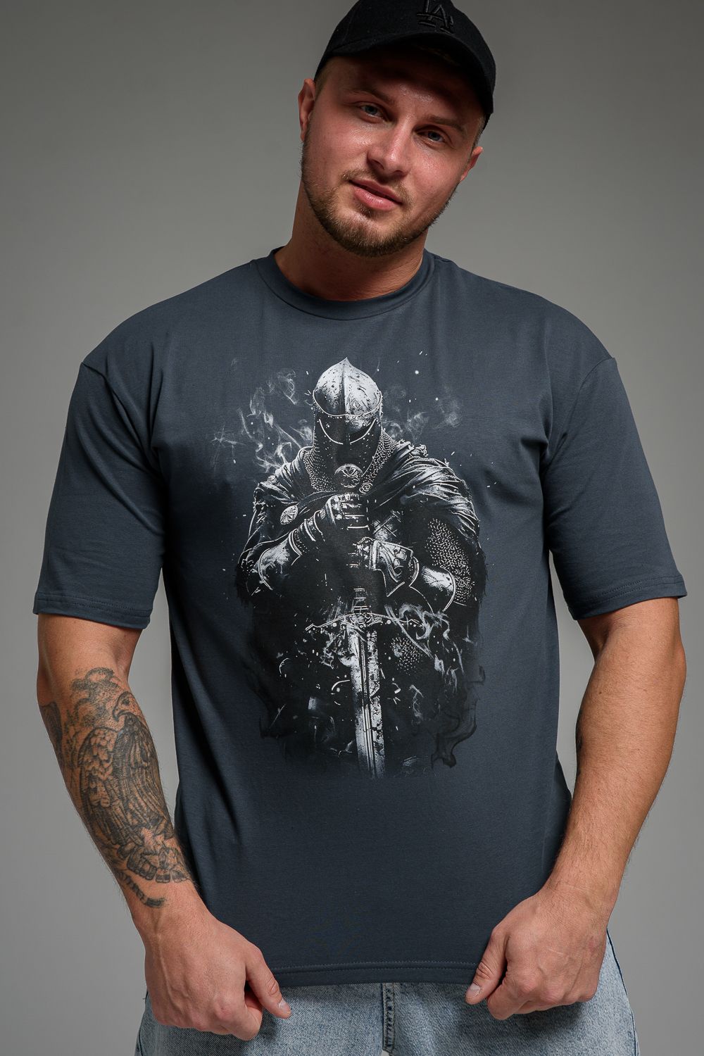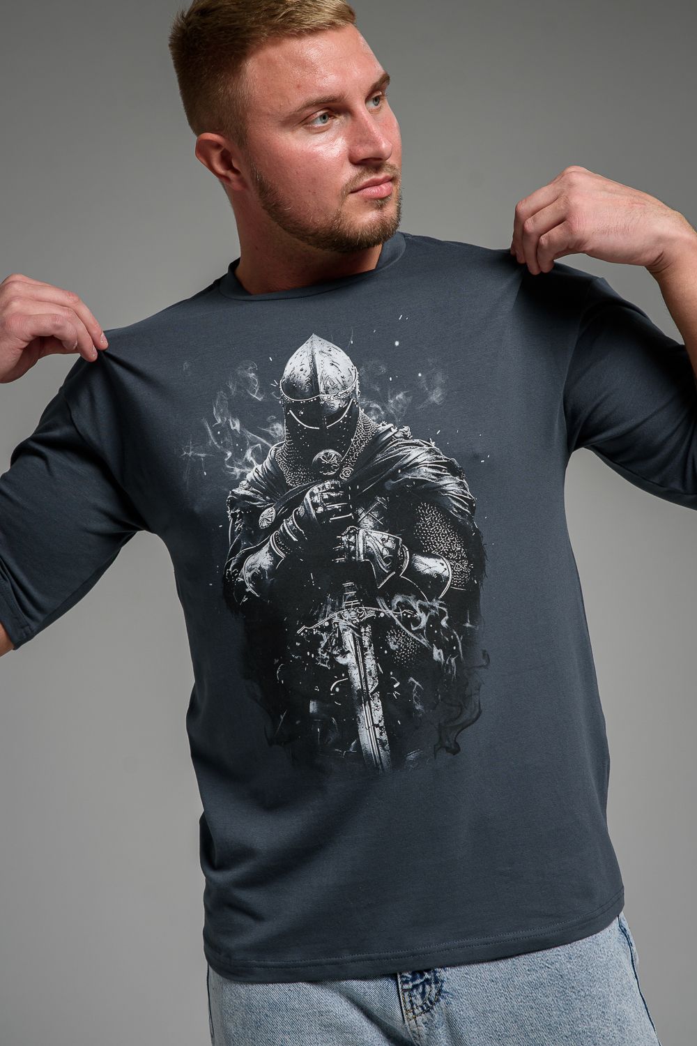 Футболка мужская 8507/1 оверсайз - графит+Рыцарь