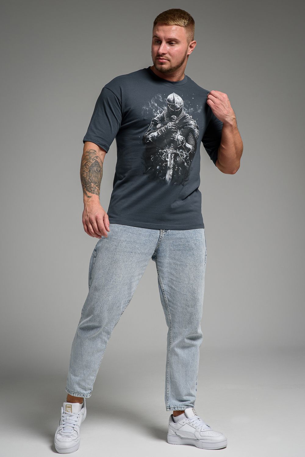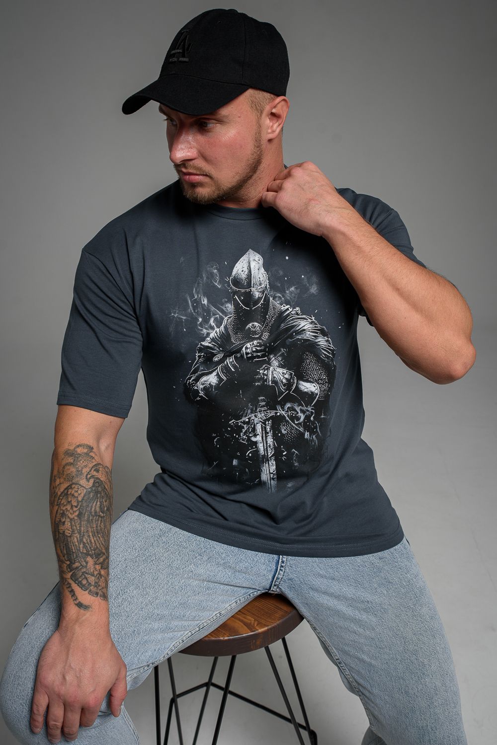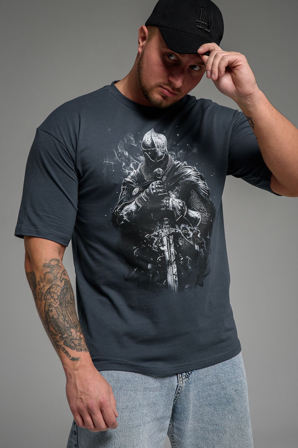 Футболка мужская 8507/1 оверсайз - графит+Рыцарь