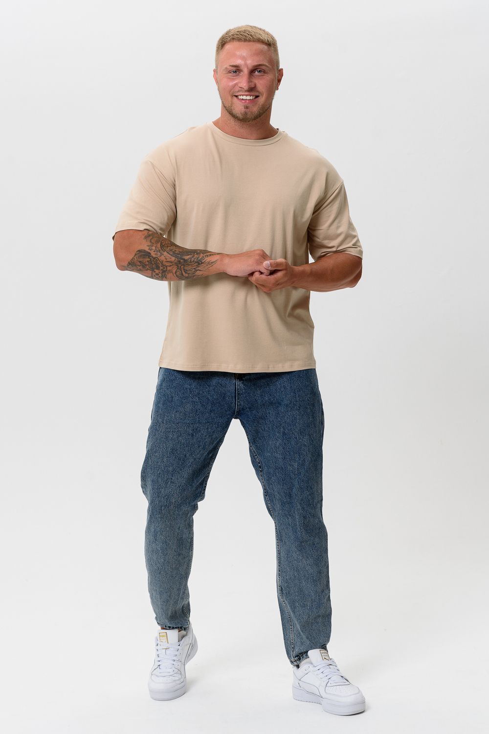 ХИТ сезона весна-лето! Стильная и модная футболка со спущенными плечом для мужчин создана, чтобы вписаться в дух времени. Она представляет собой оверсайз-модель со спущенными рукавами, которые придают ей особый шарм и оригинальность. Футболка подходит как для дома и отдыха, так и для активных тренировок. Высокая плотность 200гр/куб.м., материал кулирка с лайкрой. Широкий размерный ряд до 66 размера.