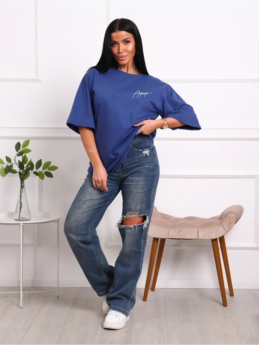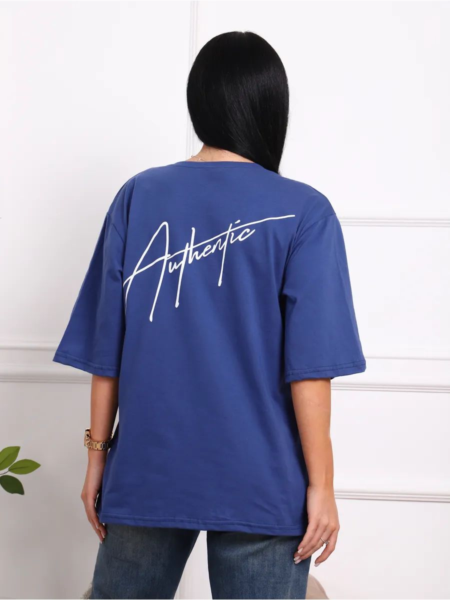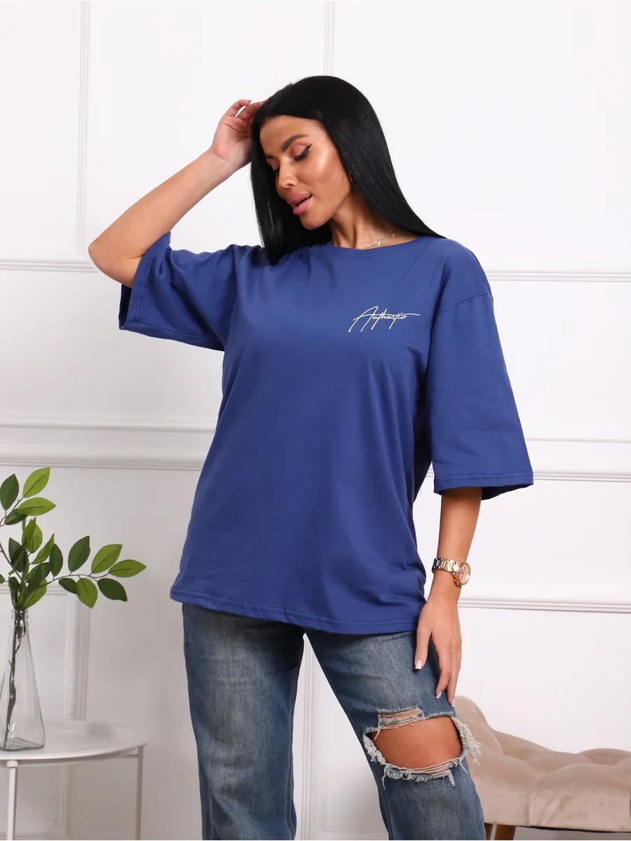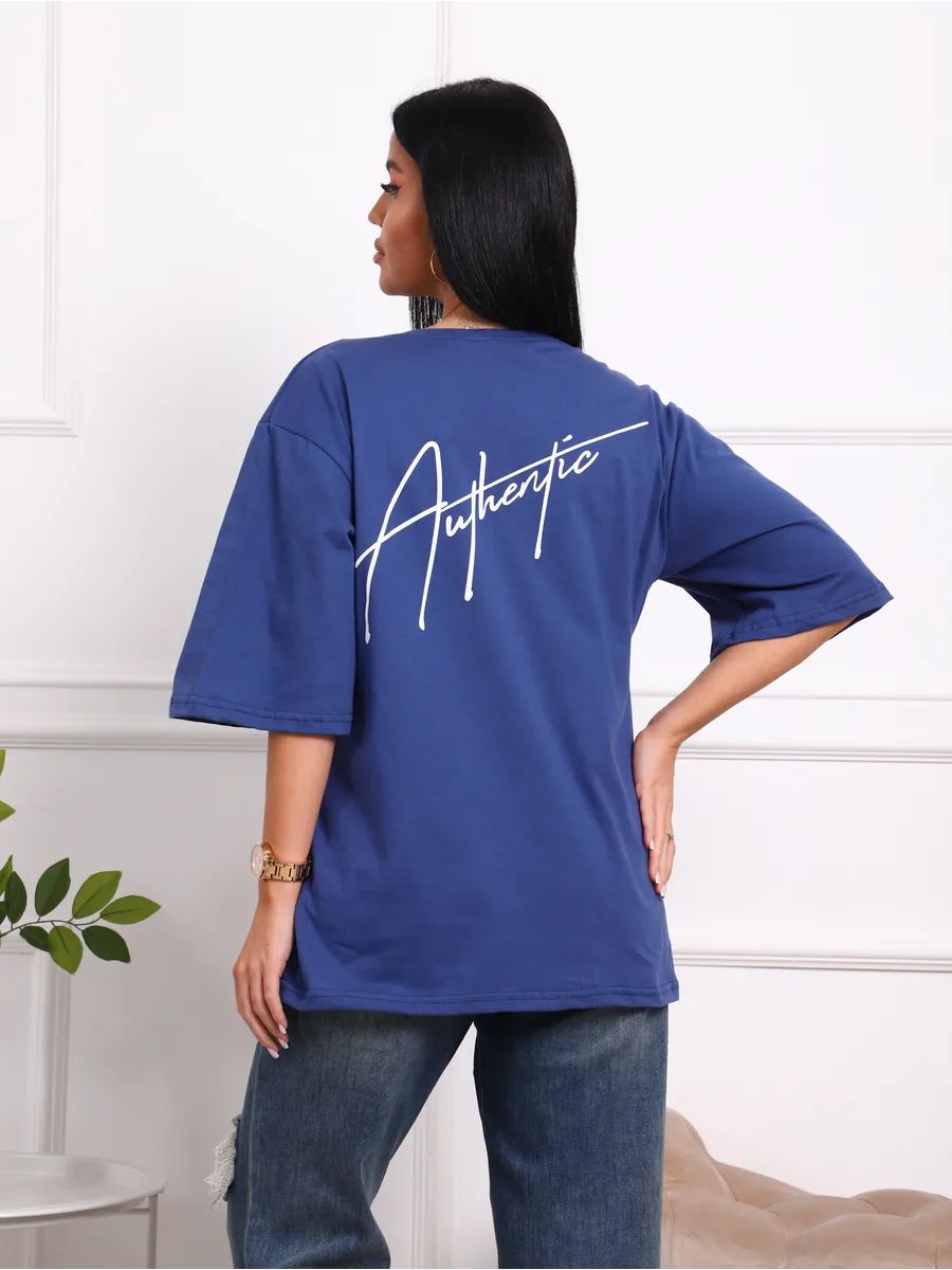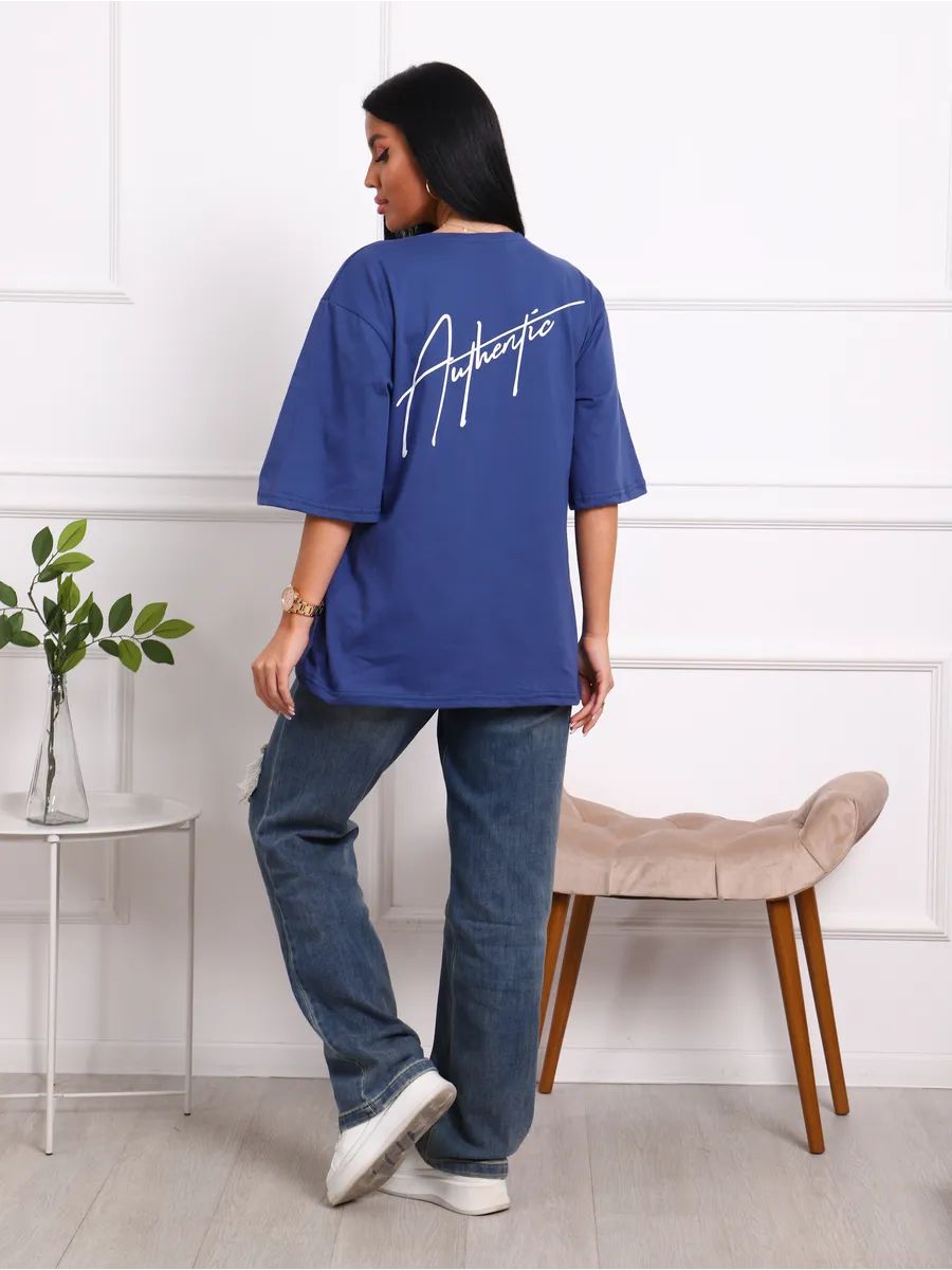 Футболка с надписью на груди и на спине, Арт.813 - индиго