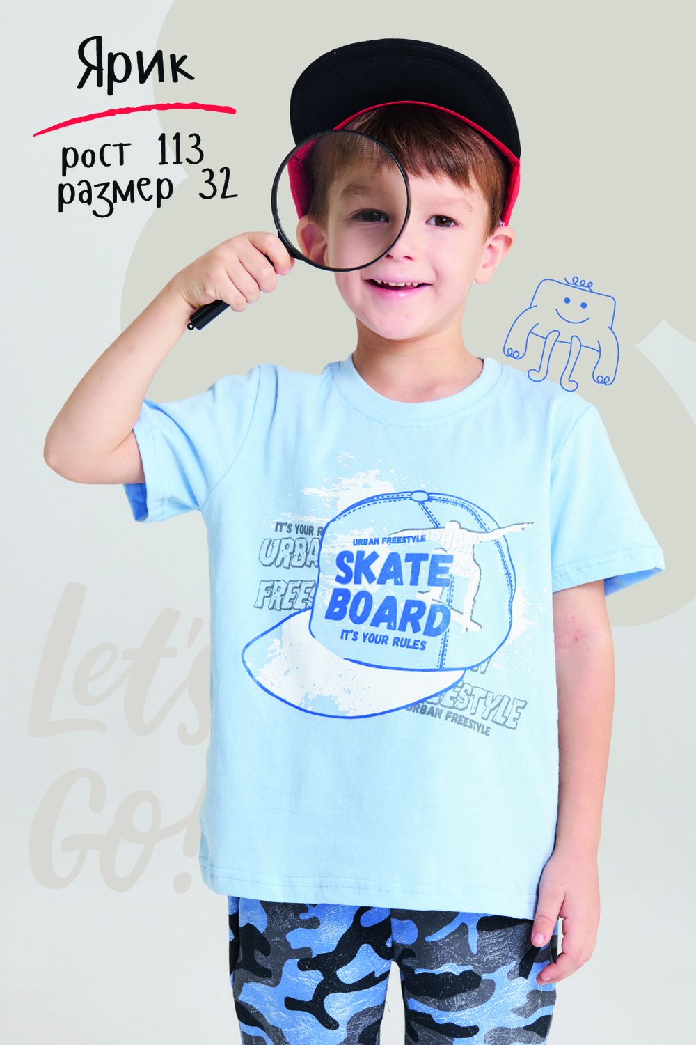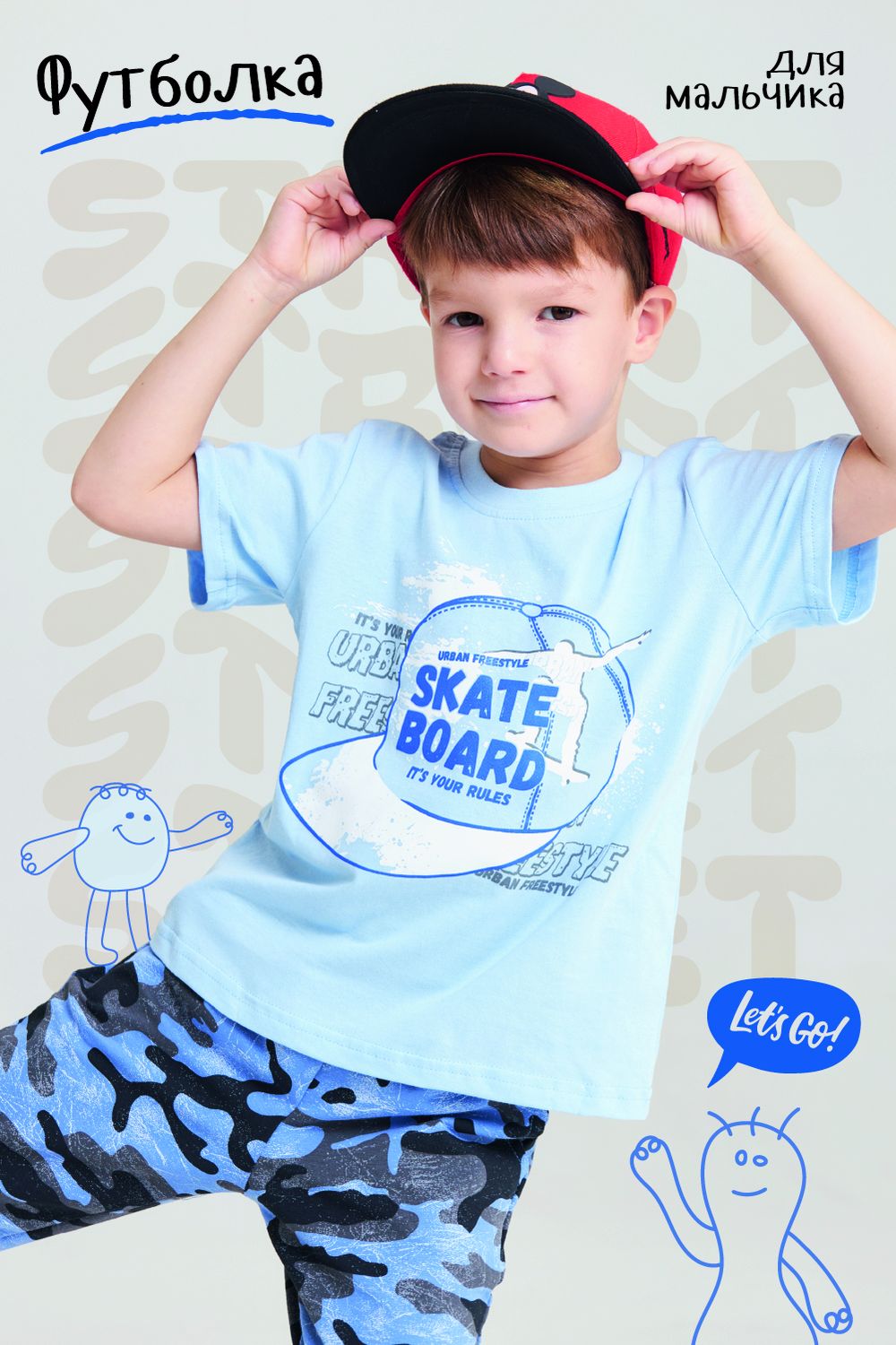 Детская футболка для мальчиков с модным принтом. Стильная расцветка, приятные цвета.