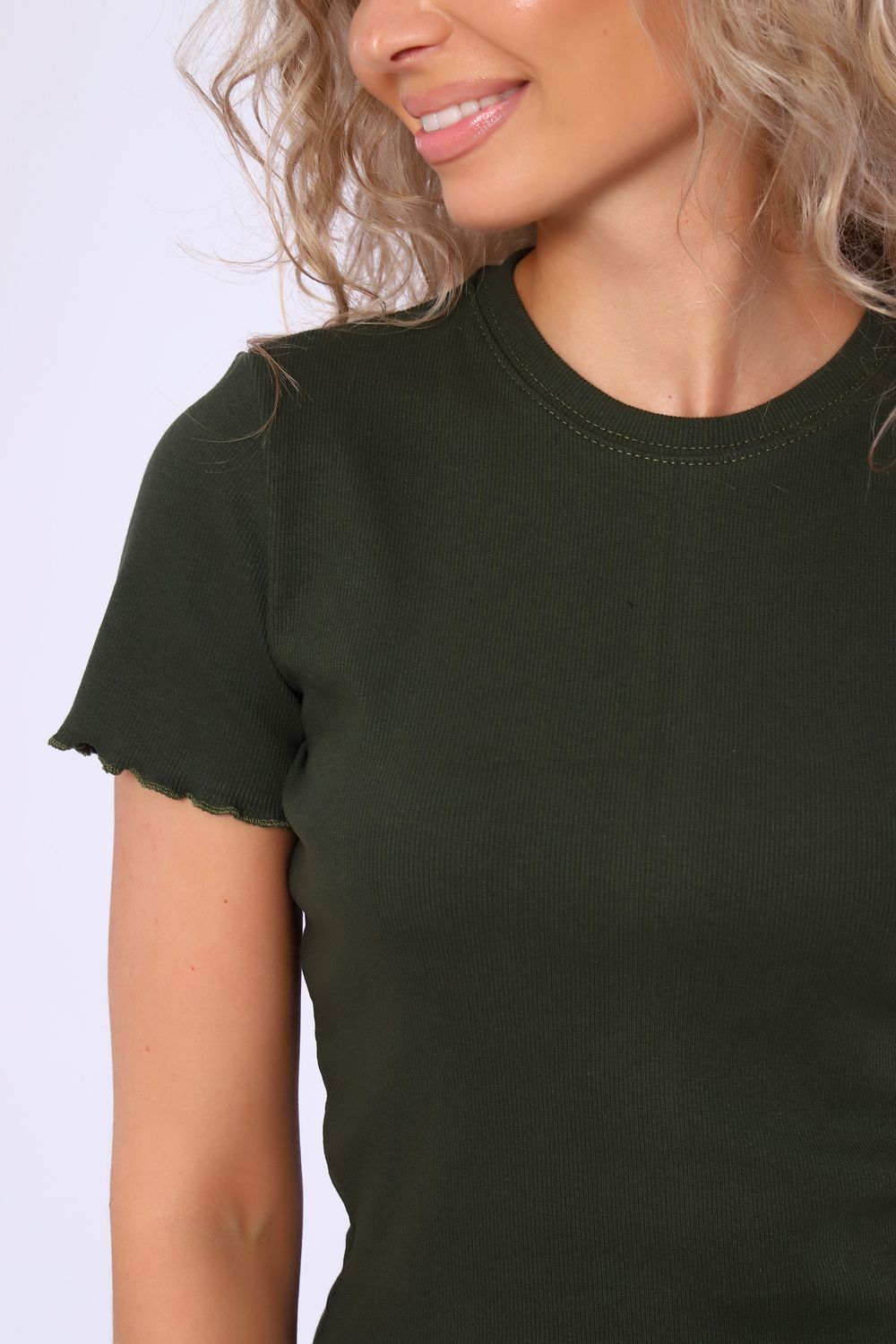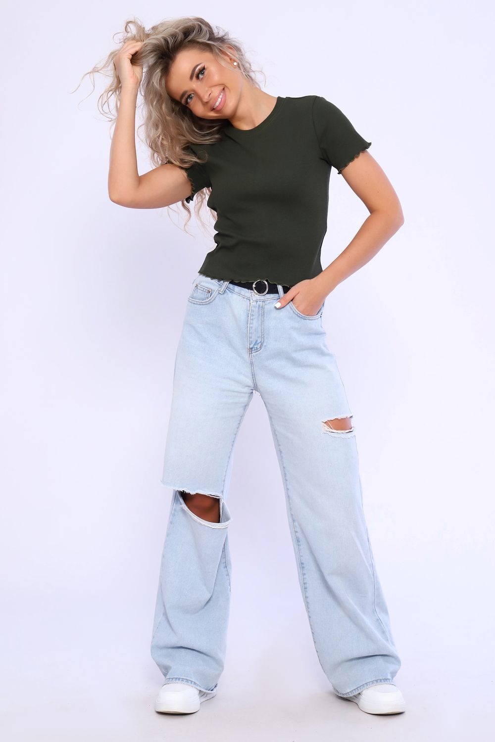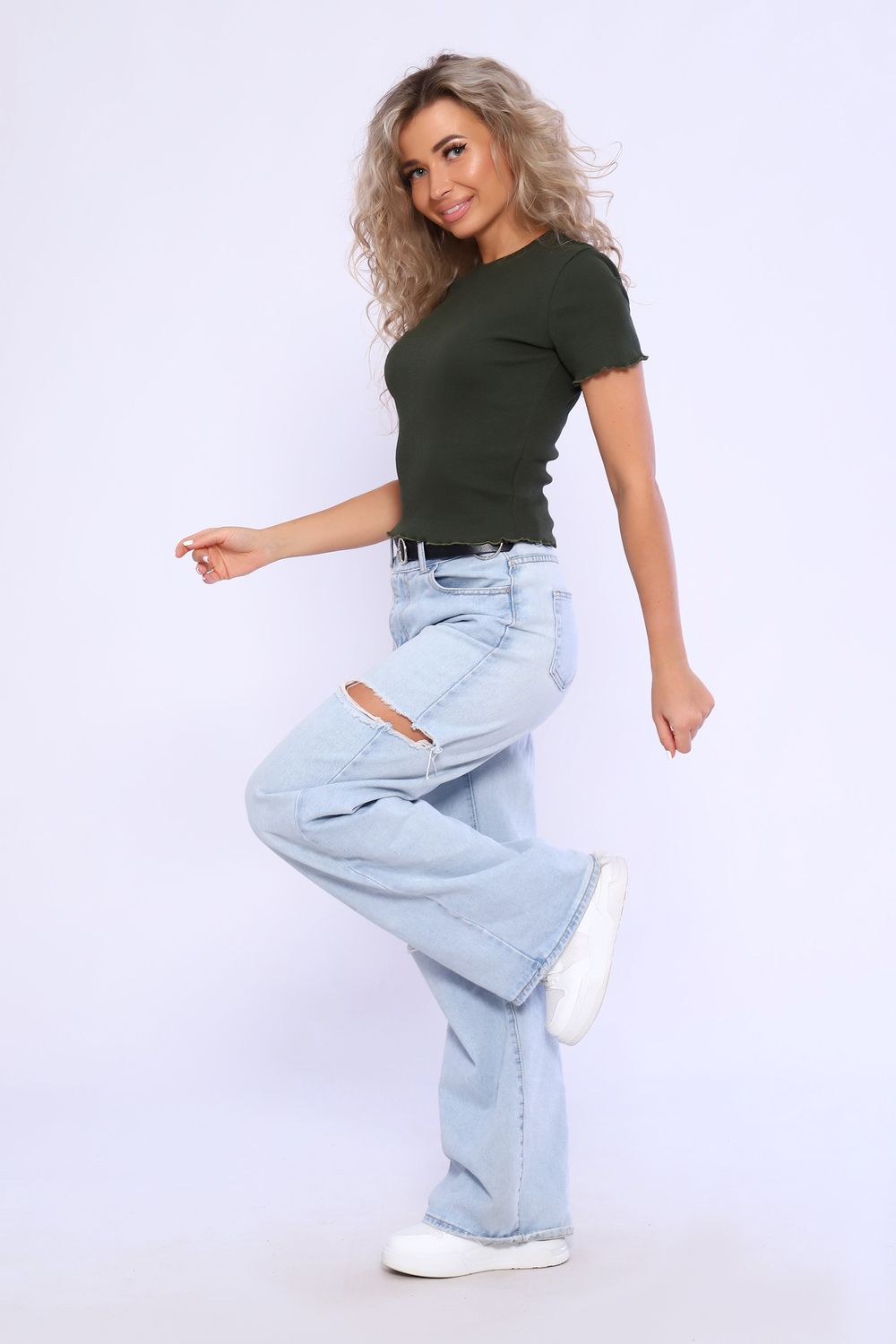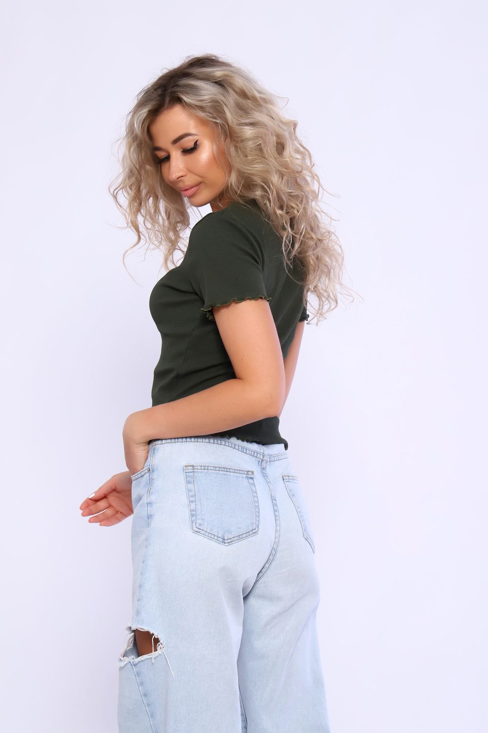 Футболка - топ укороченная молодежная, выполнена из мягкого приятного к телу кашкорсе. Рукав короткий обработан под краевку и так же низ изделия. На модели 46 размер.