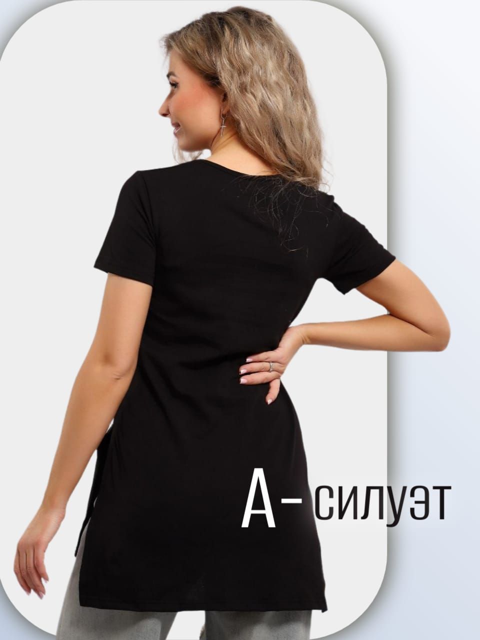 Женская туника с классным принтом станет отличным выбором для повседневного ношения. Изготовленная из мягкого трикотажа, она обеспечивает комфорт в течение всего дня. Легкий хлопок позволяет коже дышать, а удлиненная модель с длинной спинкой и разрезами по бокам делает её стильной и практичной. Однотонная черная основа легко комбинируется с различными аксессуарами и обувью, что позволяет создать разнообразные образы, в том числе спортивные. Эта домашняя одежда подходит не только для расслабленных вечеров, но и для прогулок в теплую летнюю погоду. Удобный крой подчеркивает фигуру, а длина туники позволяет скрыть недостатки. Размеры подходят для женщин больших размеров, что делает её универсальным элементом гардероба. Привнесите немного свежести в свой стиль с этой красивой туникой, которая будет радовать вас каждый день.