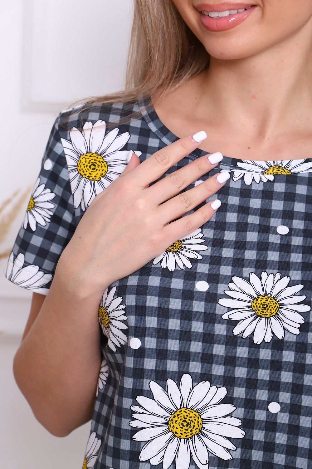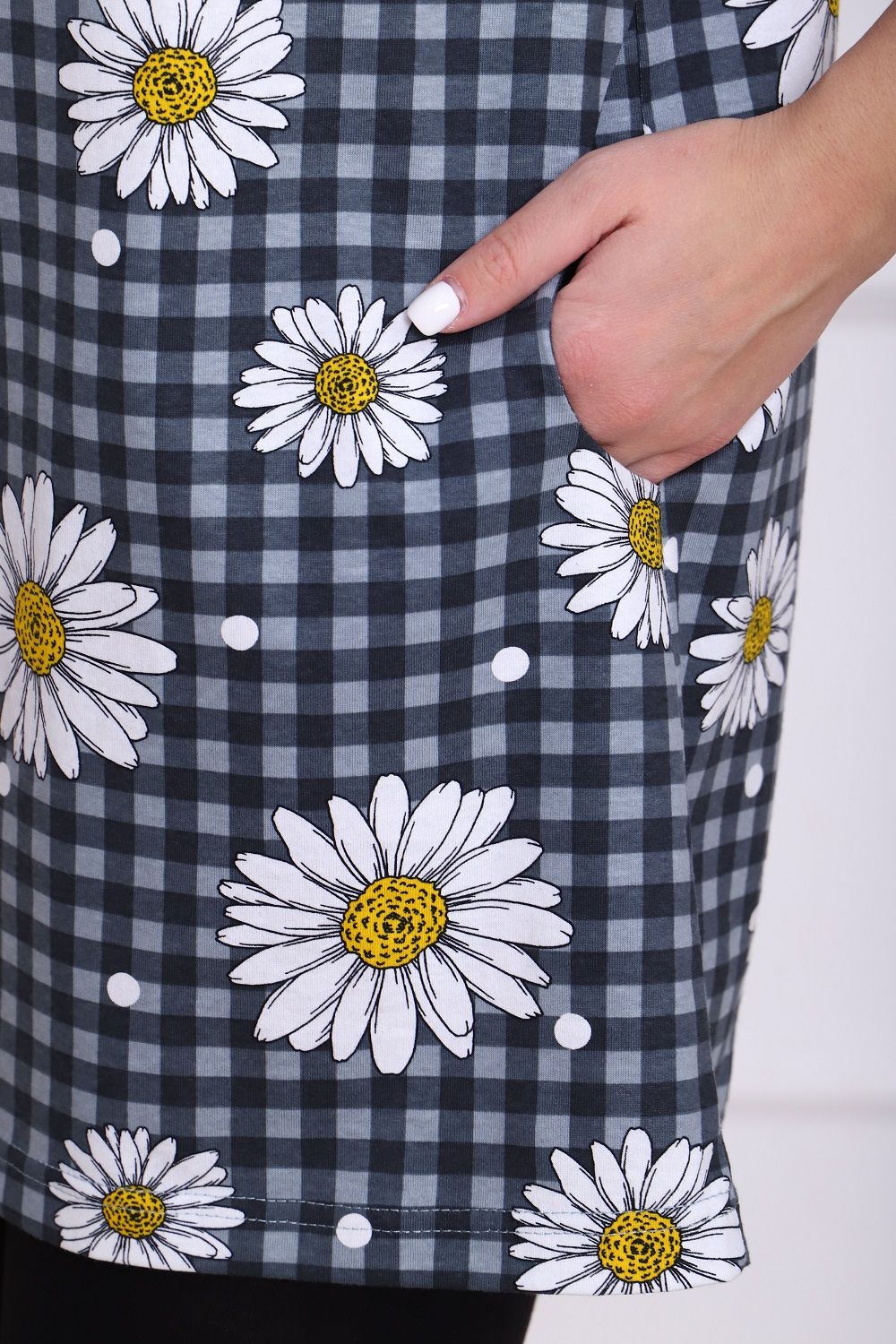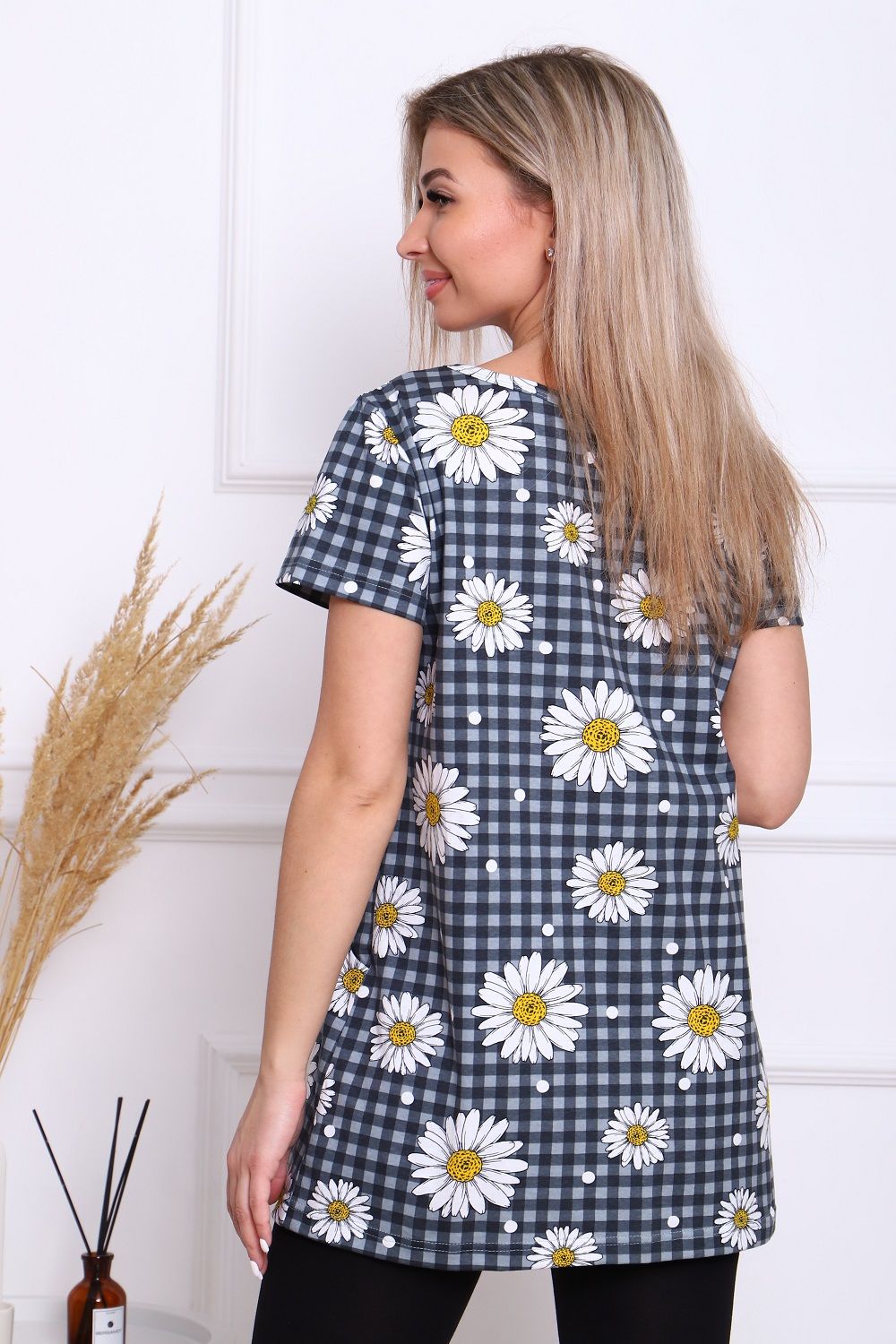 Костюм женский Дачник-3 "Ромашки", 100% хлопок - дышащий, комфортный: туника с коротким рукавом и карманами в боковых швах и легинсы.