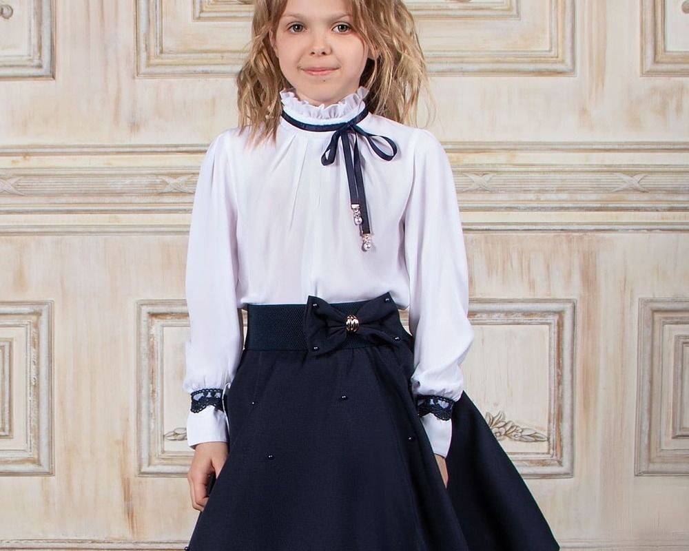 Блузка подростковая школьная с пышными рукавами, воротником стойкой и кружевным декором. Блуза для девочки подростка имеет дополнительный слой из подкладочной ткани спереди, что делает ее непрозрачной и более комфортной в носке. Благодаря свободному крою кофточка хорошо подходит для худых и для полных девочек. Нарядная блузка - отличный вариант для школы, и торжественных мероприятий: 1 сентября, линейка, выпускной, 8 марта. День рождения; подойдёт к школьному сарафану, юбкам любого фасона, брюкам, кюлотам, палаццо, к юбке - шортам. Детская блузка выполнена из мягкой дышащей вискозы, с добавлением нейлона и спандекса. Такая одежда отлично держит форму, не садится, не образует катышек на поверхности, имеет эффектный внешний вид. Желательно стирать кофту в режиме бережной стирки при 30 градусах. Не рекомендуется использовать сильные моющие или отбеливающие средства. Нет необходимость гладить блузку - достаточно встряхнуть после стирки и высушить на плечиках. Модель представлена в нескольких цветовых решениях: белый, голубой, синий, кремовый или ванильный и розовый. Станет приятным и неожиданным подарком дочке, внучке, племяннице.
