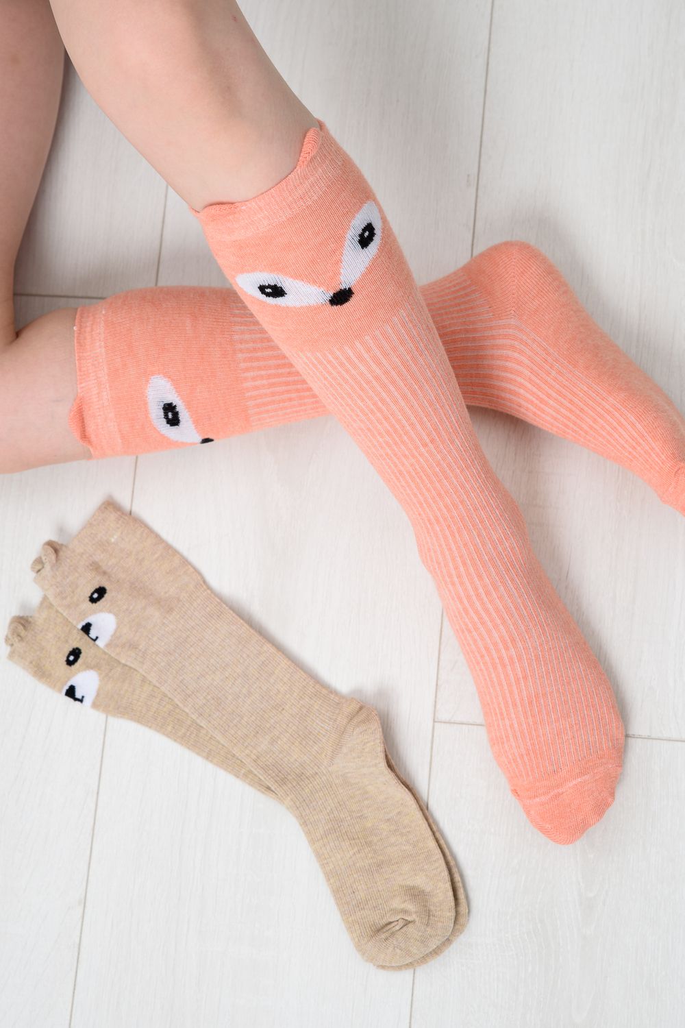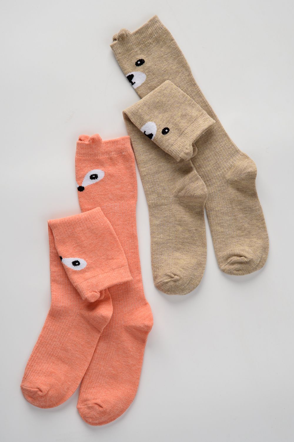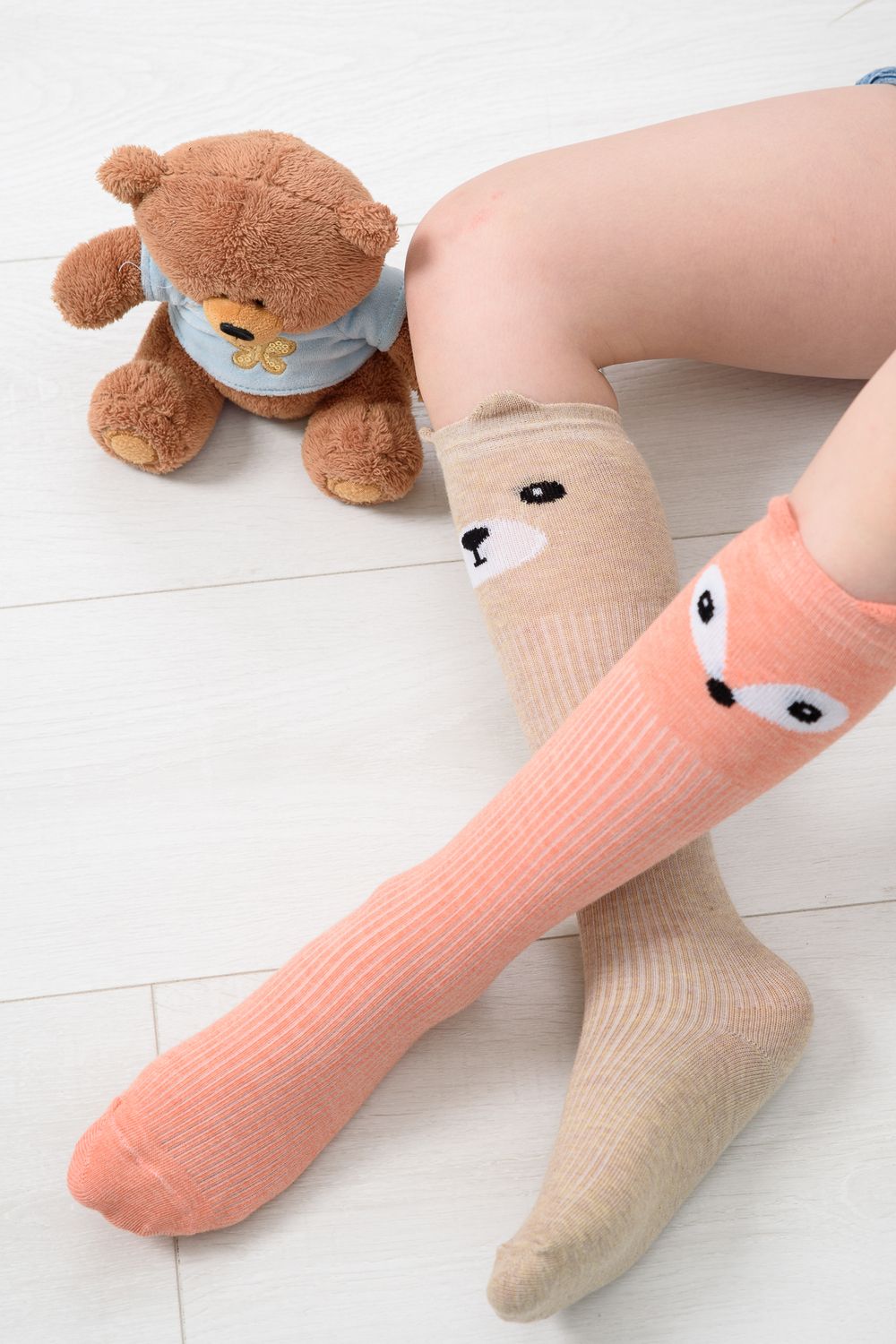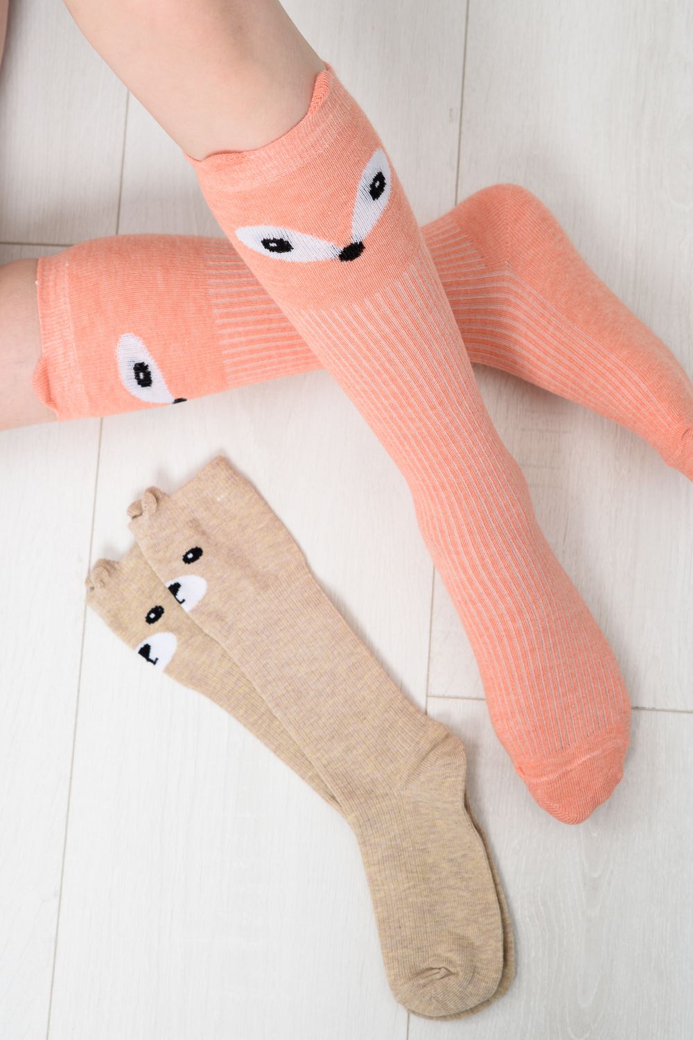 Гольфы детские Мишка и лиса (набор 2 пары) - бежевый, персик