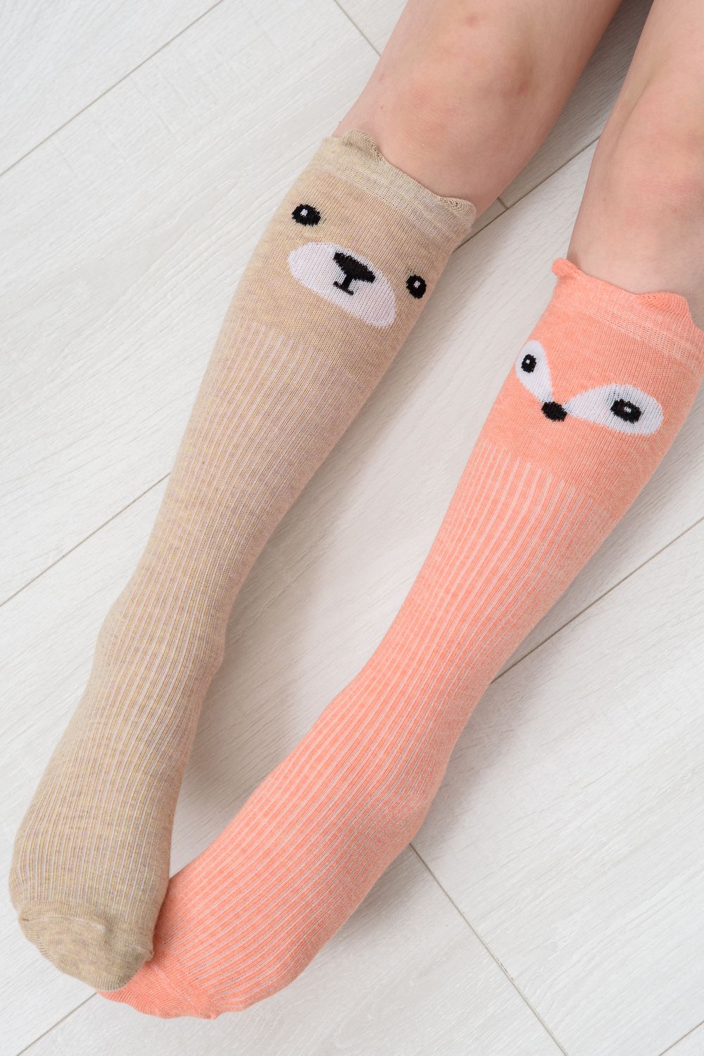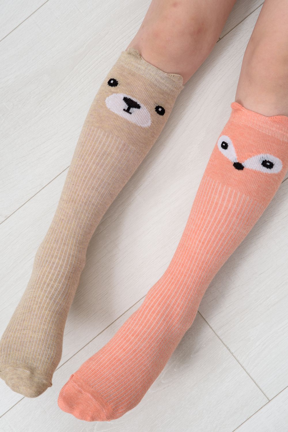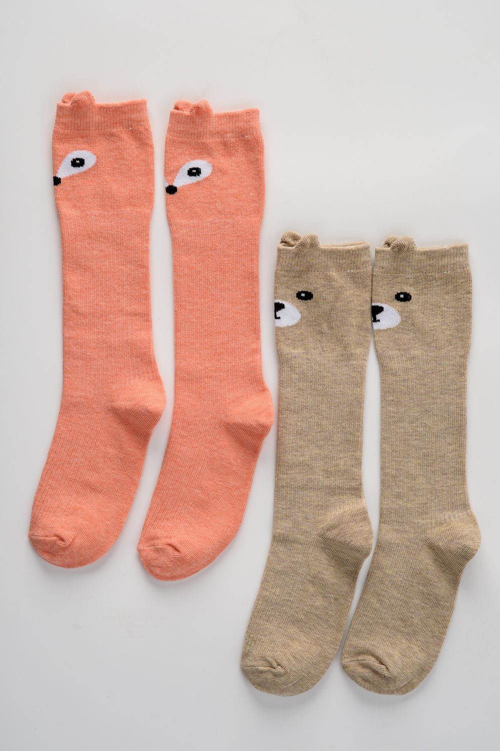 Гольфы детские Мишка и лиса (набор 2 пары) - бежевый, персик