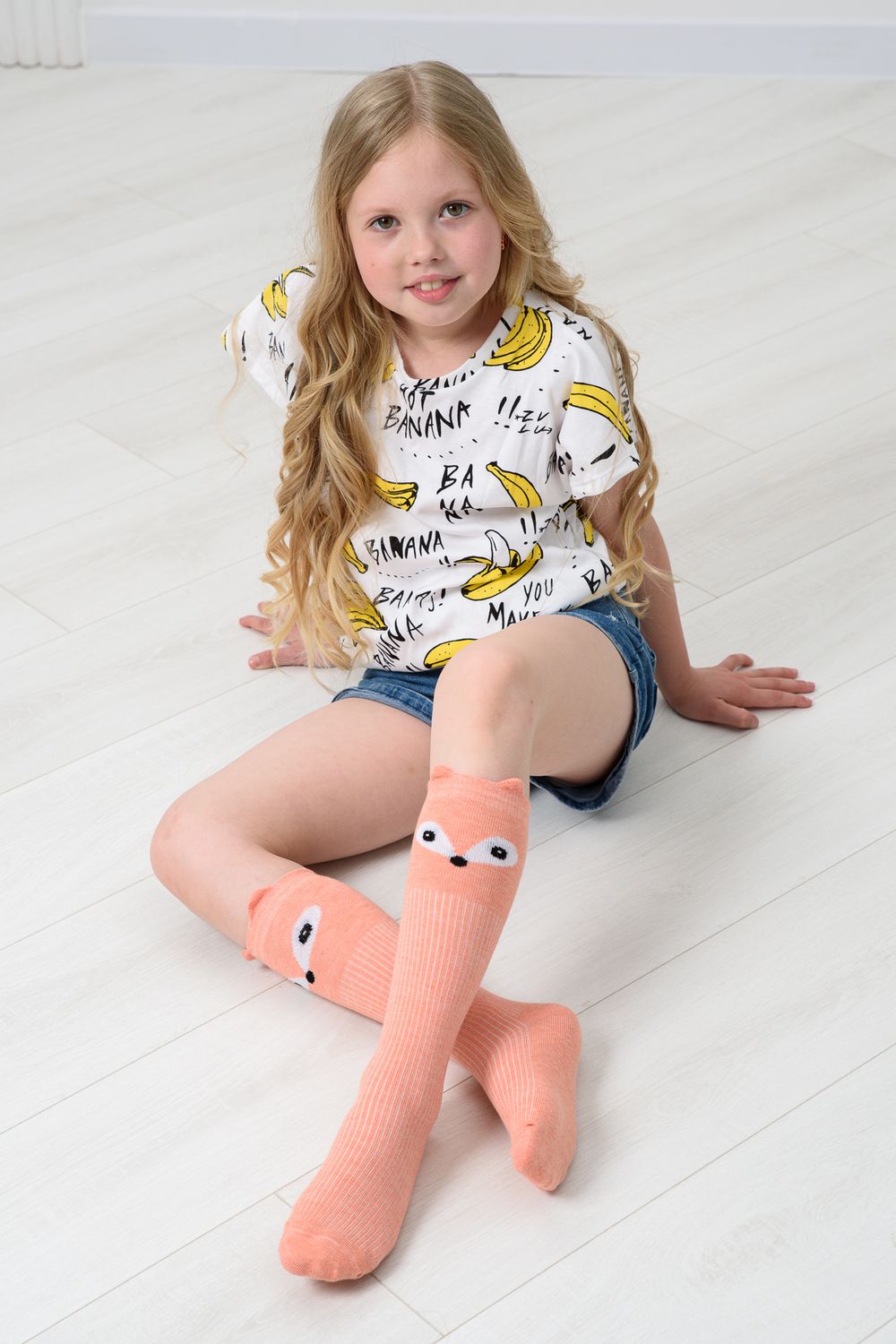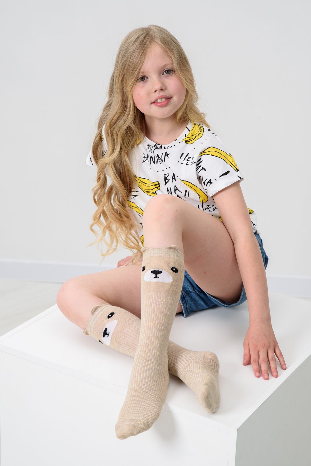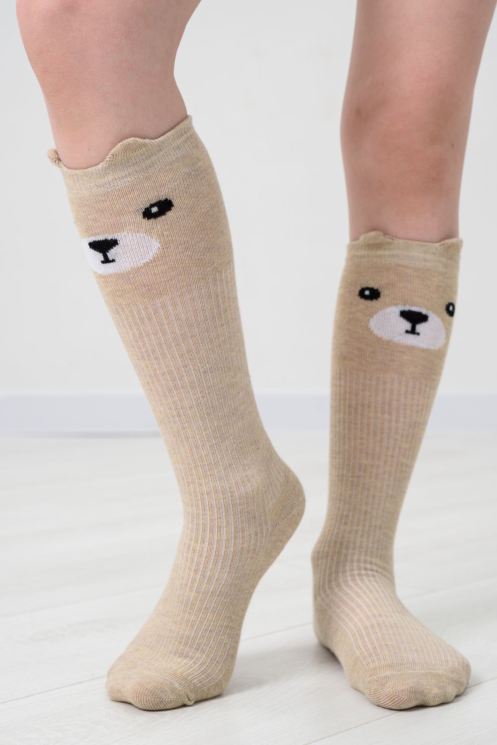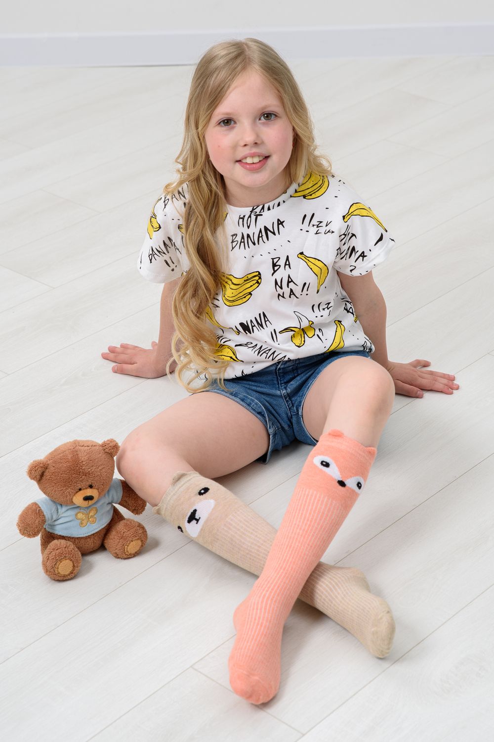 Гольфы детские Мишка и лиса (набор 2 пары) - бежевый, персик
