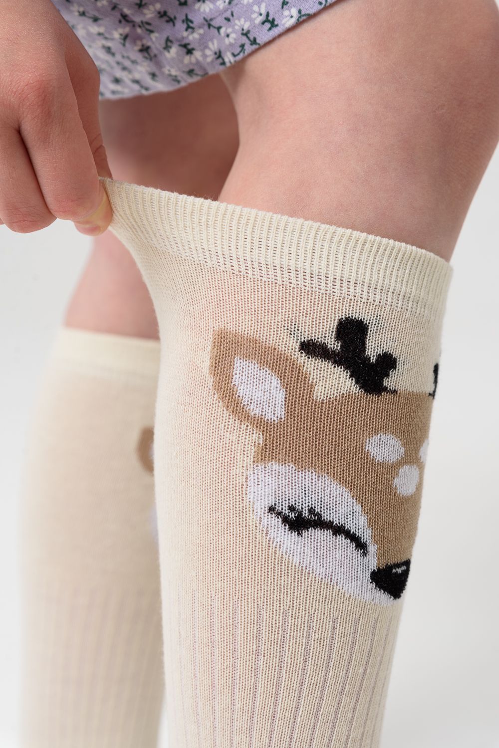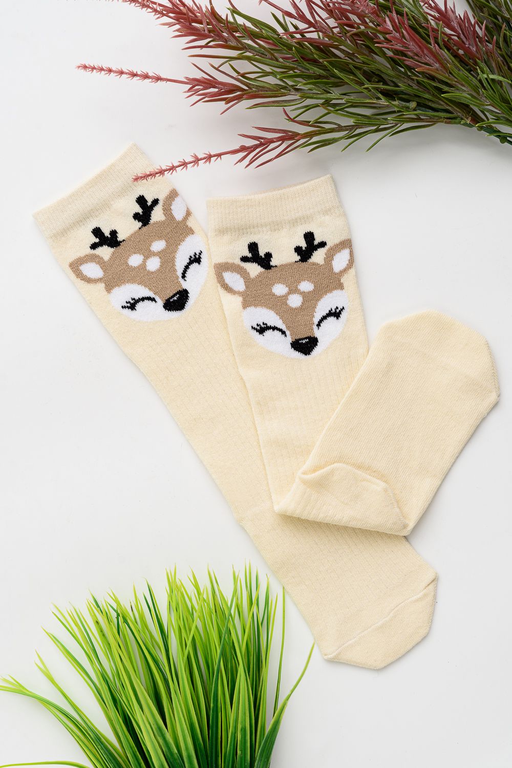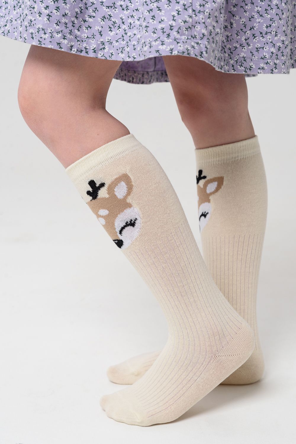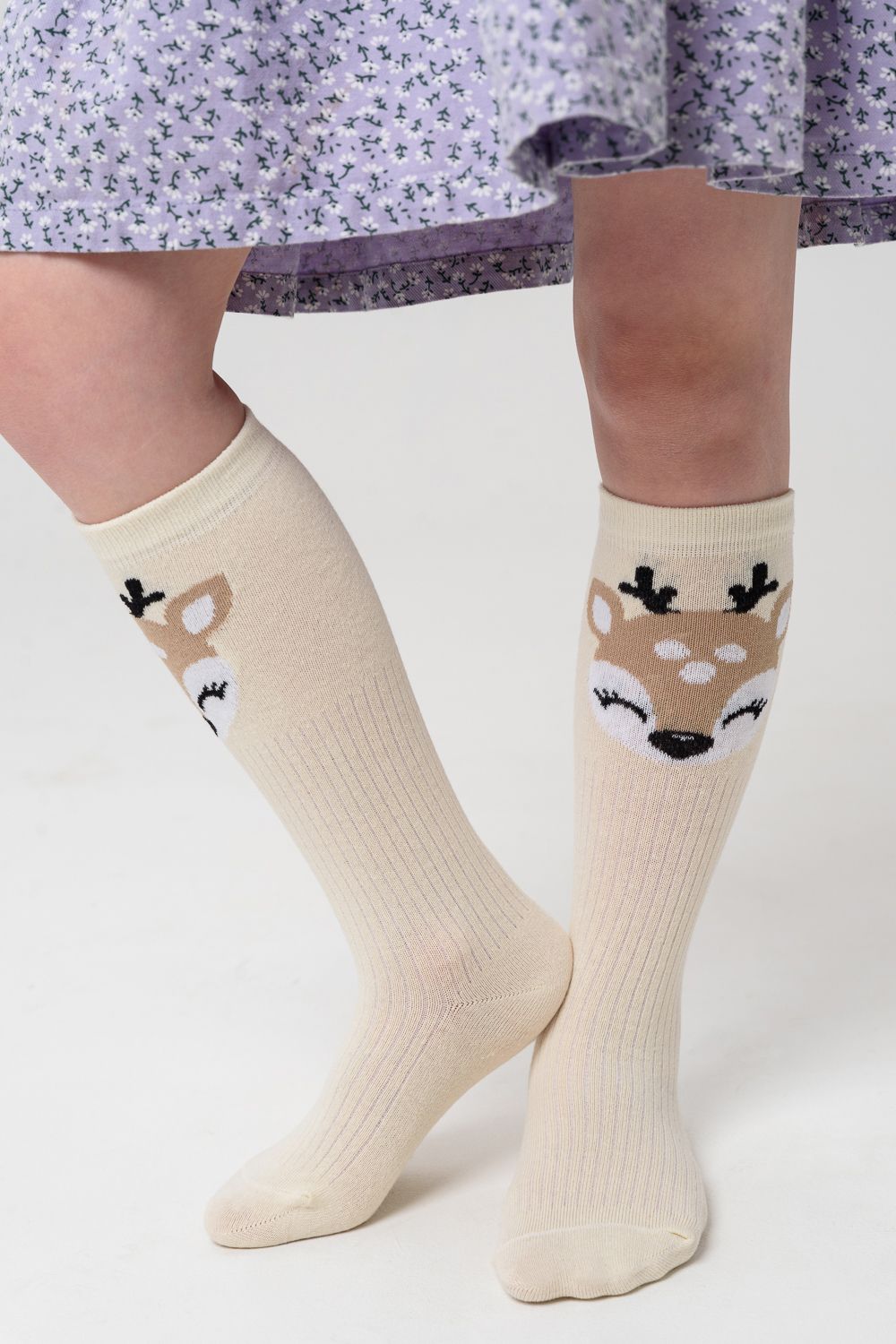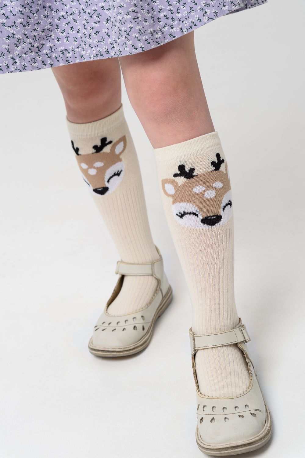 Детские гольфы для девочек с изображением маленького олененка. Отлично подойдут для прогулки и в детский садик. В комплекте 1 пара. с