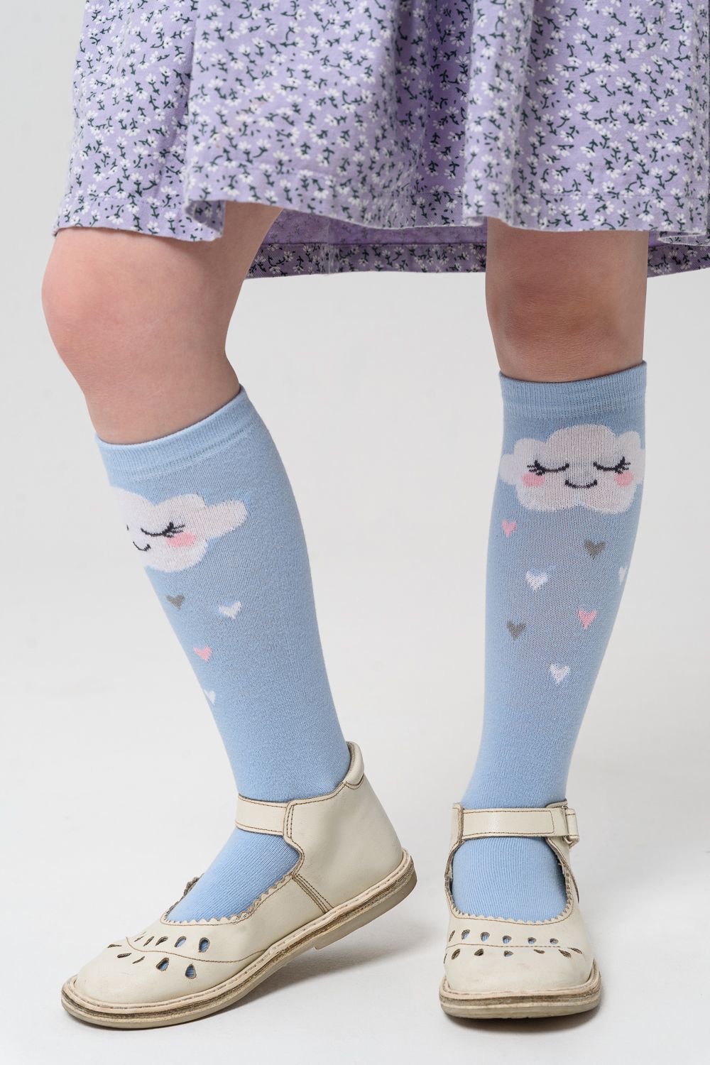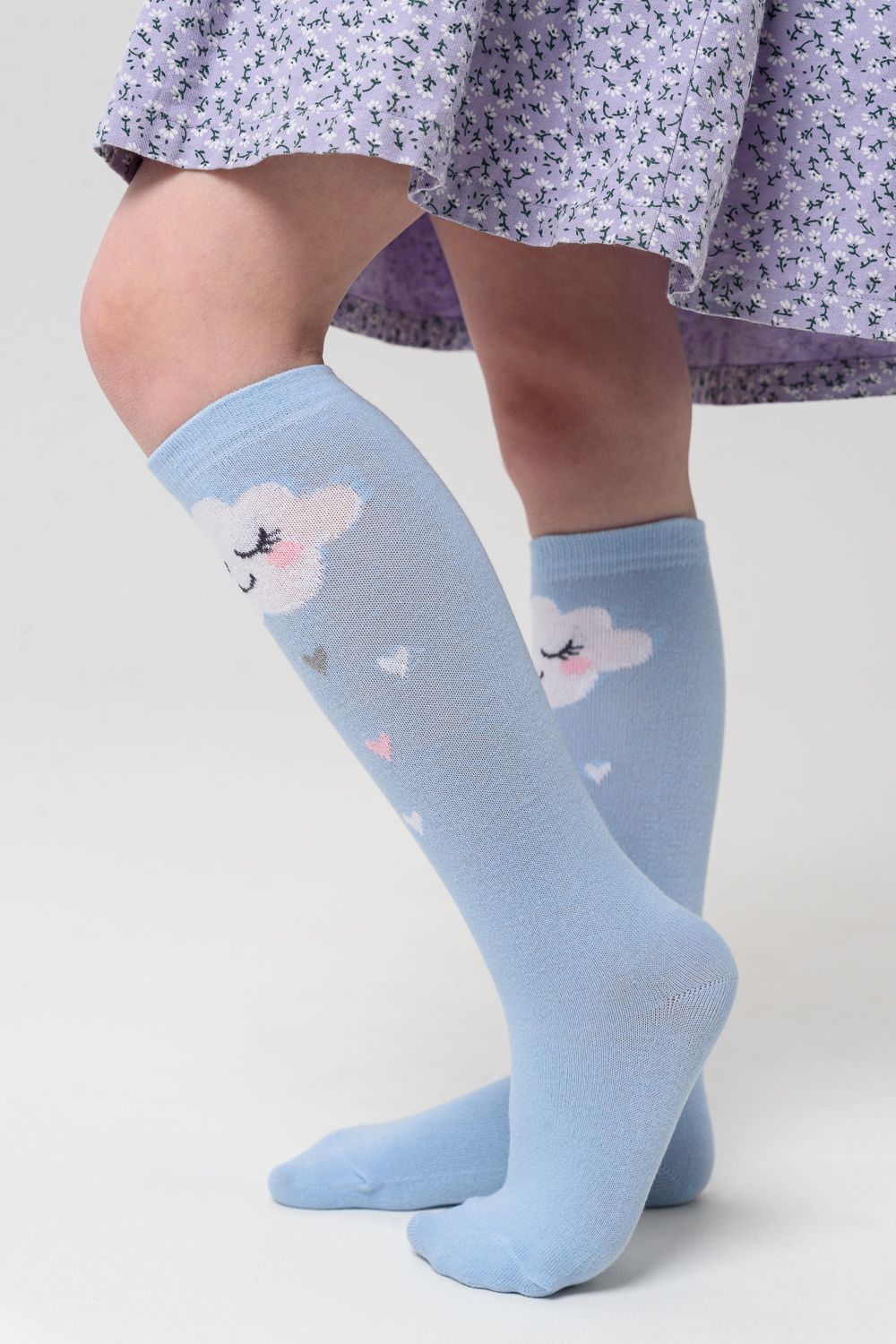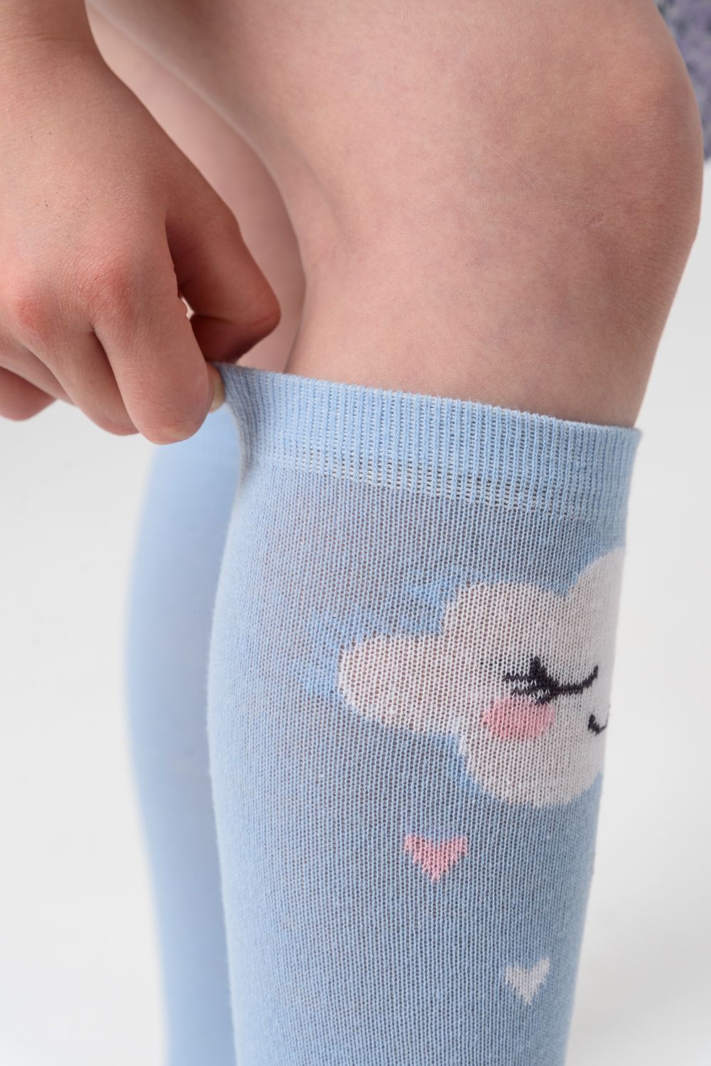 Детские гольфы для девочек с изображением 2 пары, в наборе пара со "звёздочкой" и пара с "облачком"