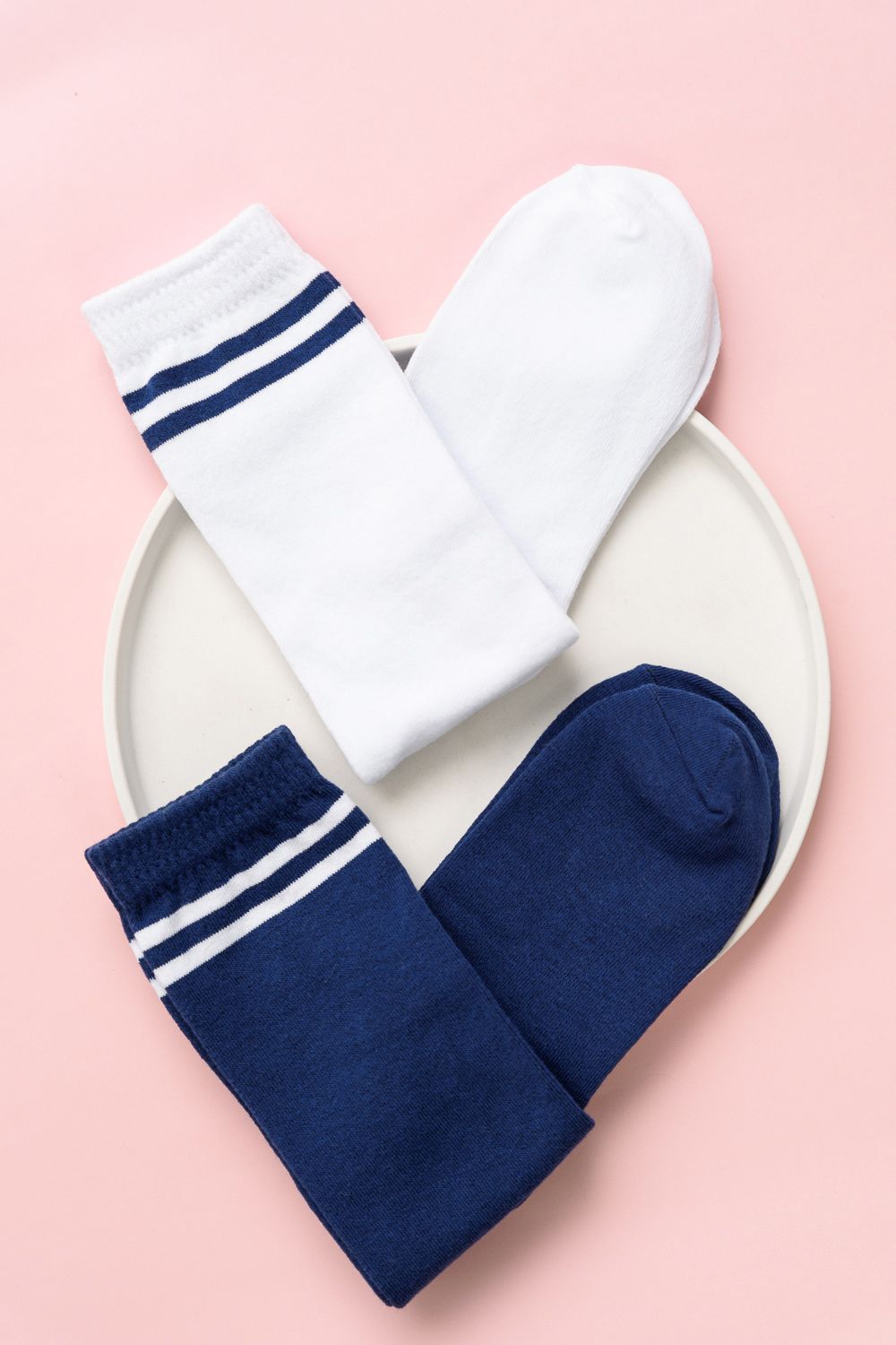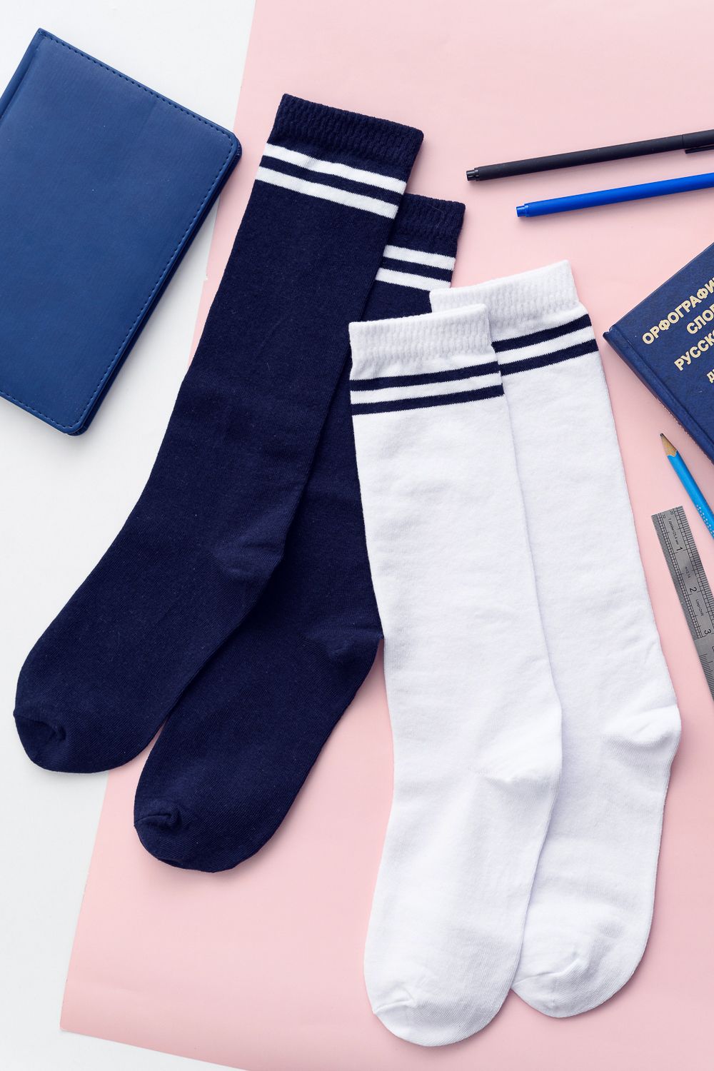 Гольфы женские Школа (набор 2 пары) - белый, темно-синий
