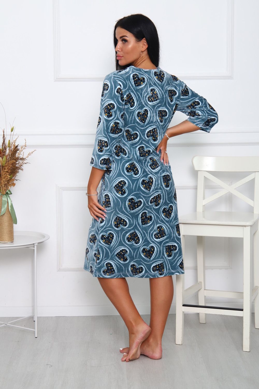 Халат женский на молнии из набивного велюра полуприлегающего силуэта. Горловина халата имеет V-образный вырез, обработана обтачкой, рукав 3/4, карманы. Халат прекрасно подойдет для дома и отдыха.