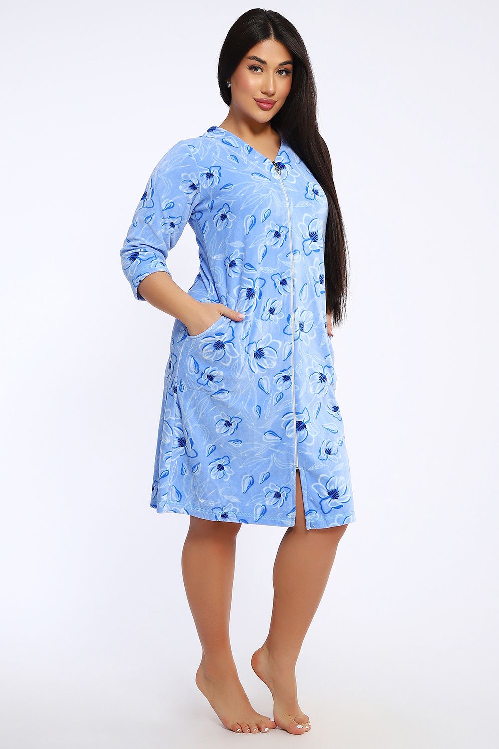 Халат женский выполнен из мягкого велюра на молнии. Рукав 3/4, с карманами, горловина обработана обтачкой. Халат отлично подойдет для дома и отдыха.