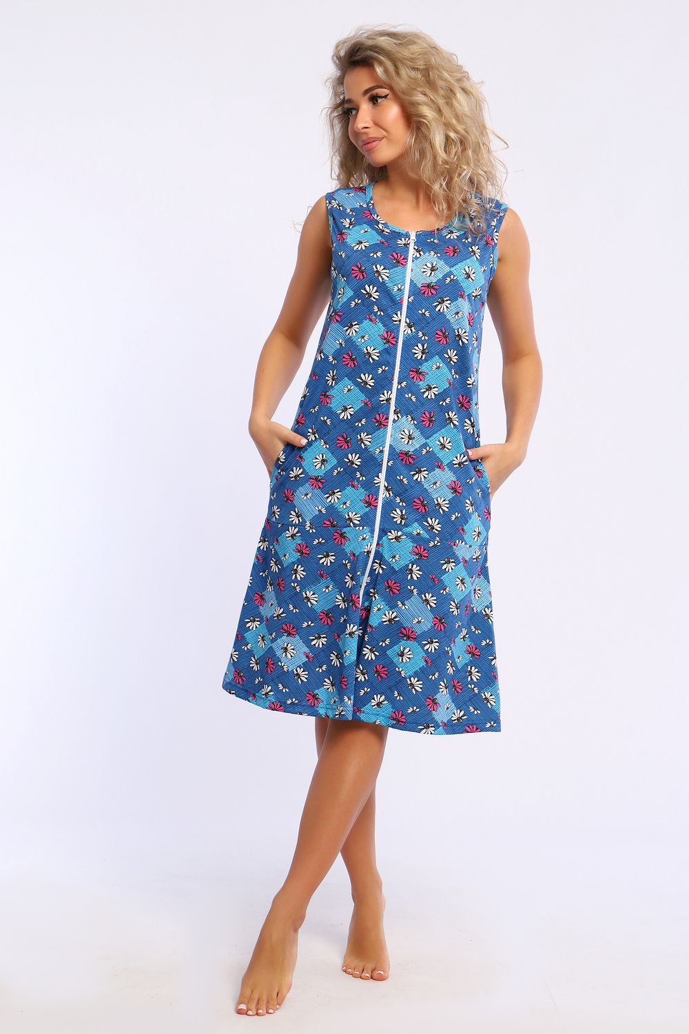 Халат на молнии без рукавов. Отрезной волан от середины бедра. Два кармана в боковых швах.