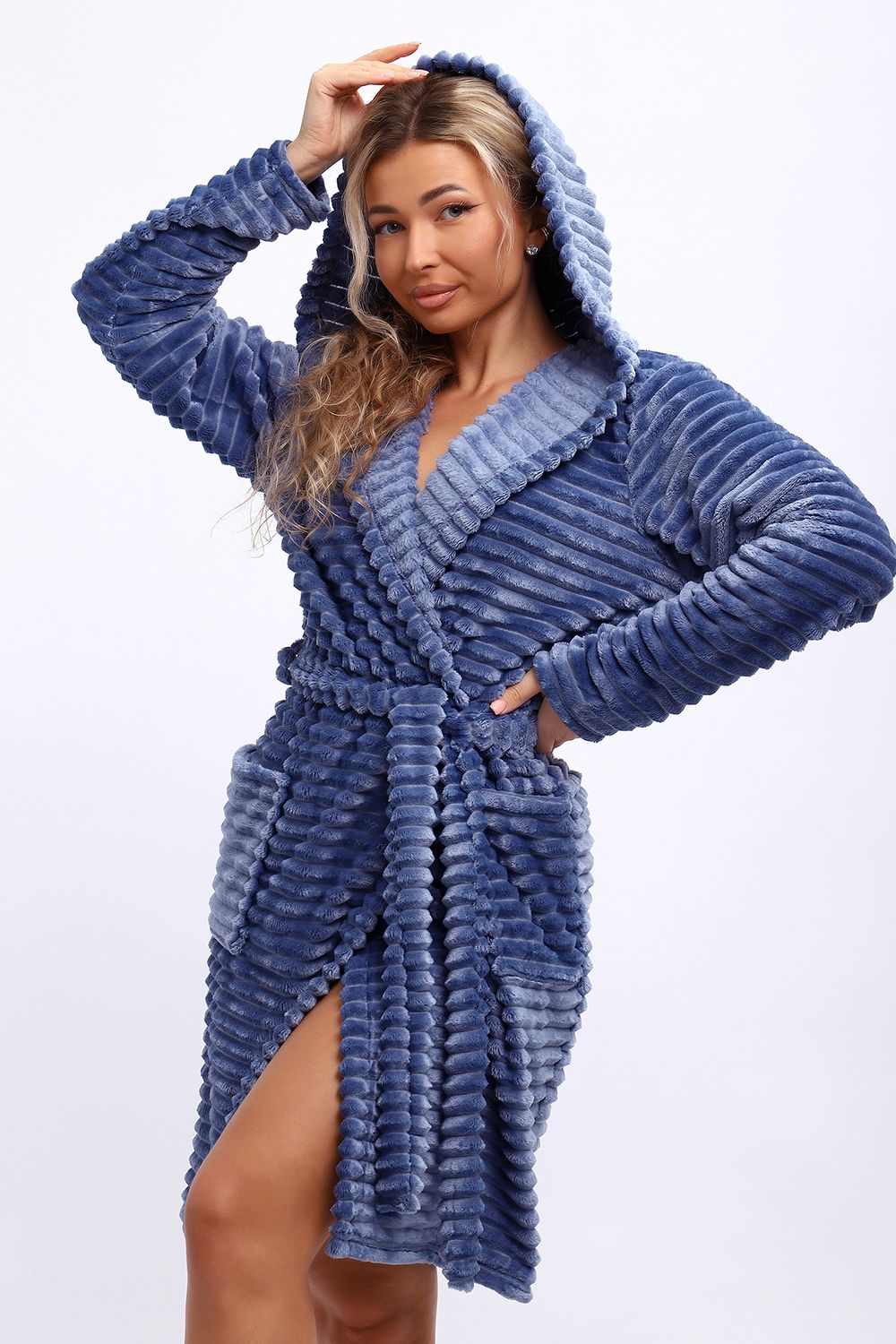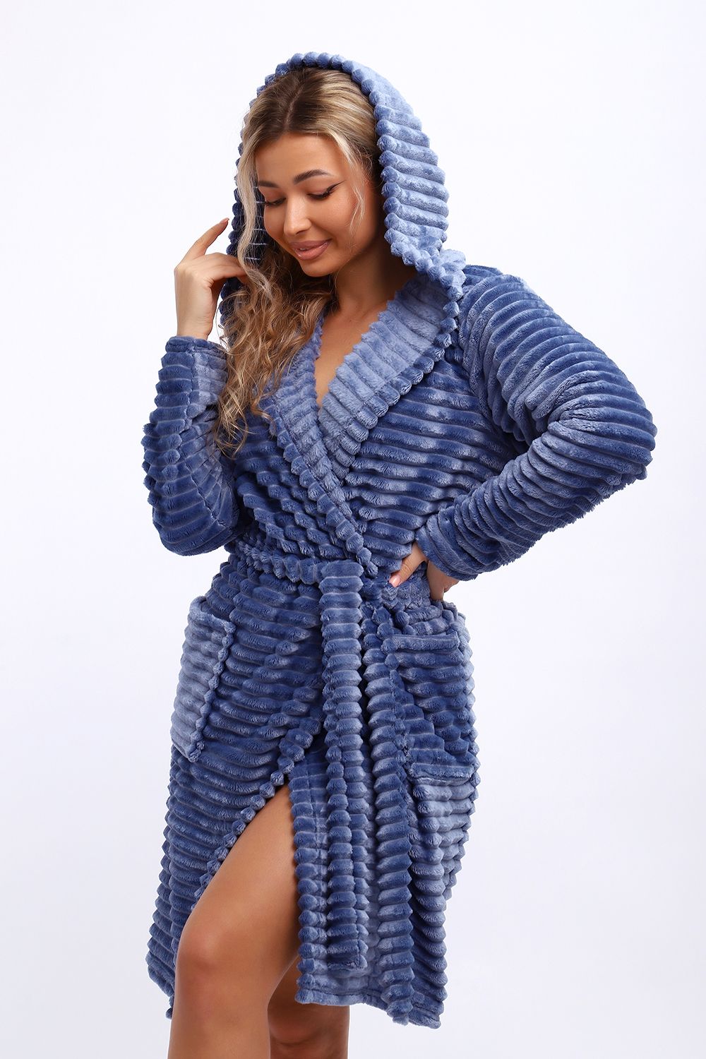 Халат женский домашний - практичный и уютный вариант для дома. Халат сшит из самого мягкого и нежного велсофта. Модель халата c капюшоном - неотъемлемая часть гардероба для тех, кто любит проводить вечера в комфорте и тепле.