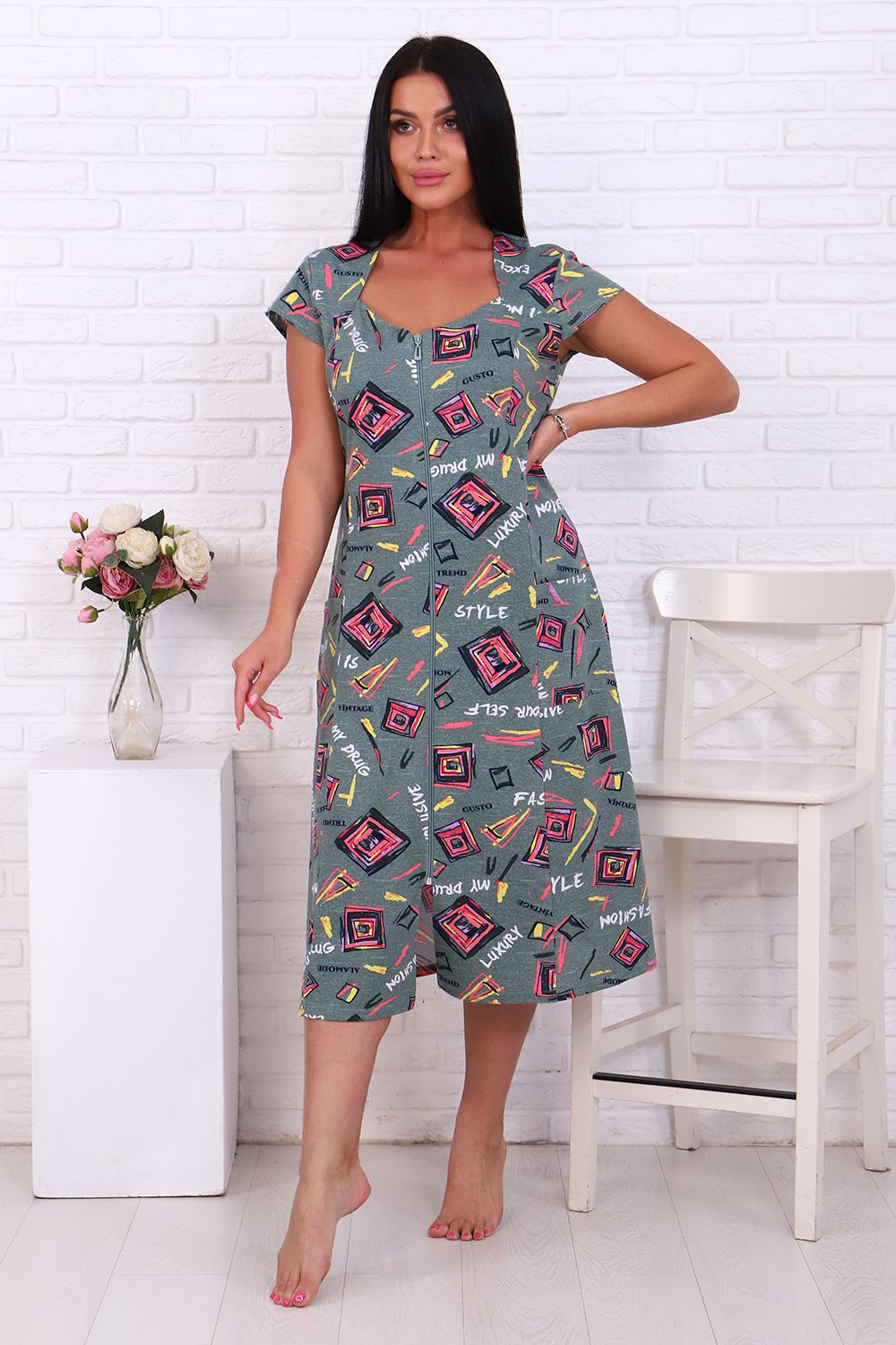 Халат женский на молнии из натурального хлопка, приятный к телу, комфортный. Модель с рельефами, слегка приталенного силуэта, фигурный вырез горловины обработан обтачкой на флизелине, короткий рукав, удобные карманы. Халат - это удобная вещь в женском домашнем гардеробе.