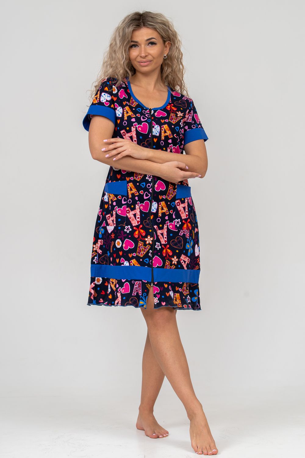 Женский халат на молнии выполнен из 100% хлопчатобумажной ткани. Модель дополняет яркая отделка по рукавам, карманам и низу изделия. А пояс на линии талии поможет легко смоделировать изящный силуэт и при этом чувствовать себя легко и непринуждённо. Данная модель прекрасно подойдёт для дома, дачи и отдыха, создавая по-настоящему тёплую атмосферу и женственный образ. Рост модели на фото 165см