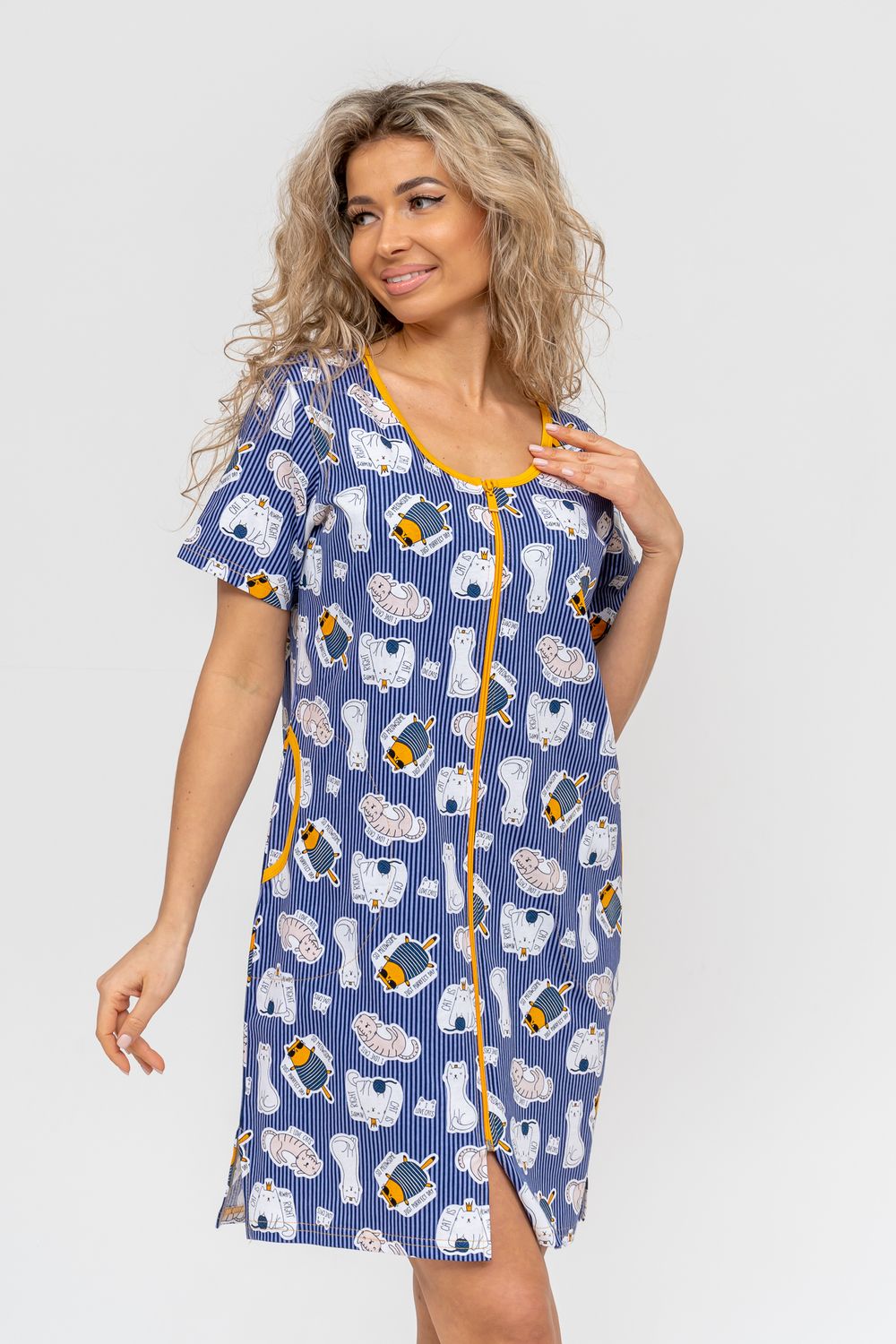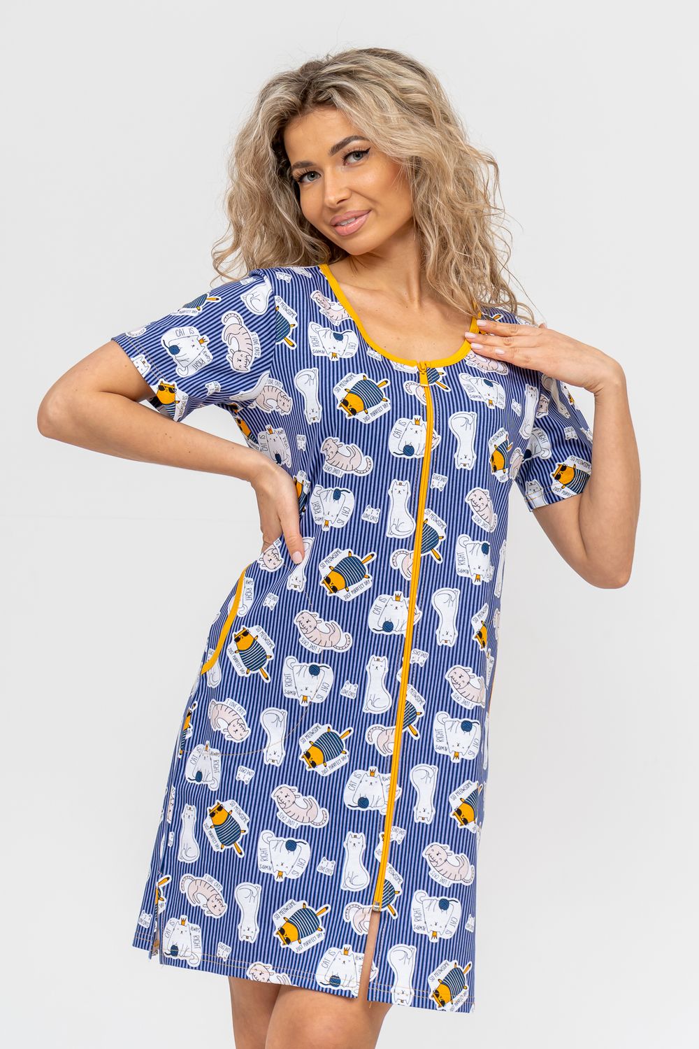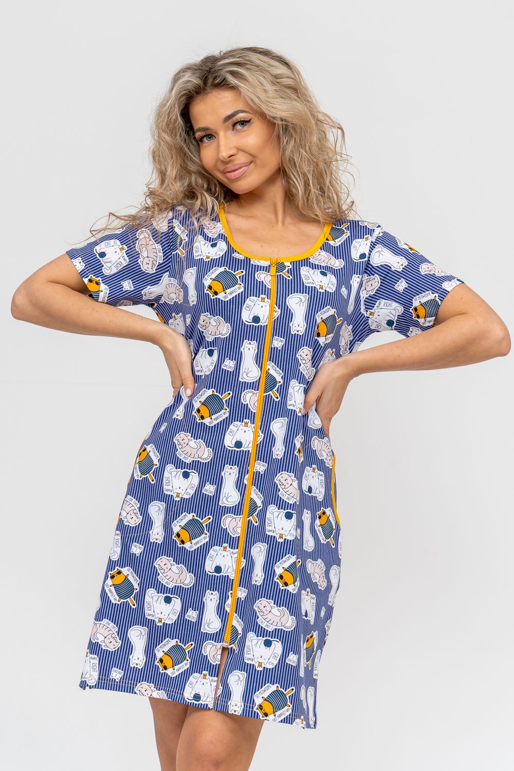 Женский халатик модных трендовых расцветок выполнен из 100% хлопчатобумажной ткани, что обеспечивает максимальный комфорт при ношении. Отличается мягкостью и приятной на ощупь текстурой. Материал прекрасно дышит. Носить такой халатик Вы сможете как летом, так и в любой другой сезон. Надёжный замок на молнии сохраняет свои свойства в течении всего времени использования. Женственный вырез и 2 боковых кармана добавляют образу шарм и делают изделие удобным и практичным. Изысканный, средней длины халатик подойдёт для любого типа фигуры. Отличная модель для дома, для роддома, после родов, для кухонных дел и хозяйственной уборки, для дачи. И конечно идеально после душа, сауны, бани и ванной. А так же будет замечательным подарком на любой праздник: 14 февраля, день рождения, 8 марта. Рекомендуется стирать в деликатном режиме 30 °С. Это поможет избежать деформации и сохранить яркость цвета.