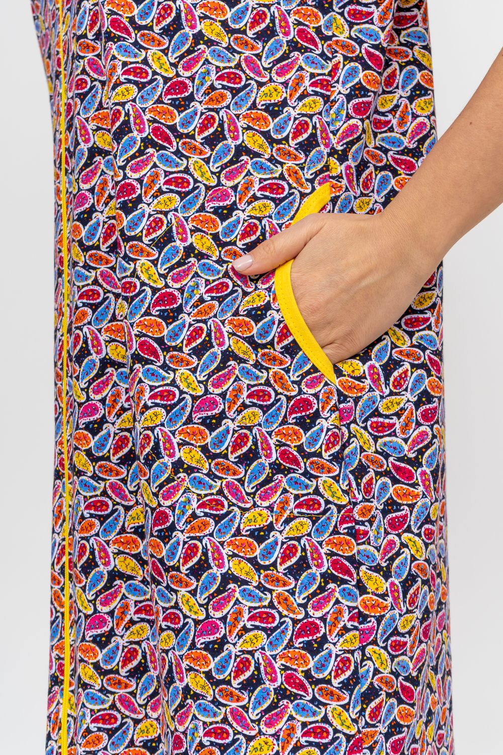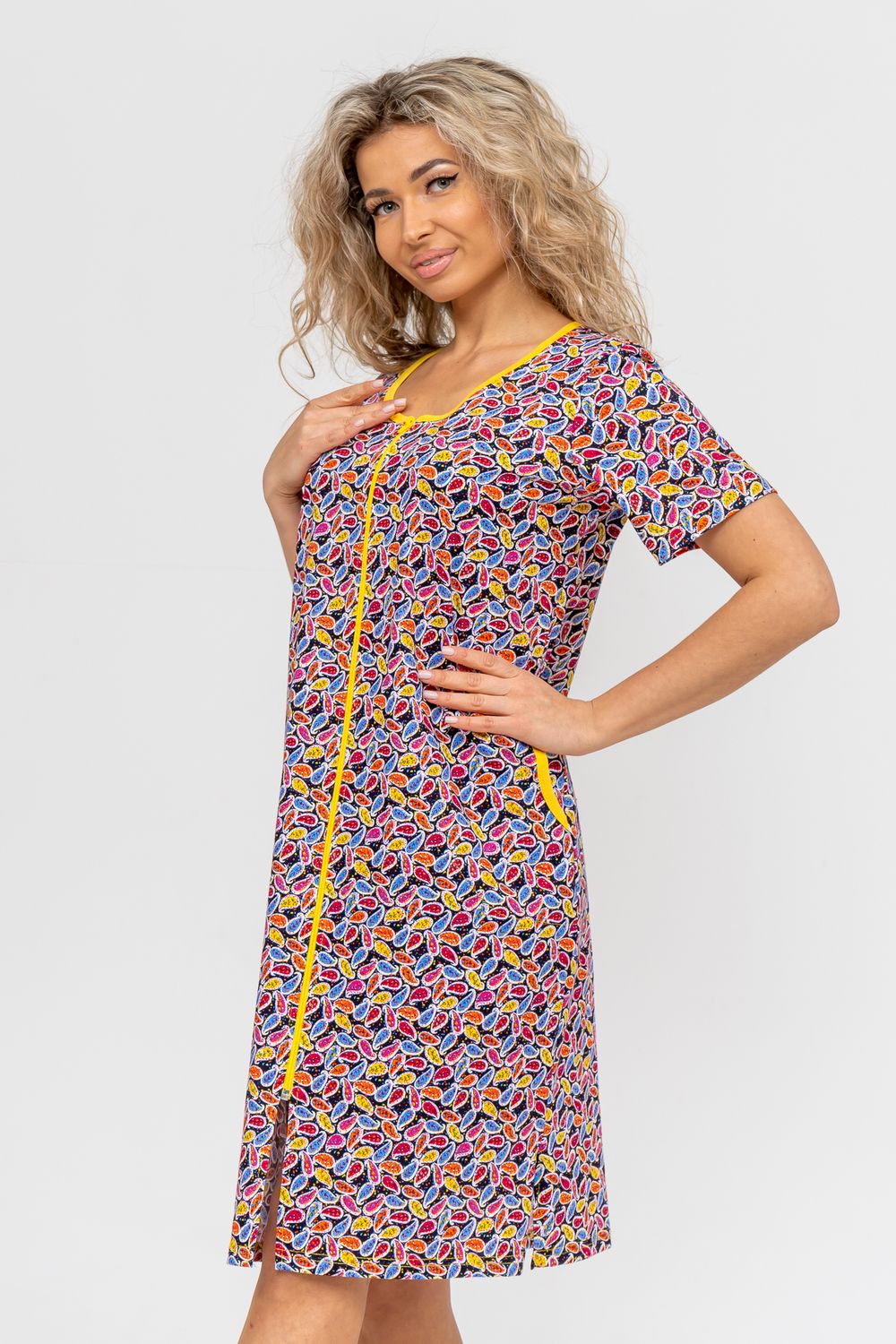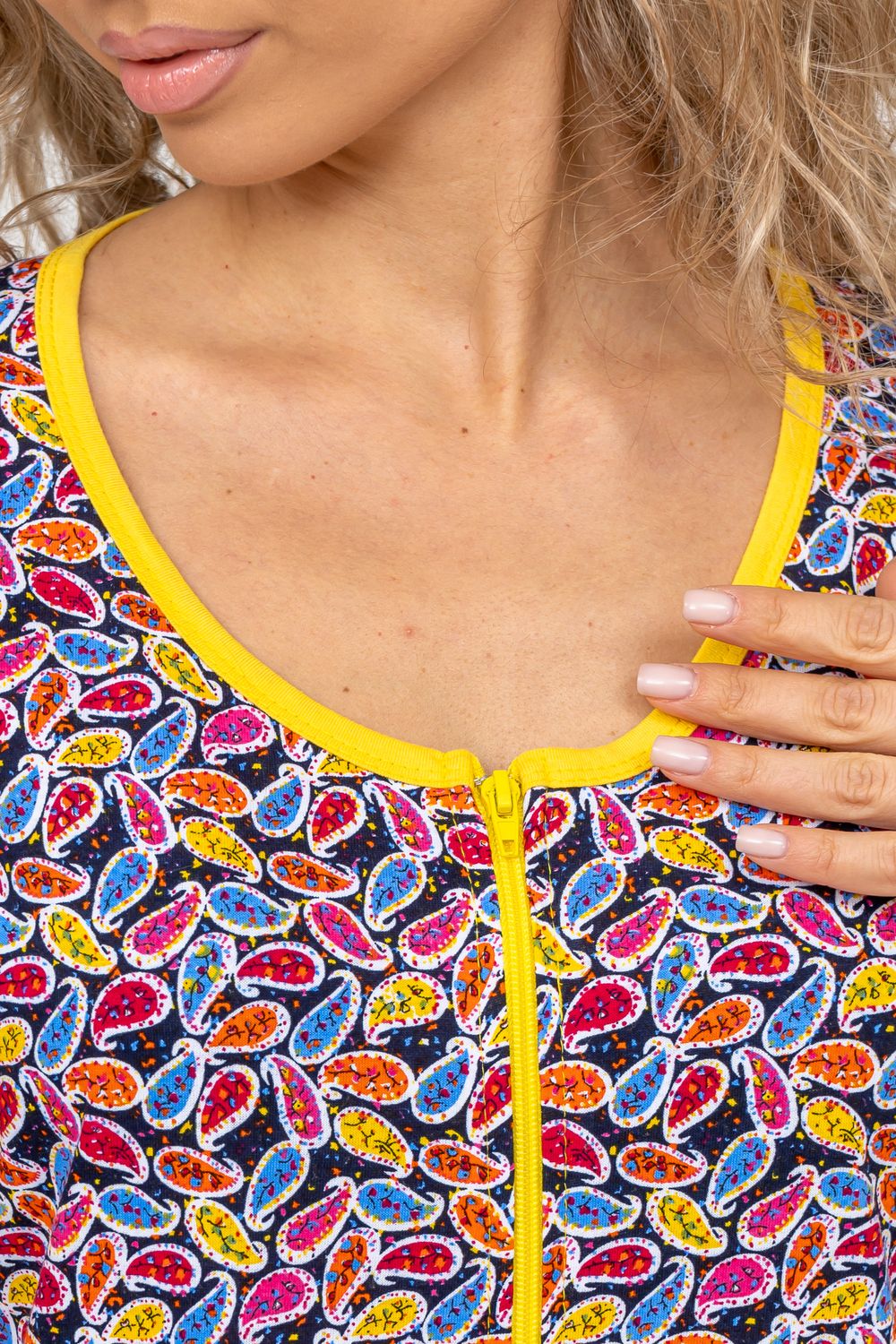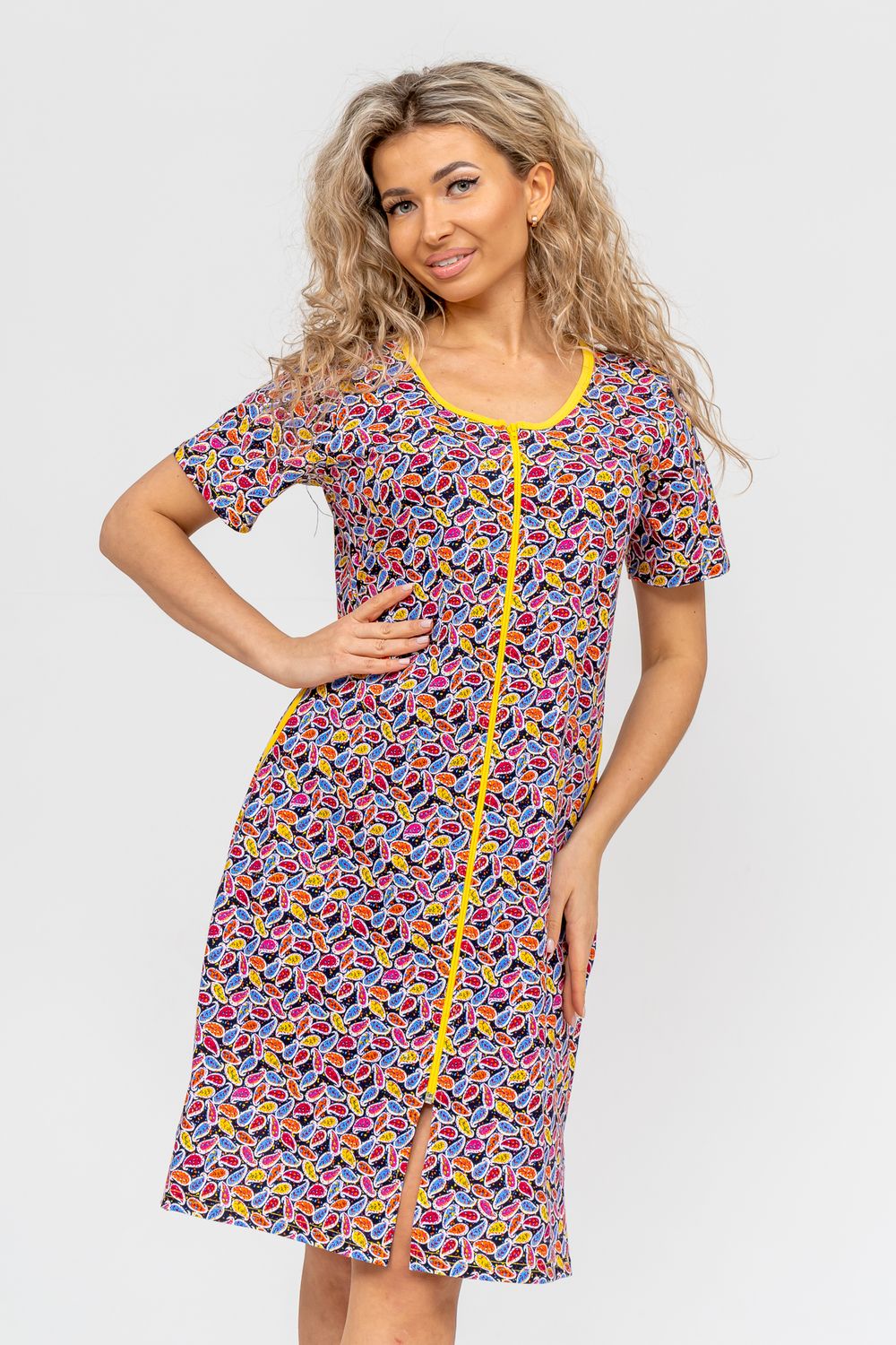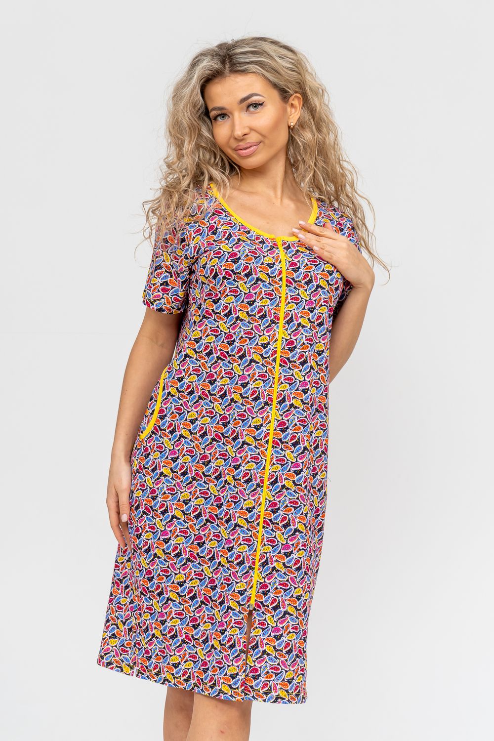 Модный и яркий женственный халатик выполнен из 100% хлопчатобумажной ткани, что обеспечивает максимальный комфорт при ношении. Отличается мягкостью и приятной на ощупь текстурой. Материал прекрасно дышит. Носить такой халатик Вы сможете как летом, так и в любой другой сезон. Надёжный замок на молнии сохраняет свои свойства в течении всего времени использования. Женственный вырез и 2 боковых кармана добавляют образу шарм и делают изделие удобным и практичным. Изысканный халатик подойдёт для любого типа фигуры. Отличная модель для дома, для роддома, после родов, для кухонных дел и хозяйственной уборки, для дачи. И конечно идеально после душа, сауны, бани и ванной. А так же будет замечательным подарком на любой праздник: 14 февраля, день рождения, 8 марта. Рекомендуется стирать в деликатном режиме 30 °С. Это поможет избежать деформации и сохранить яркость цвета.