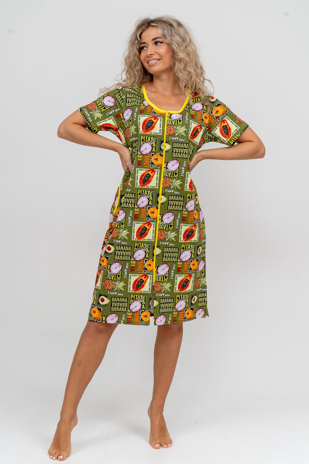 Модный женственный халатик выполнен из 100% хлопчатобумажной ткани, что обеспечивает максимальный комфорт при ношении. Отличается мягкостью и приятной на ощупь текстурой. Материал прекрасно дышит. Носить такой халатик Вы сможете как летом, так и в любой другой сезон. Надёжный замок на молнии сохраняет свои свойства в течении всего времени использования. Женственный вырез и 2 боковых кармана добавляют образу шарм и делают изделие удобным и практичным. Изысканный халатик подойдёт для любого типа фигуры. Отличная модель для дома, для роддома, после родов, для кухонных дел и хозяйственной уборки, для дачи. И конечно идеально после душа, сауны, бани и ванной. А так же будет замечательным подарком на любой праздник: 14 февраля, день рождения, 8 марта. Рекомендуется стирать в деликатном режиме 30 °С. Это поможет избежать деформации и сохранить яркость цвета.
