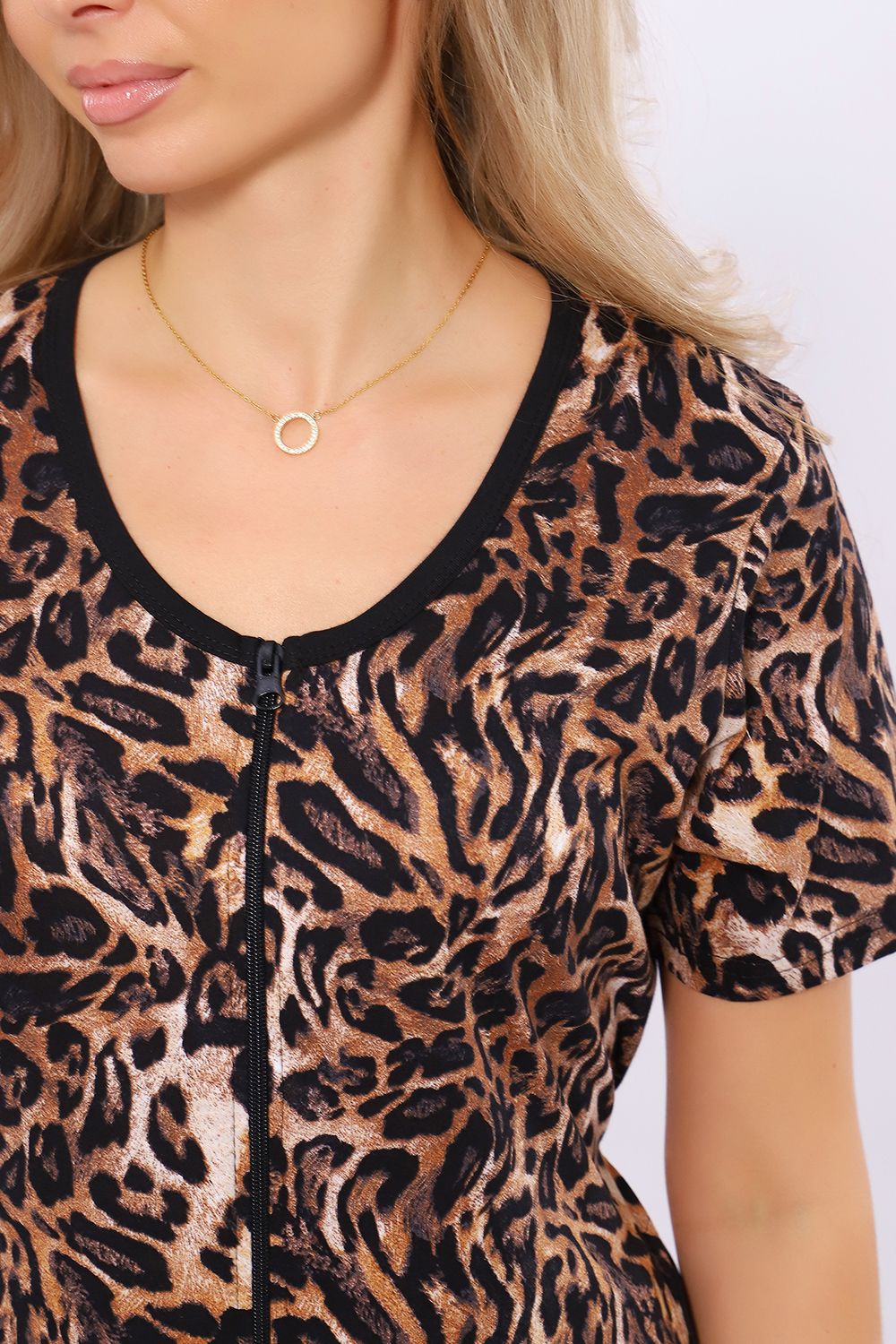 Женский халатик модных расцветок выполнен из 100% хлопчатобумажной ткани, что обеспечивает максимальный комфорт при ношении. Отличается мягкостью и приятной на ощупь текстурой. Материал прекрасно дышит. Носить такой халатик Вы сможете как летом, так и в любой другой сезон. Надёжный замок на молнии сохраняет свои свойства в течении всего времени использования. Женственный вырез и 2 боковых кармана добавляют образу шарм и делают изделие удобным и практичным. А изысканный поясок подчеркнёт вашу талию. Халатик средней длины подойдёт для любого типа фигуры. Отличная модель для дома, для роддома, после родов, для кухонных дел и хозяйственной уборки, для дачи. И конечно идеально после душа, сауны, бани и ванной. А так же будет замечательным подарком на любой праздник: 14 февраля, день рождения, 8 марта. Рекомендуется стирать в деликатном режиме 30 °С. Это поможет избежать деформации и сохранить яркость цвета.