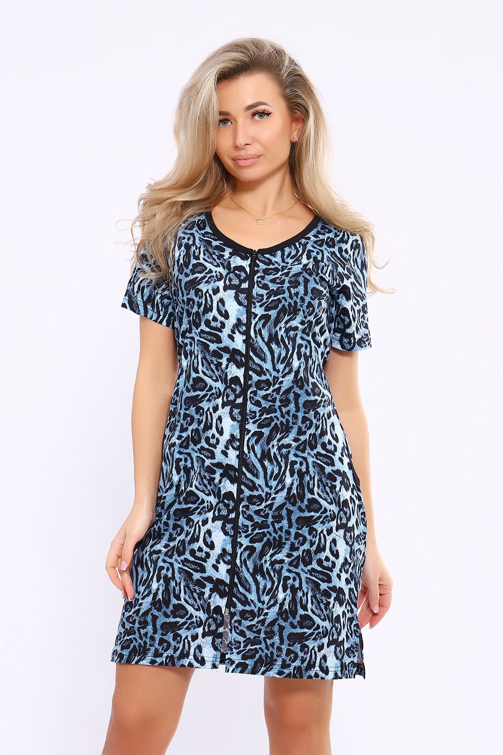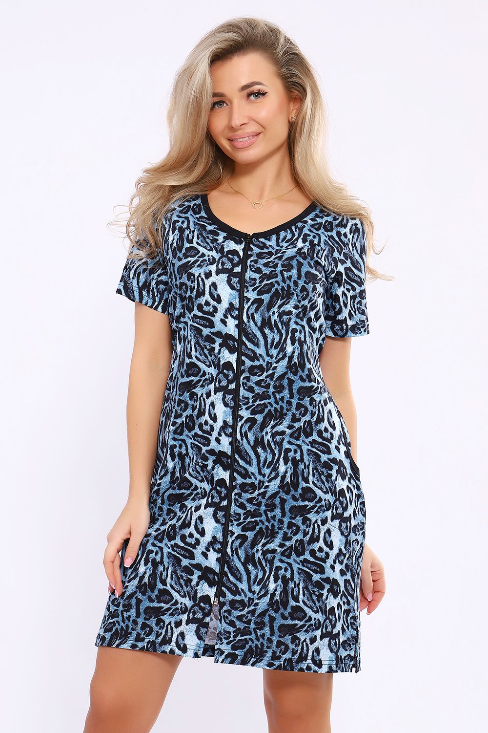 Женский халатик модных расцветок выполнен из 100% хлопчатобумажной ткани, что обеспечивает максимальный комфорт при ношении. Отличается мягкостью и приятной на ощупь текстурой. Материал прекрасно дышит. Носить такой халатик Вы сможете как летом, так и в любой другой сезон. Надёжный замок на молнии сохраняет свои свойства в течении всего времени использования. Женственный вырез и 2 боковых кармана добавляют образу шарм и делают изделие удобным и практичным. А изысканный поясок подчеркнёт вашу талию. Халатик средней длины подойдёт для любого типа фигуры. Отличная модель для дома, для роддома, после родов, для кухонных дел и хозяйственной уборки, для дачи. И конечно идеально после душа, сауны, бани и ванной. А так же будет замечательным подарком на любой праздник: 14 февраля, день рождения, 8 марта. Рекомендуется стирать в деликатном режиме 30 °С. Это поможет избежать деформации и сохранить яркость цвета.