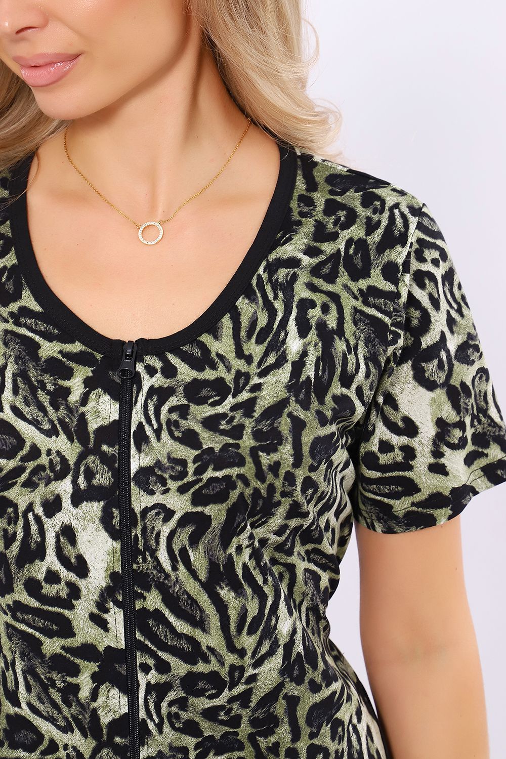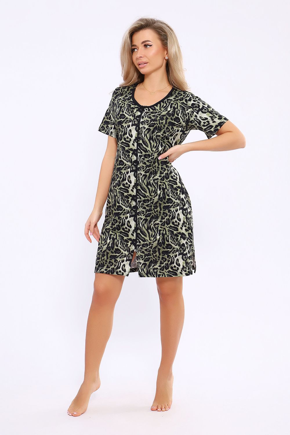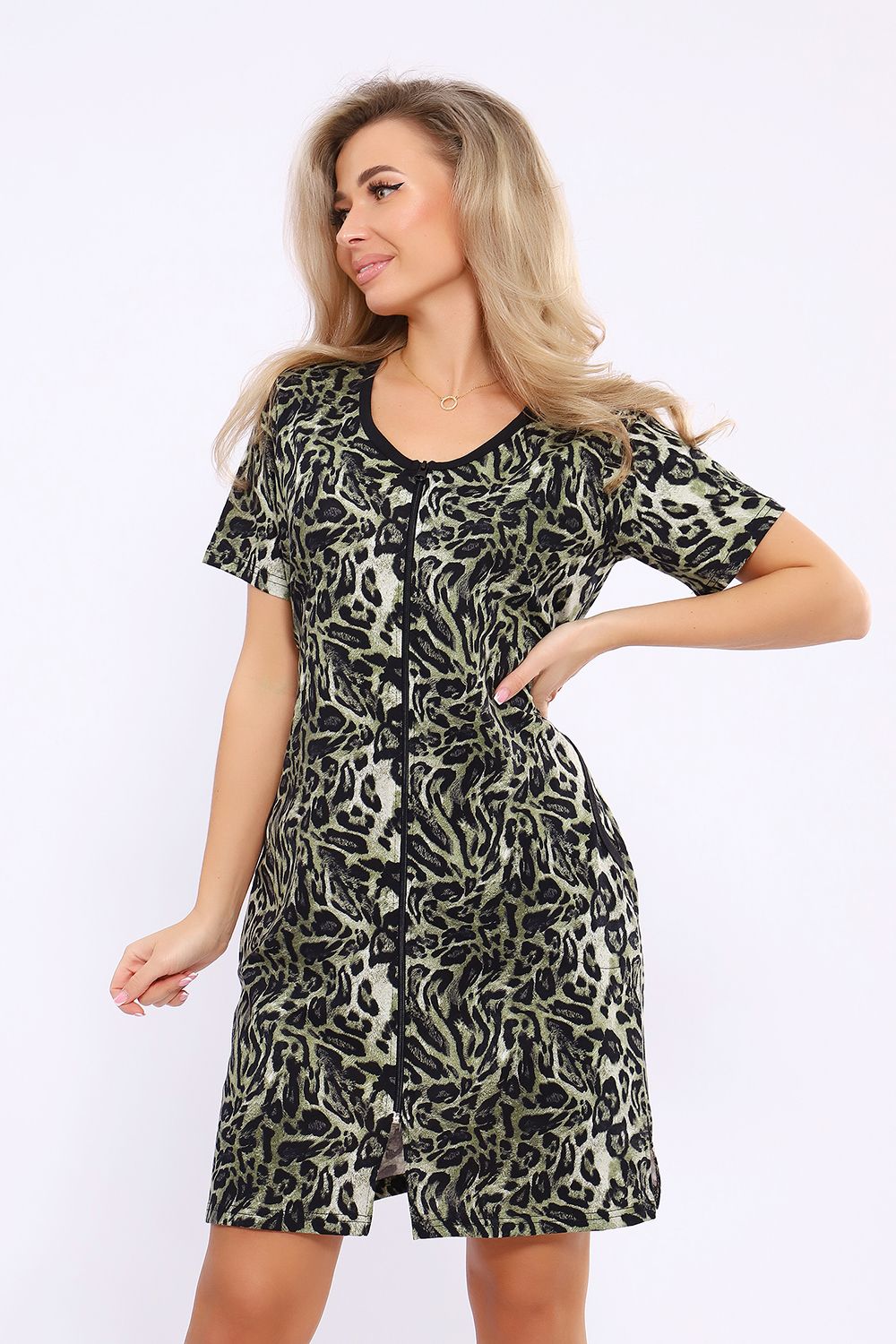 Женский халатик модных расцветок выполнен из 100% хлопчатобумажной ткани, что обеспечивает максимальный комфорт при ношении. Отличается мягкостью и приятной на ощупь текстурой. Материал прекрасно дышит. Носить такой халатик Вы сможете как летом, так и в любой другой сезон. Надёжный замок на молнии сохраняет свои свойства в течении всего времени использования. Женственный вырез и 2 боковых кармана добавляют образу шарм и делают изделие удобным и практичным. А изысканный поясок подчеркнёт вашу талию. Халатик средней длины подойдёт для любого типа фигуры. Отличная модель для дома, для роддома, после родов, для кухонных дел и хозяйственной уборки, для дачи. И конечно идеально после душа, сауны, бани и ванной. А так же будет замечательным подарком на любой праздник: 14 февраля, день рождения, 8 марта. Рекомендуется стирать в деликатном режиме 30 °С. Это поможет избежать деформации и сохранить яркость цвета.