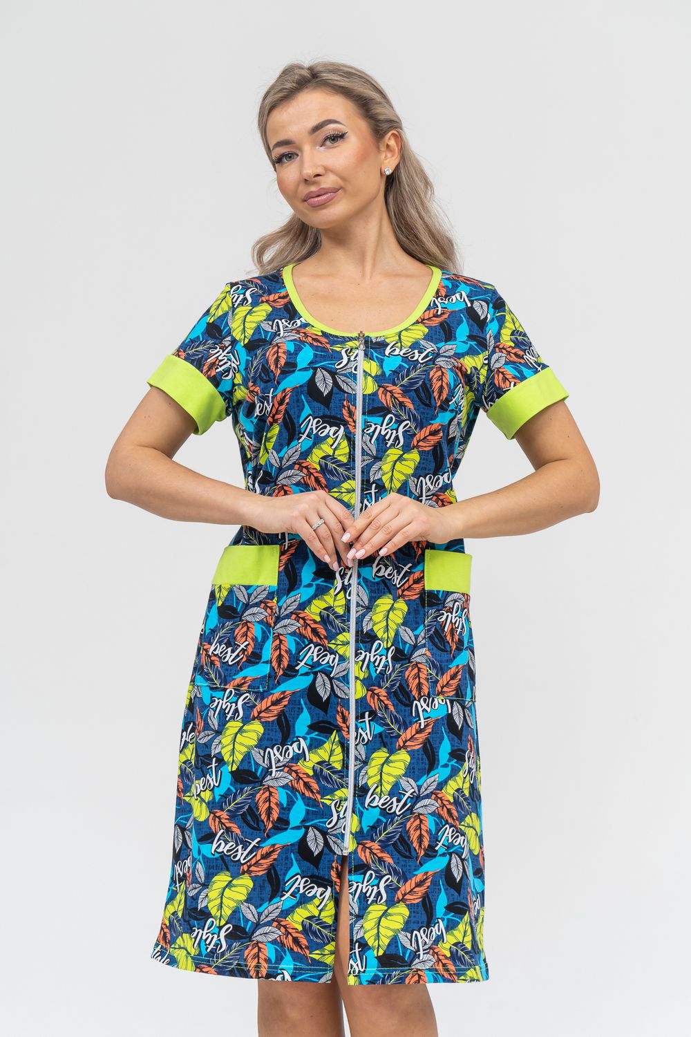 Женский халатик на молнии – самая распространенная и универсальная одежда для домашнего отдыха и хозяйственных хлопот. После трудного рабочего дня, приходя домой, первым делом хочется переодеться. И данная модель это идеальный вариант среди представительниц прекрасной половины человечества. Модель выполнена из 100% хлопчатобумажной ткани. Халат так же дополняет яркая отделка по рукавам и карманам. А пояс на линии талии поможет легко смоделировать женственный силуэт и при этом Вы будете чувствовать себя легко и непринуждённо. Данная модель прекрасно подойдёт для дома, дачи и отдыха, создавая по-настоящему яркий образ и хорошее настроение!