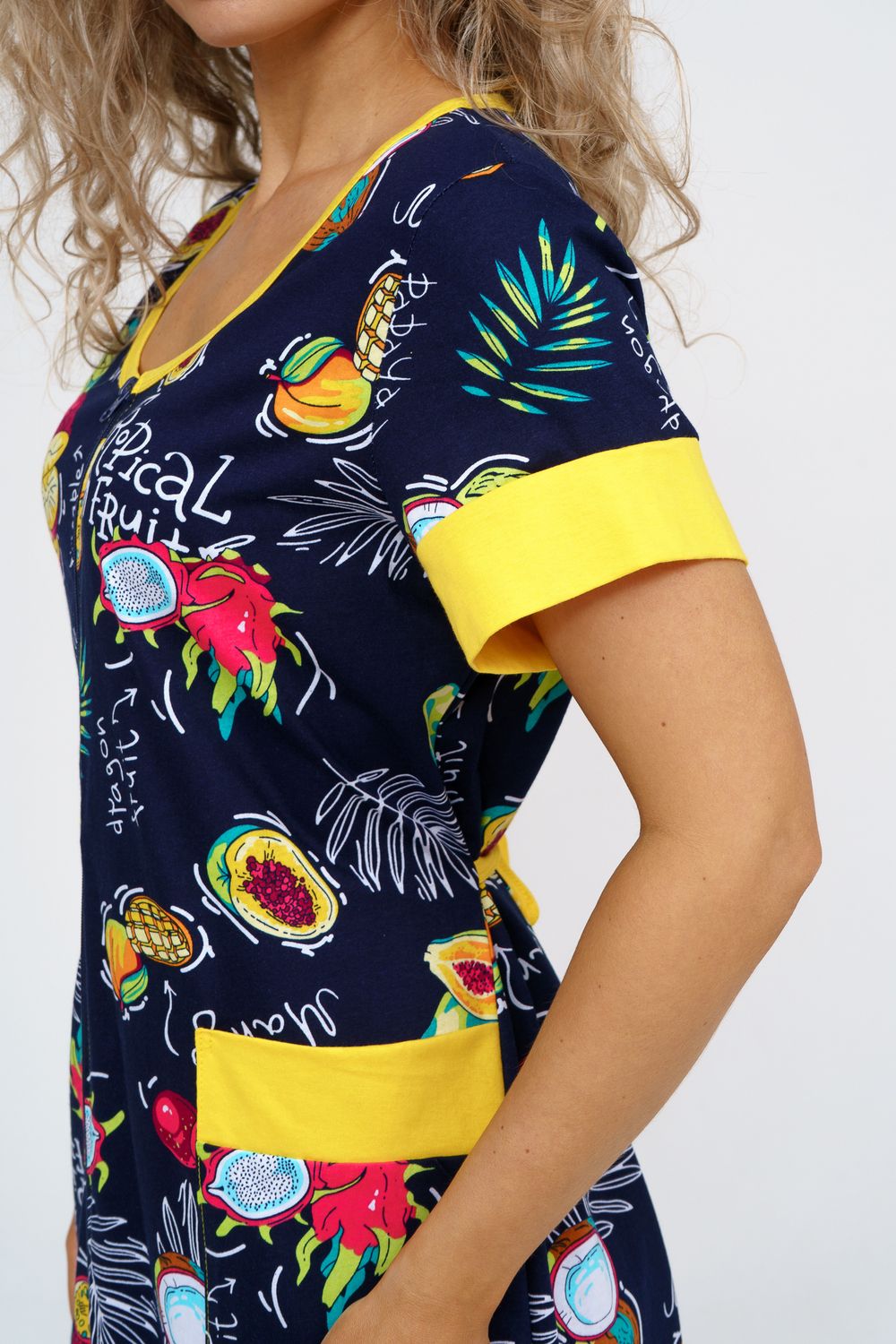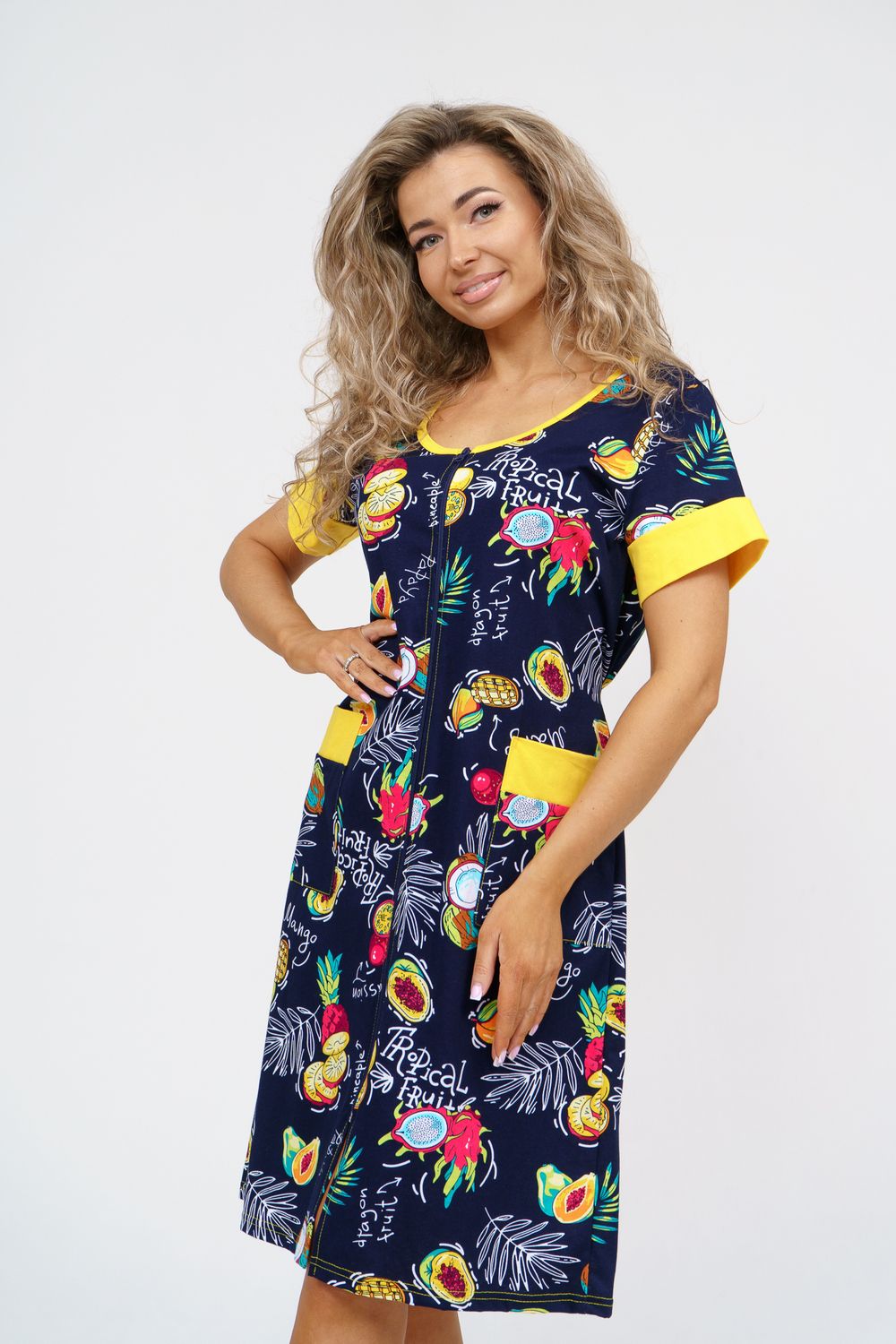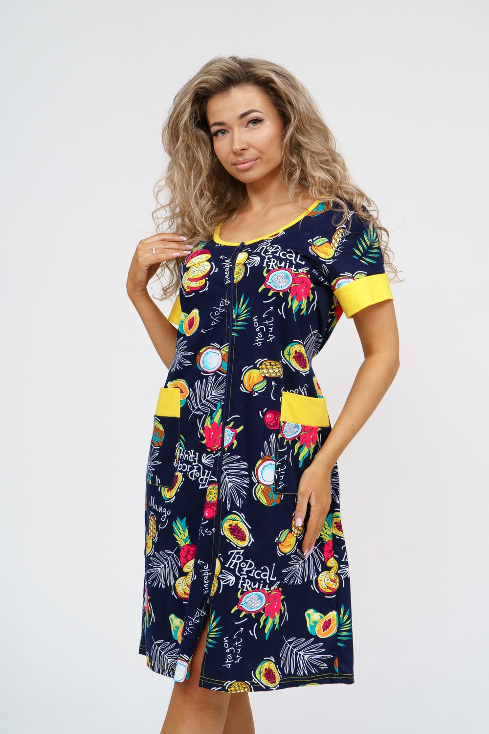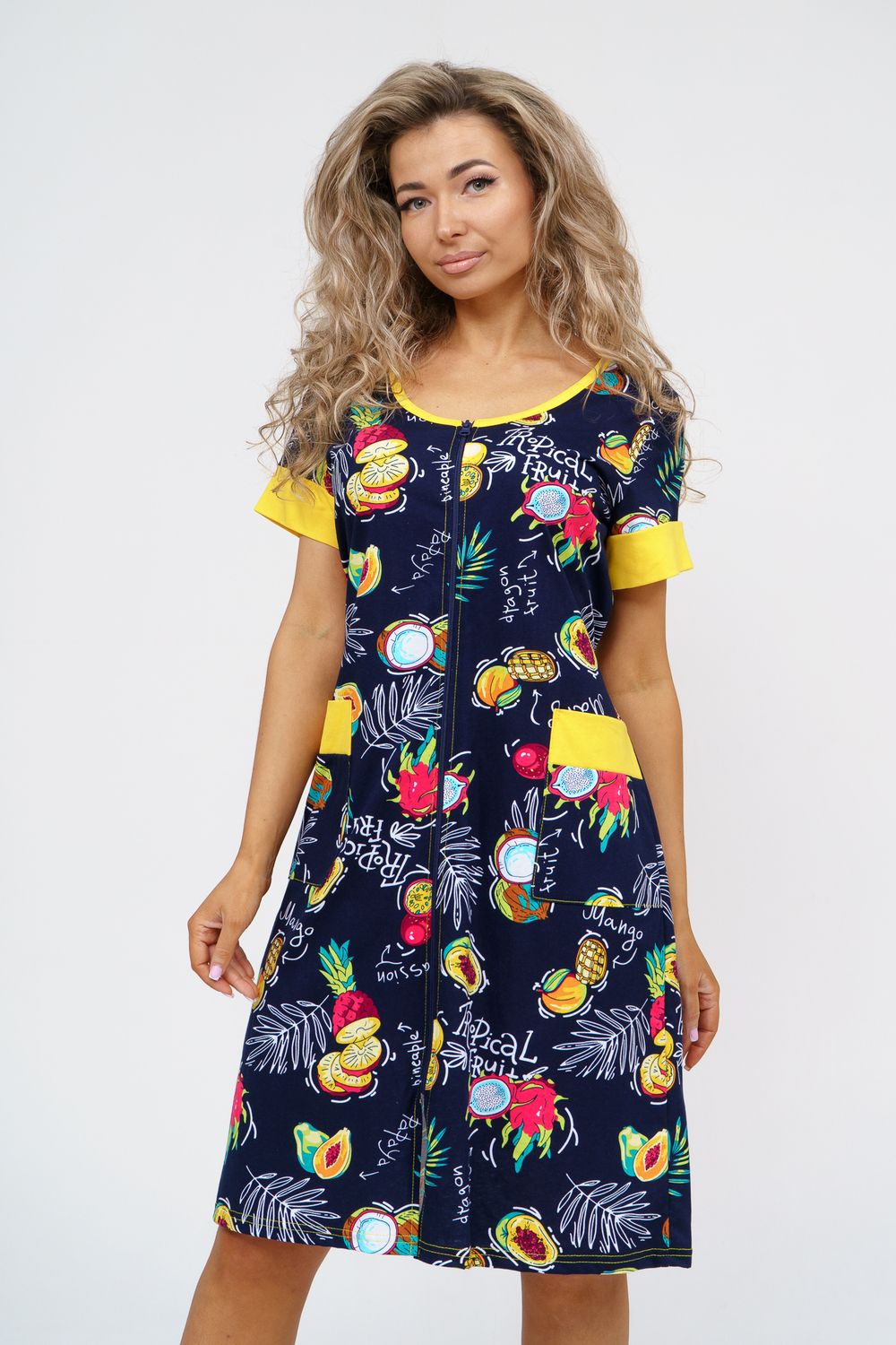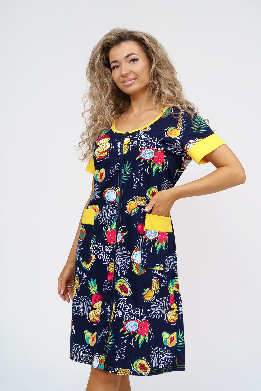 Женский халатик на молнии – самая распространенная и универсальная одежда для домашнего отдыха и хозяйственных хлопот. После трудного рабочего дня, приходя домой, первым делом хочется переодеться. И данная модель это идеальный вариант среди представительниц прекрасной половины человечества. Модель выполнена из 100% хлопчатобумажной ткани. Халат так же дополняет яркая отделка по рукавам и карманам. А пояс на линии талии поможет легко смоделировать женственный силуэт и при этом Вы будете чувствовать себя легко и непринуждённо. Данная модель прекрасно подойдёт для дома, дачи и отдыха, создавая по-настоящему яркий образ и хорошее настроение!