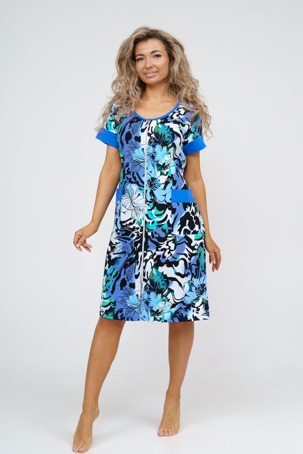 Женский халатик на молнии – самая распространенная и универсальная одежда для домашнего отдыха и хозяйственных хлопот. После трудного рабочего дня, приходя домой, первым делом хочется переодеться. И данная модель это идеальный вариант среди представительниц прекрасной половины человечества. Модель выполнена из 100% хлопчатобумажной ткани. Халат так же дополняет яркая отделка по рукавам и карманам. А пояс на линии талии поможет легко смоделировать женственный силуэт и при этом Вы будете чувствовать себя легко и непринуждённо. Данная модель прекрасно подойдёт для дома, дачи и отдыха, создавая по-настоящему яркий образ и хорошее настроение!
