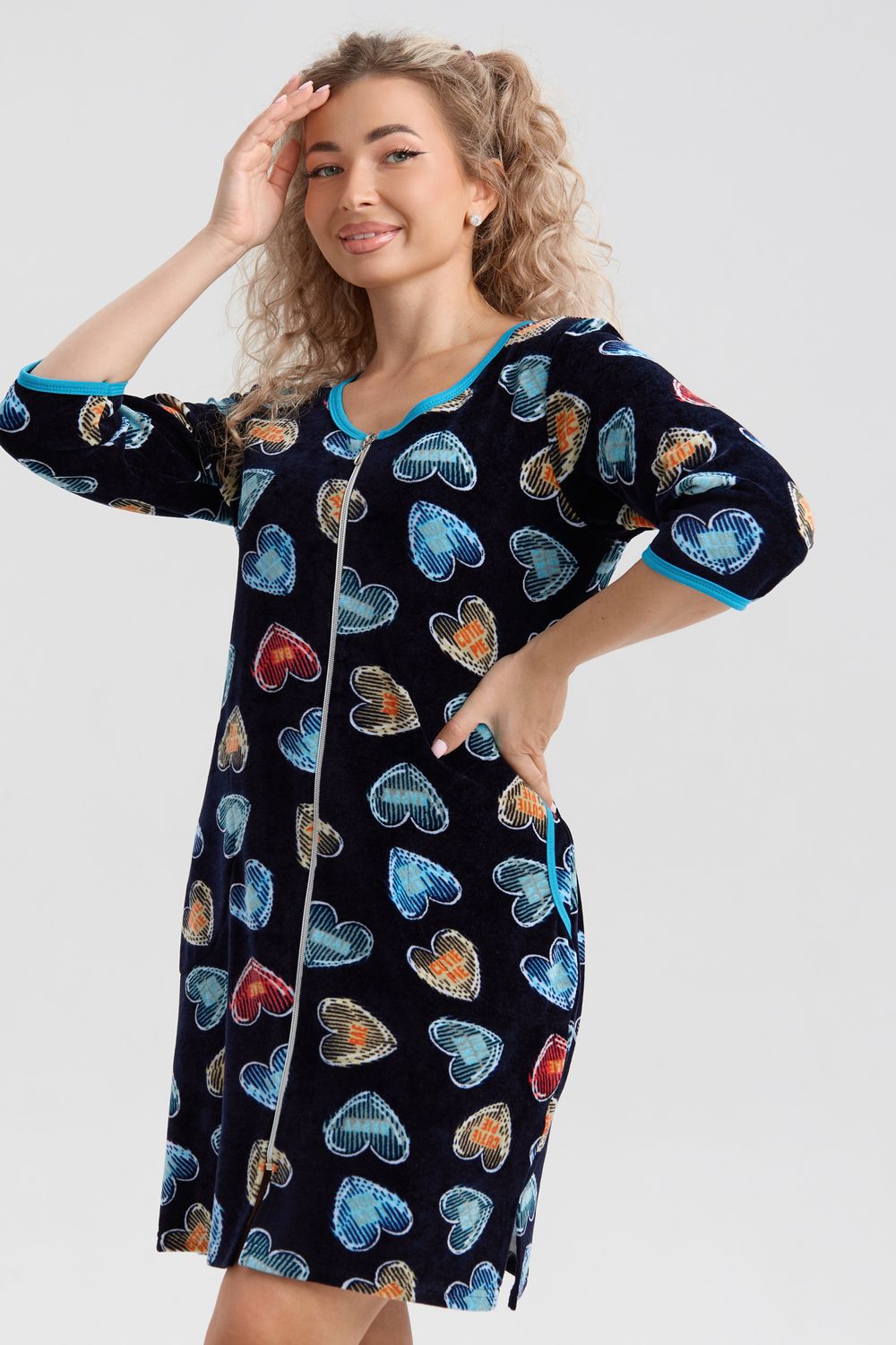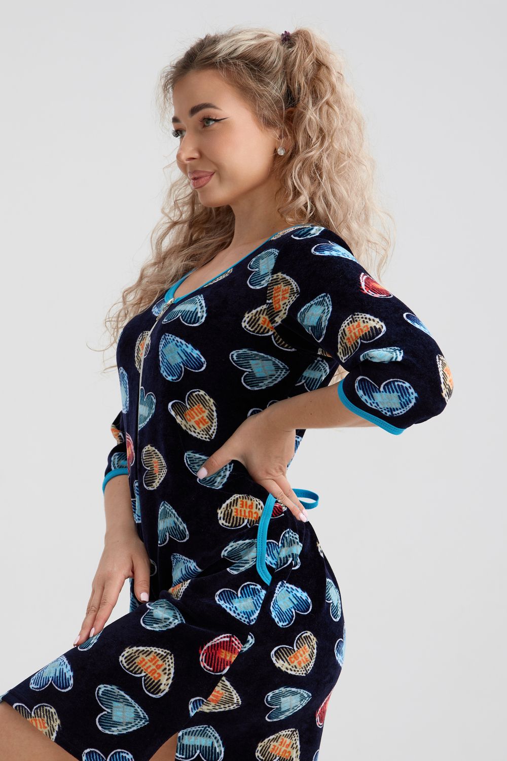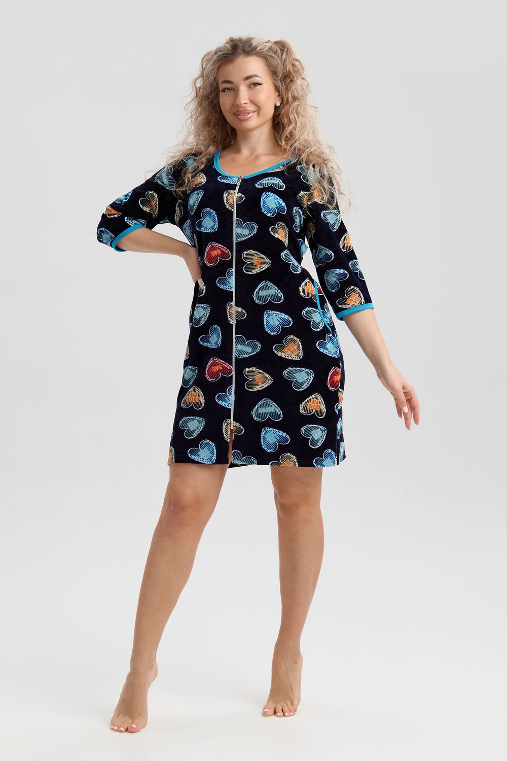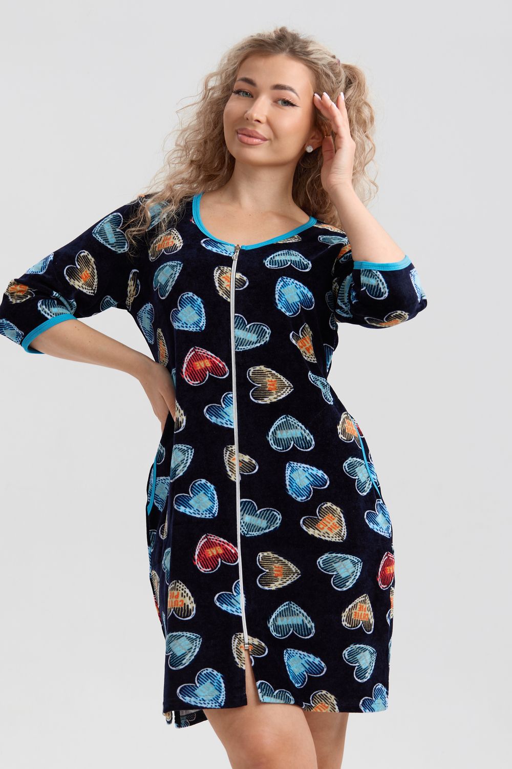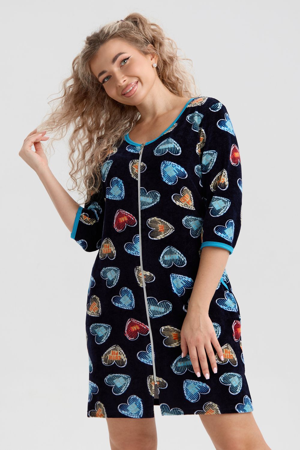 Женский укороченный халатик выполнен из качественного велюра и модного дизайна. Велюр практичен, прост в уходе и использовании. Обладает высокой устойчивостью к механическим повреждениям. Ему свойственны характеристики натуральных тканей, что делает его использование комфортным. Материал гигроскопичен, хорошо пропускает воздух и сохраняет тепло. Кроме этого он не меняет форму и не вызывает аллергических реакций. Отличается мягкостью и приятной на ощупь текстурой. Материал прекрасно дышит. Носить такой халатик Вы сможете в любое время года. Надёжный замок на молнии сохраняет свои свойства в течении всего времени использования. Женственный вырез, поясок и 2 боковых кармана добавляют образу шарм и делают изделие удобным и практичным. Изысканный, в меру длинный халат подойдёт для любого типа фигуры. А так же будет идеальным подарком на любой праздник: Новый год, день рождения, 8 марта, 14 февраля. Рекомендуется стирать в деликатном режиме 30 °С. Это поможет сохранить качество изделия на долгое время.