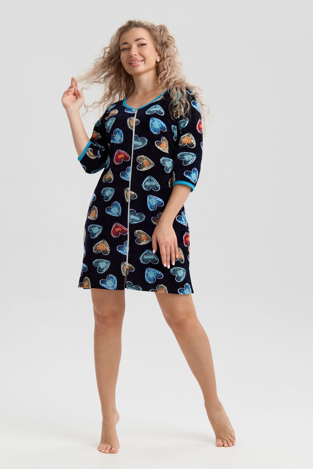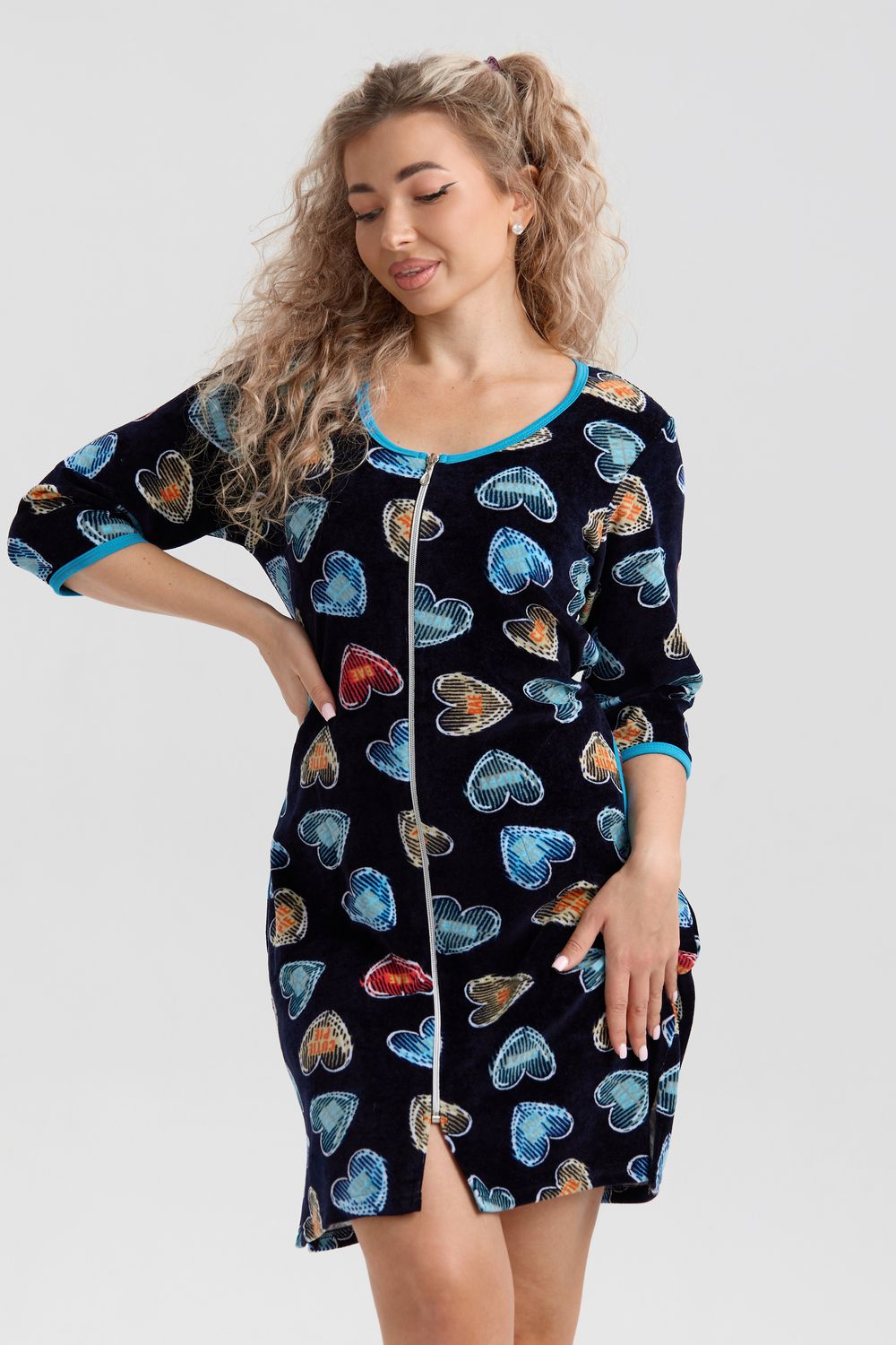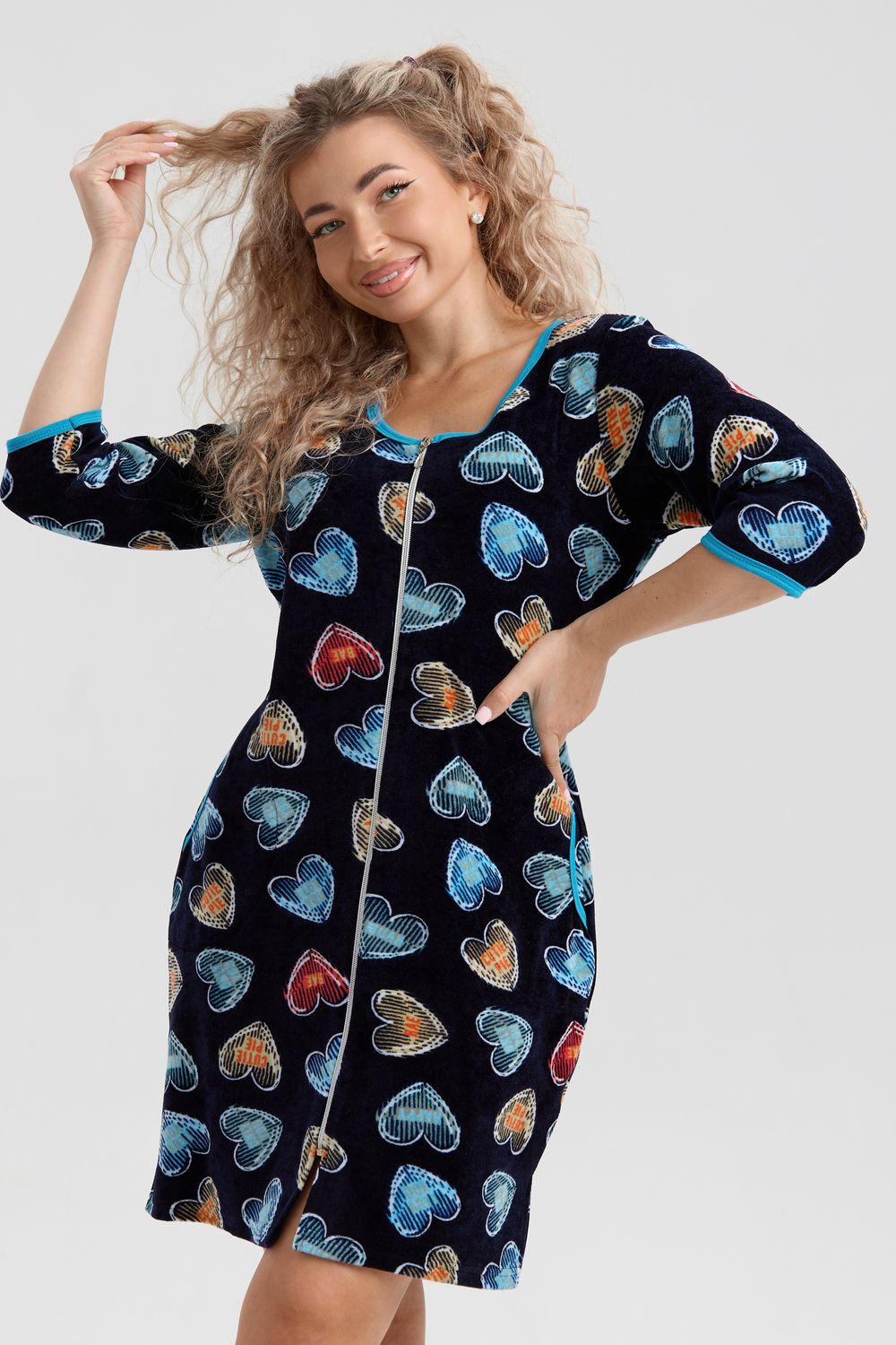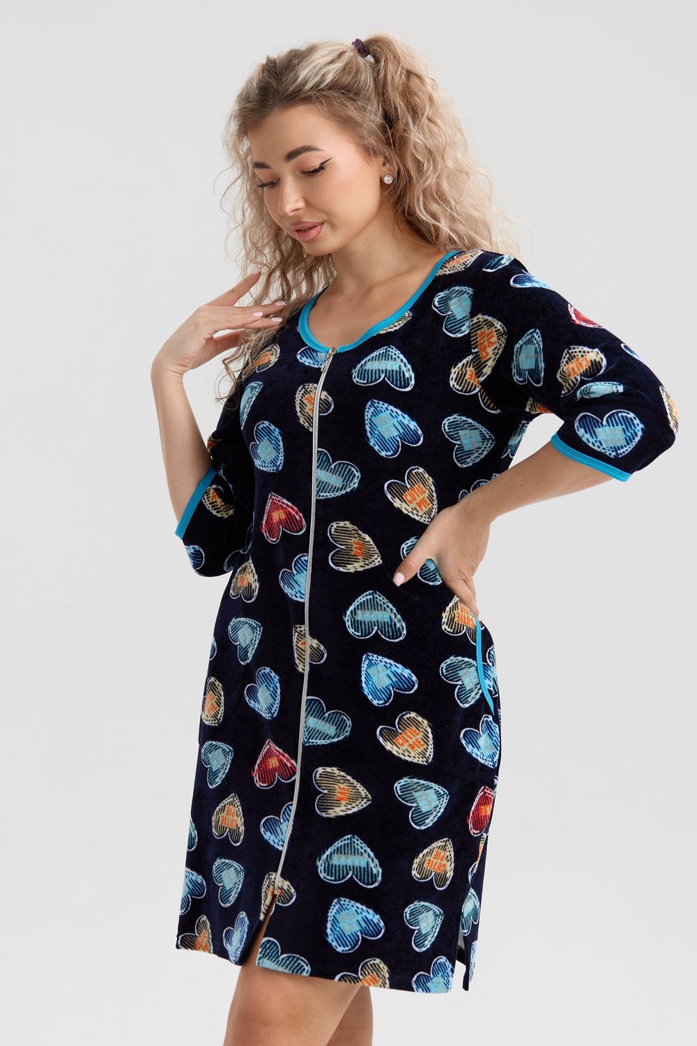 Женский укороченный халатик выполнен из качественного велюра и модного дизайна. Велюр практичен, прост в уходе и использовании. Обладает высокой устойчивостью к механическим повреждениям. Ему свойственны характеристики натуральных тканей, что делает его использование комфортным. Материал гигроскопичен, хорошо пропускает воздух и сохраняет тепло. Кроме этого он не меняет форму и не вызывает аллергических реакций. Отличается мягкостью и приятной на ощупь текстурой. Материал прекрасно дышит. Носить такой халатик Вы сможете в любое время года. Надёжный замок на молнии сохраняет свои свойства в течении всего времени использования. Женственный вырез, поясок и 2 боковых кармана добавляют образу шарм и делают изделие удобным и практичным. Изысканный, в меру длинный халат подойдёт для любого типа фигуры. А так же будет идеальным подарком на любой праздник: Новый год, день рождения, 8 марта, 14 февраля. Рекомендуется стирать в деликатном режиме 30 °С. Это поможет сохранить качество изделия на долгое время.