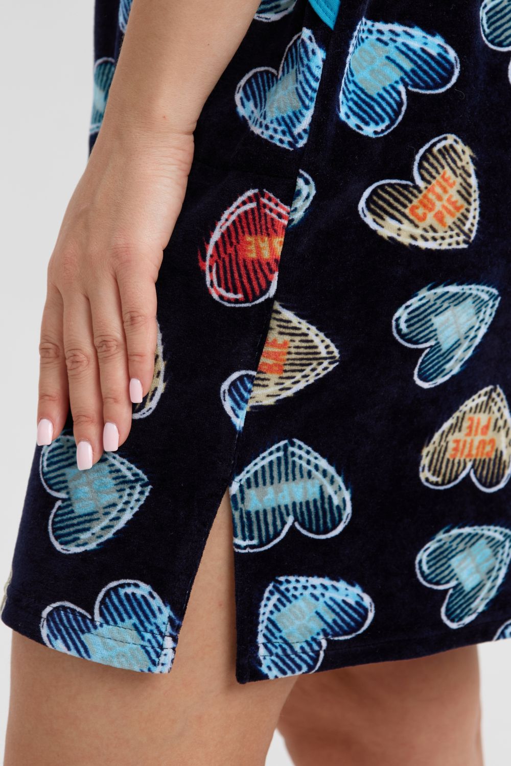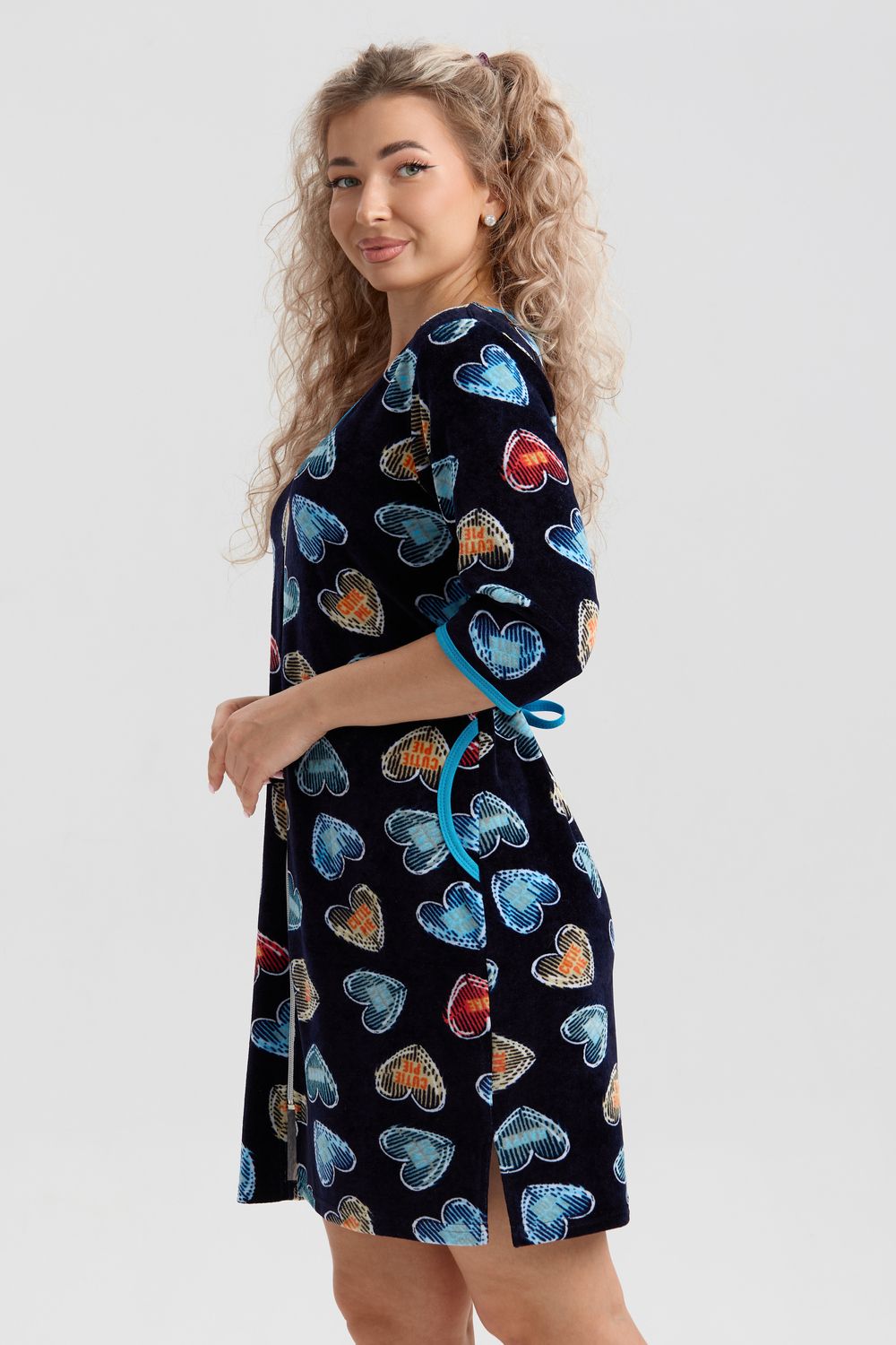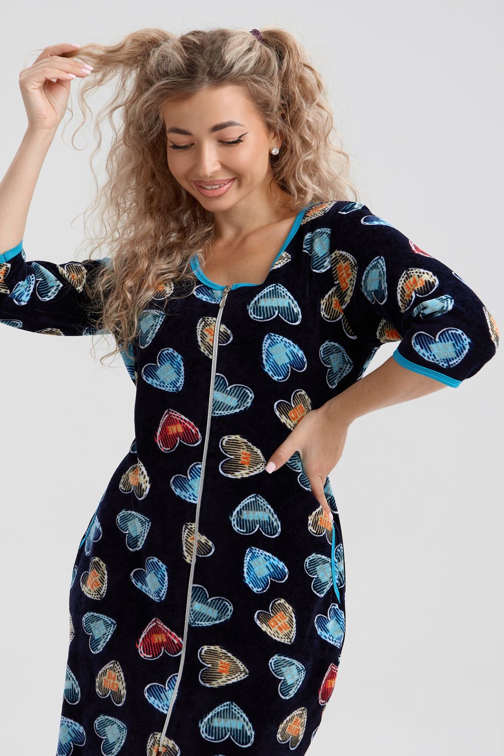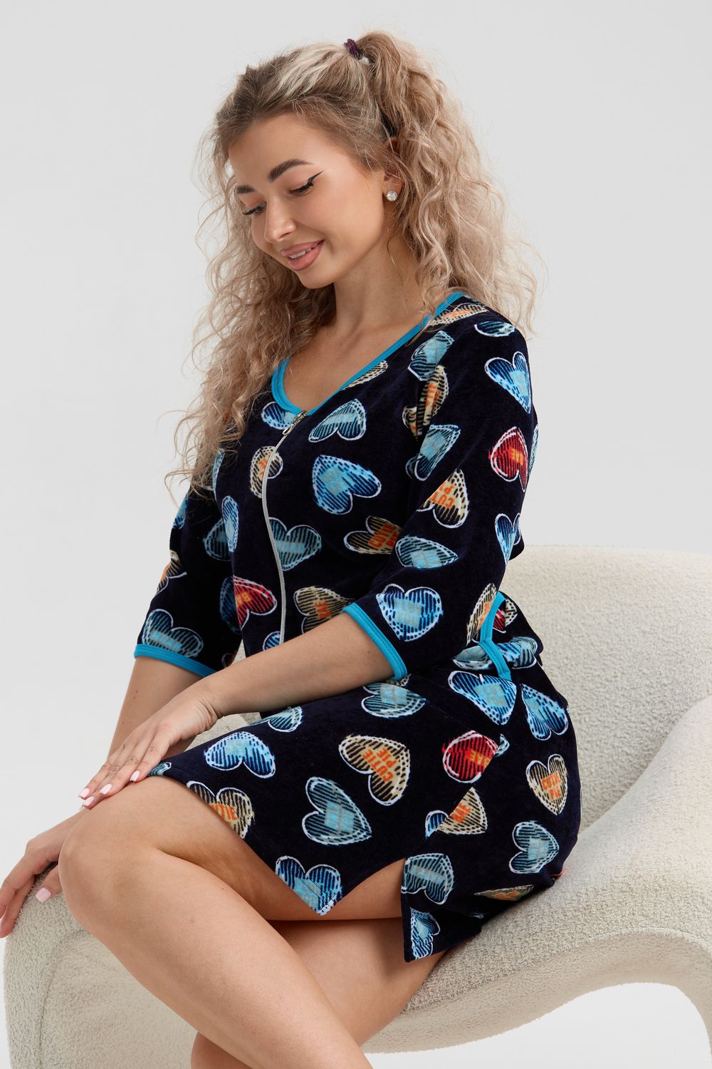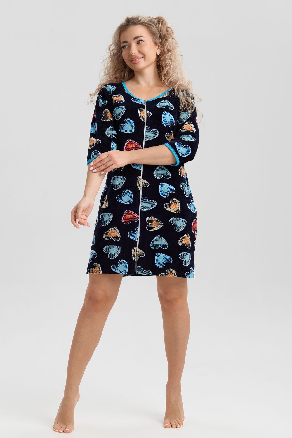 Женский укороченный халатик выполнен из качественного велюра и модного дизайна. Велюр практичен, прост в уходе и использовании. Обладает высокой устойчивостью к механическим повреждениям. Ему свойственны характеристики натуральных тканей, что делает его использование комфортным. Материал гигроскопичен, хорошо пропускает воздух и сохраняет тепло. Кроме этого он не меняет форму и не вызывает аллергических реакций. Отличается мягкостью и приятной на ощупь текстурой. Материал прекрасно дышит. Носить такой халатик Вы сможете в любое время года. Надёжный замок на молнии сохраняет свои свойства в течении всего времени использования. Женственный вырез, поясок и 2 боковых кармана добавляют образу шарм и делают изделие удобным и практичным. Изысканный, в меру длинный халат подойдёт для любого типа фигуры. А так же будет идеальным подарком на любой праздник: Новый год, день рождения, 8 марта, 14 февраля. Рекомендуется стирать в деликатном режиме 30 °С. Это поможет сохранить качество изделия на долгое время.